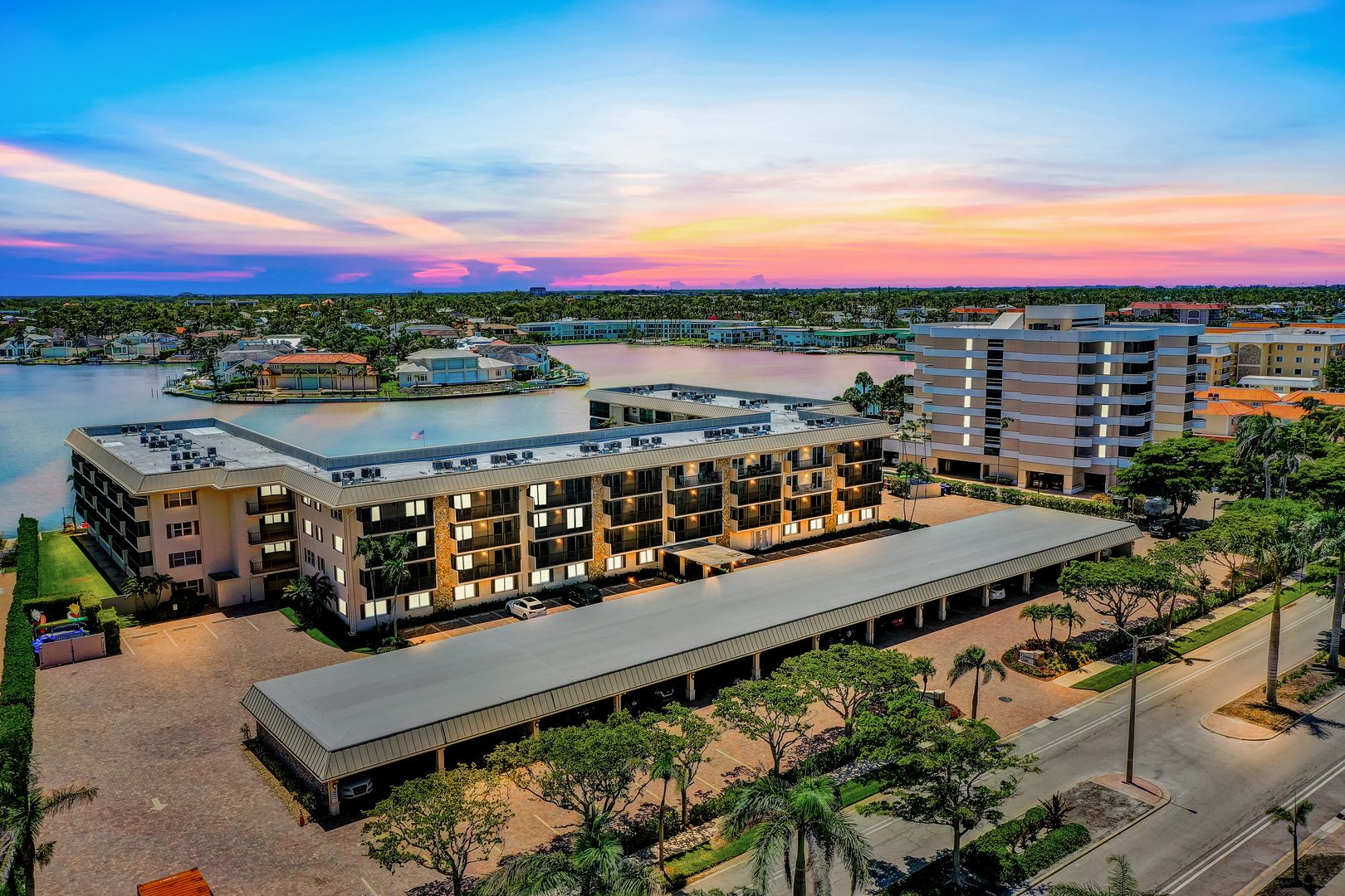 RARE PENTHOUSE with breathtaking Bay views! Experience the best of Naples waterfront living in this beautifully updated 4th-floor residence at Coquina Club, perfectly positioned along Doctor’s Bay to capture stunning sunsets and tranquil water views from morning to night. This rarely available penthouse has been thoughtfully updated with modern, neutral finishes and features an expanded floor plan with an enclosed lanai and hurricane-impact sliders, allowing you to enjoy the gorgeous vistas year-round in air-conditioned comfort. Peace of mind comes with a long list of recent upgrades and community enhancements. Post-Hurricane Ian improvements include brand-new electrical service and elevator systems, with all electrical panels moved to the second floor for added protection. Florida Power & Light installed new equipment in the vault located in the building and raised it higher for increased safety. A brand-new roof was completed in 2025, ensuring years of worry-free living ahead. The Coquina Club community has also completed new railings along all walkways and is currently finalizing additional updates, including a beautifully redesigned club room, updated restrooms, and an enhanced entryway project that will relocate mailboxes to a new mail room—creating a more attractive and welcoming building entrance. Inside the residence, you’ll find a comfortable open layout that blends coastal charm with modern sophistication. The kitchen and living areas flow seamlessly toward the enclosed lanai, where walls of glass bring the bay views front and center. Neutral tones and contemporary finishes make it easy to personalize the space to your own taste, while the thoughtful design ensures that every room takes advantage of the natural light and serene setting. Coquina Club offers an ideal blend of amenities and location. Residents enjoy a bayside saltwater pool and grilling area, social room, sauna, showers, bike storage, and a vibrant sense of community. Boaters and water enthusiasts will love the 22 boat slips and kayak racks available for lease. Additional conveniences include a private storage unit and an assigned covered parking space. Perfectly situated across the street from the Vedado Beach access point, you’re just seconds from Venetian Village’s boutique shops and waterfront dining, and only three miles from the heart of downtown Naples, where world-class restaurants, galleries, and nightlife await. Whether you’re seeking a full-time residence or a seasonal retreat, this exceptional penthouse captures the very best of coastal living—offering unmatched location, beautiful design, and the confidence of extensive updates throughout the community.