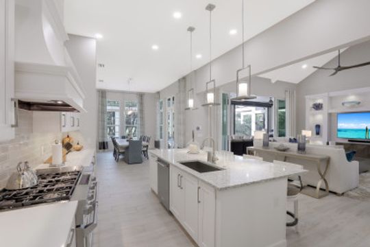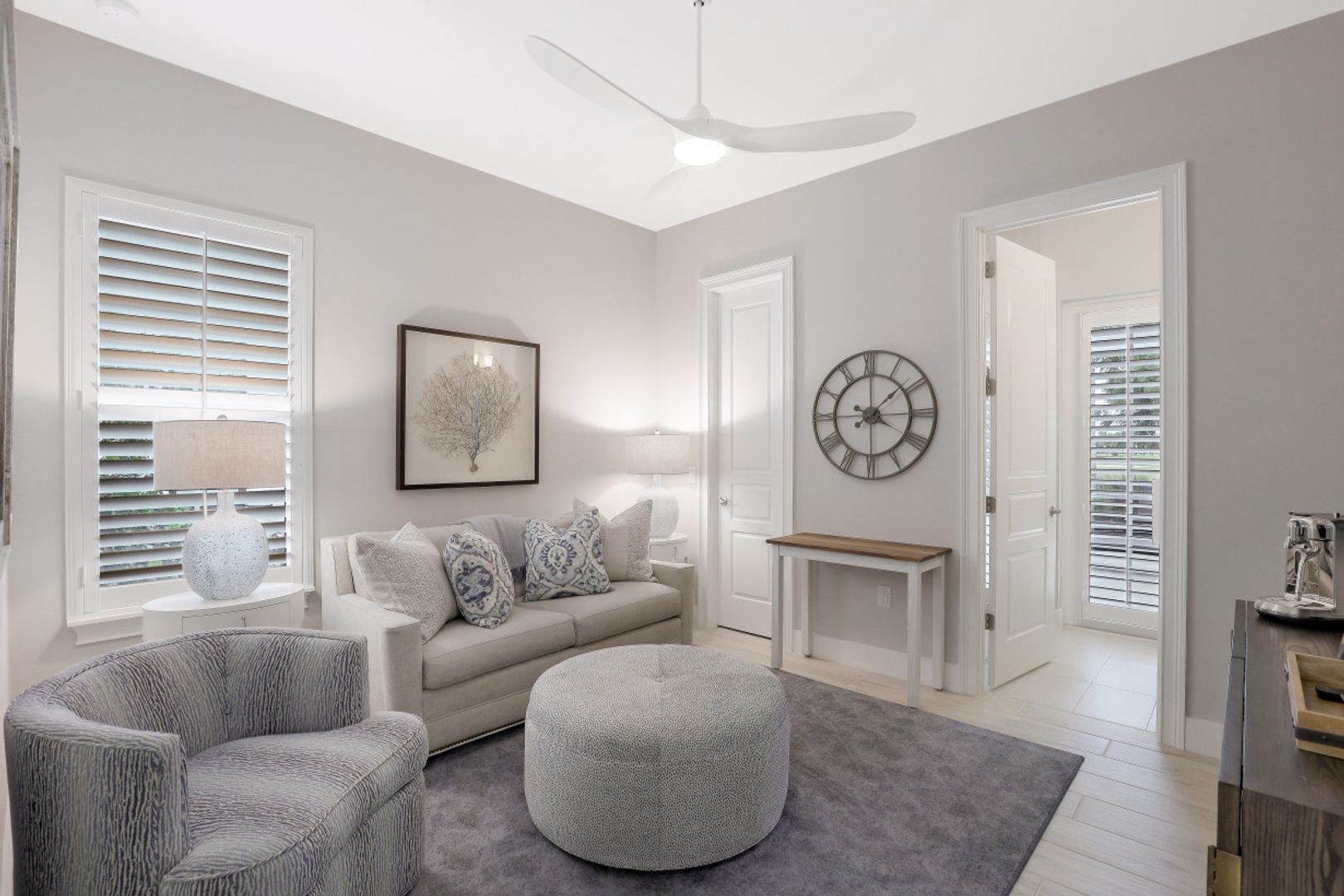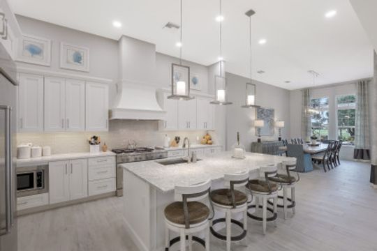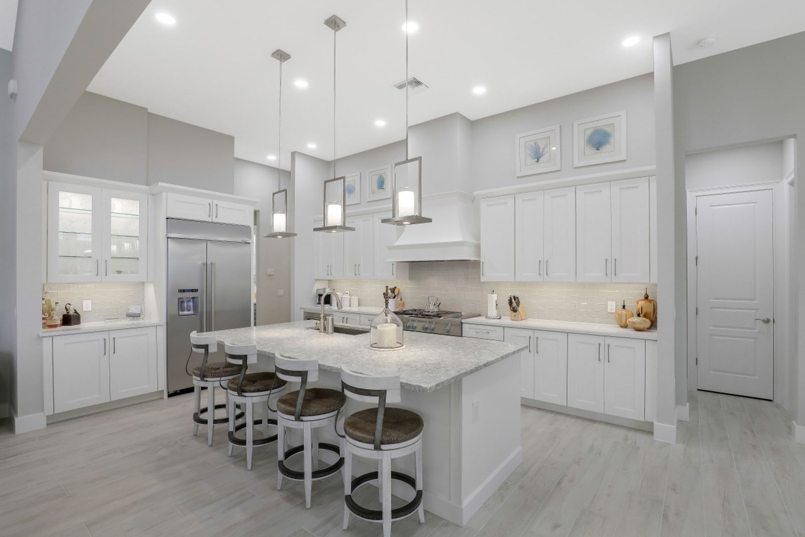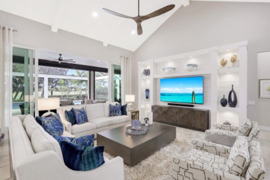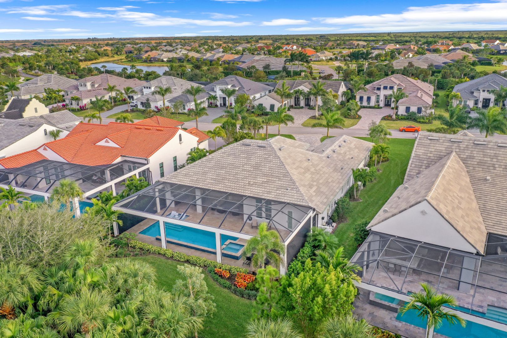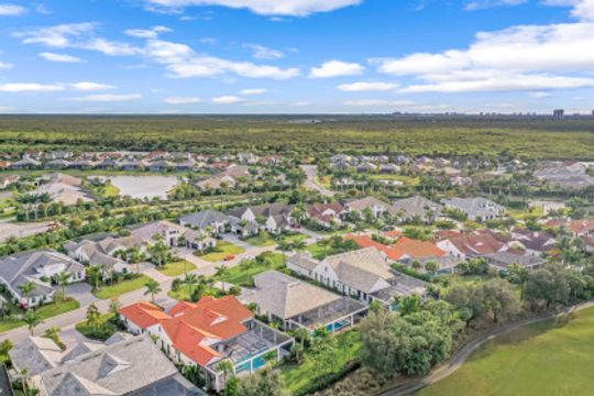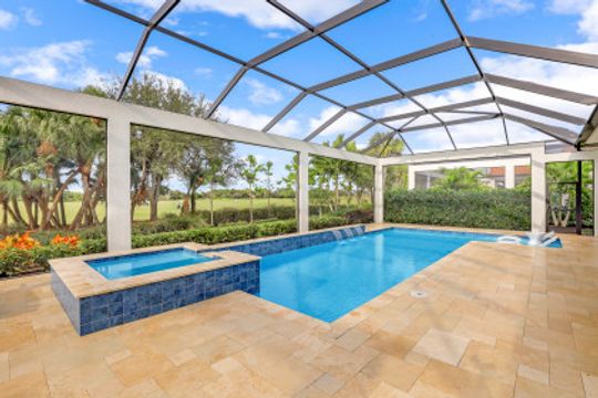 Offering privacy and a peaceful golf course setting, this 4-bedroom plus office, 4.5-bath home is truly a home of elegance. The popular Ashton Woods Tavernelle floor plan features open-concept living, including vaulted ceiling with beams in the great room, wood-look tile flooring, French doors and impact glass. The well-equipped kitchen features Cambria® quartz countertops, a center island, shaker-style cabinetry and professional-grade KitchenAid stainless steel appliances with gas for cooking. Numerous upgrades include a whole-home generator, air-conditioned 3-car garage, all LED lighting on dimmers, plantation shutters and custom built-ins in the great room, master closet and office. Master suite offers golf course views and bath with dual sinks, stand-alone soaking tub and shower with frameless glass door. The home features an expansive outdoor travertine deck with custom pool and spa, colonnade screen enclosure and massive covered space. Located in the award-winning community of Fiddler's Creek with access to recreational and social activities, including tennis, fitness, resort-style pools, spa services, fine dining, a poolside bar and grill and multiple clubs. Sold furnished.
