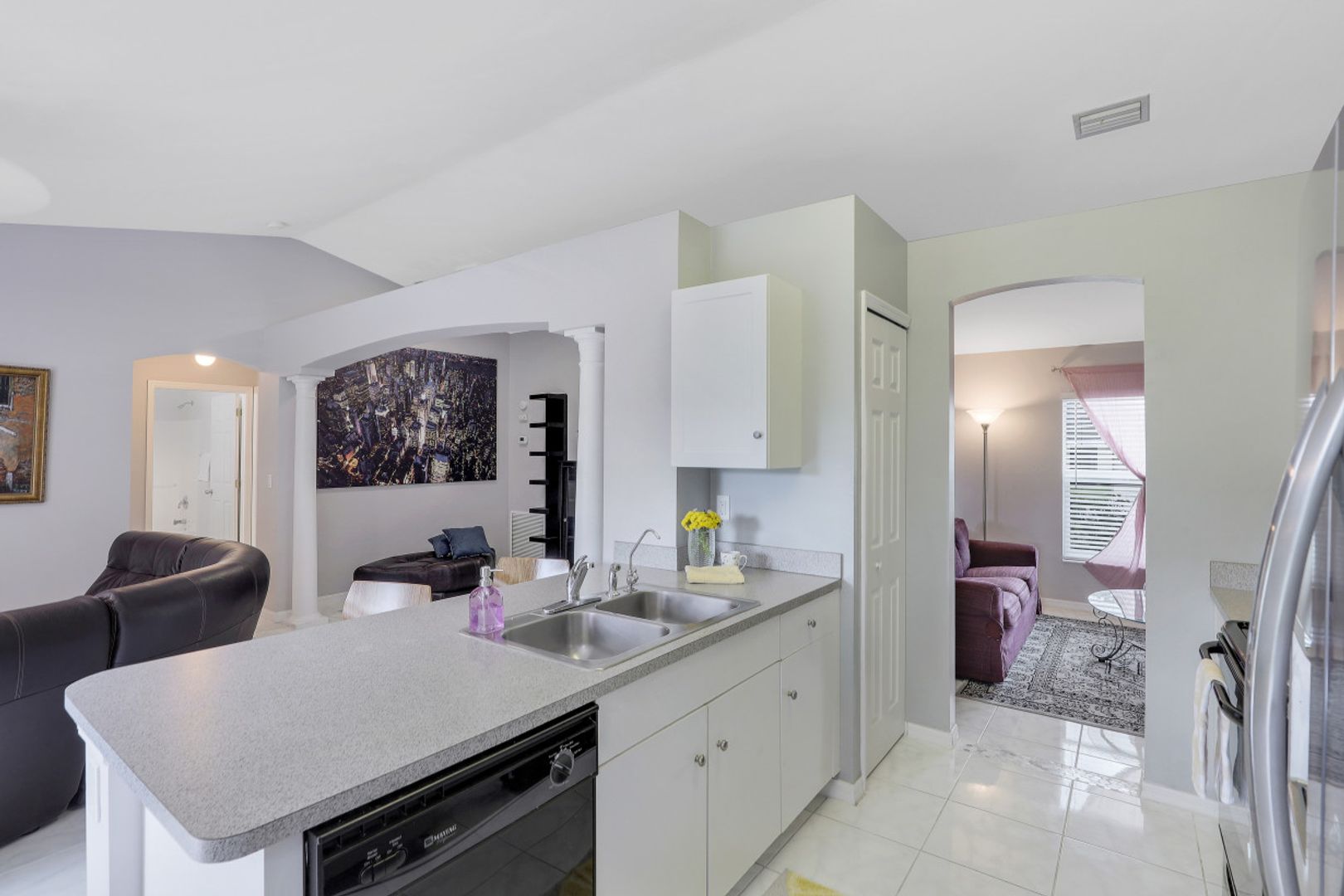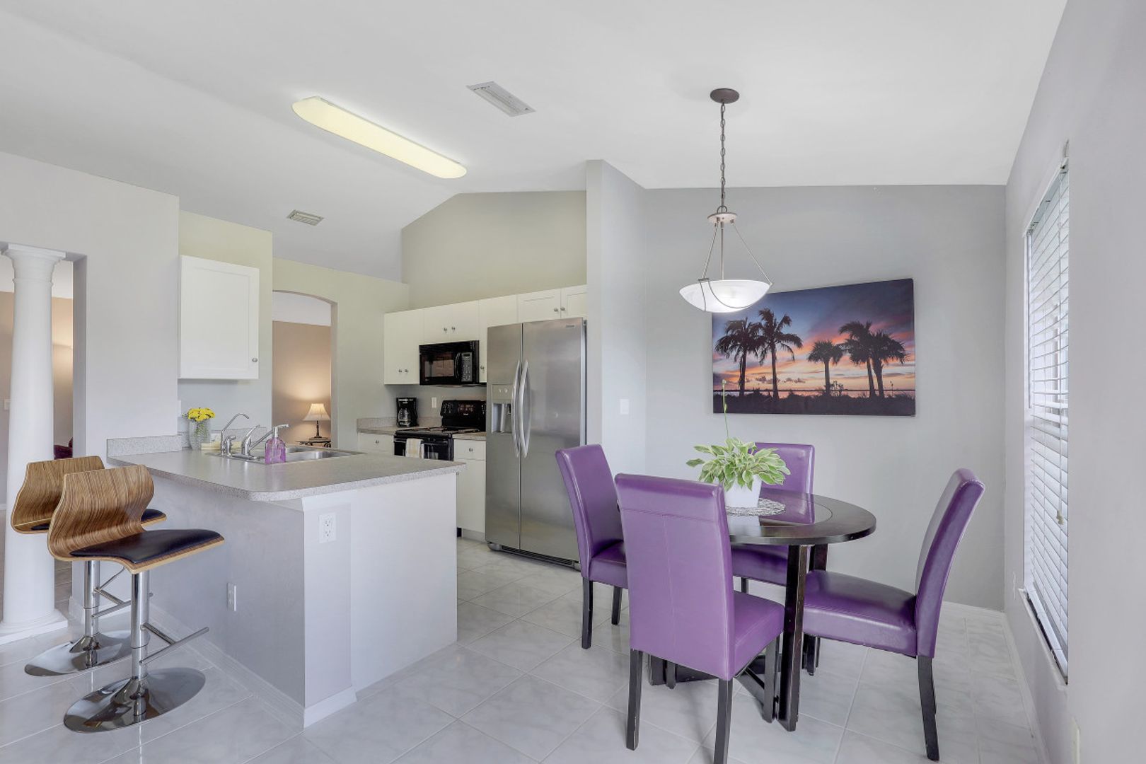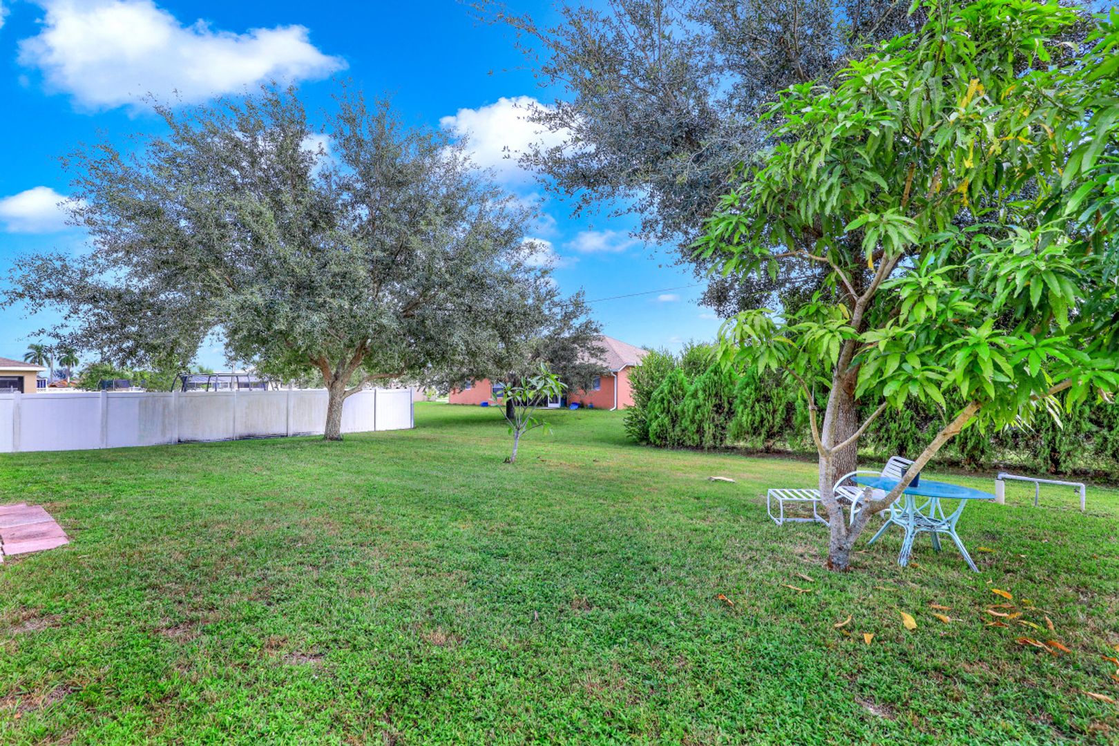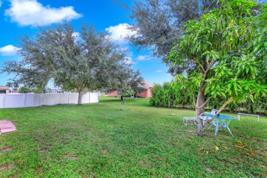 Excellent Opportunity in Southwest Cape Coral! Welcome to Paradise and this Beautiful, Furnished 3 Bedroom home with Southern Rear Exposure. Built in 2004, this home Features a Split Bedroom Floor Plan, 1474 sq ft of Living Area, Vaulted Ceiling, New Roof 2021, New AC 2021, New Kitchen Reverse Osmosis System 2021, New Laminate Flooring in Bedrooms 2020, Tile in Living and Wet areas, New Interior and Exterior Paint 2020, New Fans & Light Fixtures 2020, New Stainless Steel Refrigerator 2020, New Living Room Window 2020, New Mother Board for Garage Door Opener 2021, and a 2018 Water Heater. The Kitchen has a Breakfast Bar, Breakfast Nook, and Pantry. The Master Suite includes a Large Walk-in closet, Garden Tub, and a Separate Walk-in shower. The Spacious Backyard has plenty of room for a pool. All Bedrooms and the Family Room are equipped with Ceiling Fans. This Move-in Ready Home is being sold Furnished, Perfect for a Vacation Home or Seasonal Rental. Prime location near shopping, dining, schools, and just a short drive to Fort Myers, Beaches, RSW International Airport, and Punta Gorda Airport. NOT IN A FLOOD ZONE.