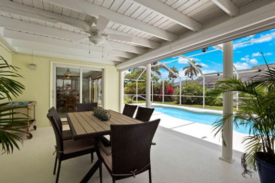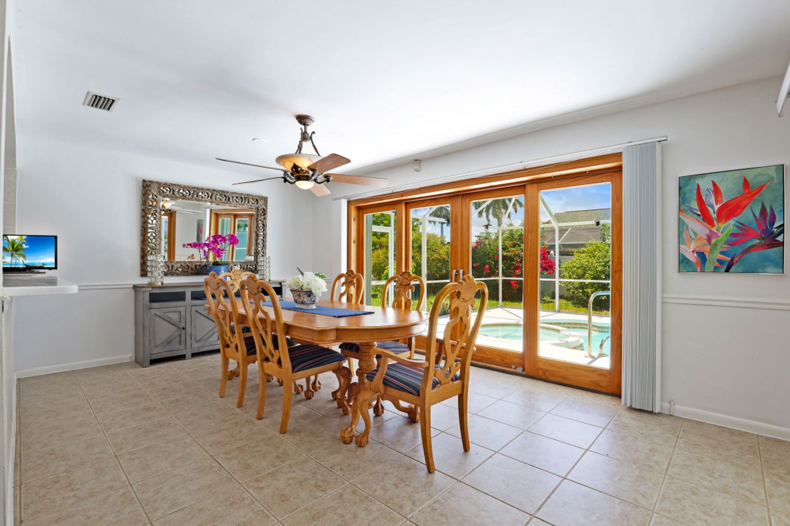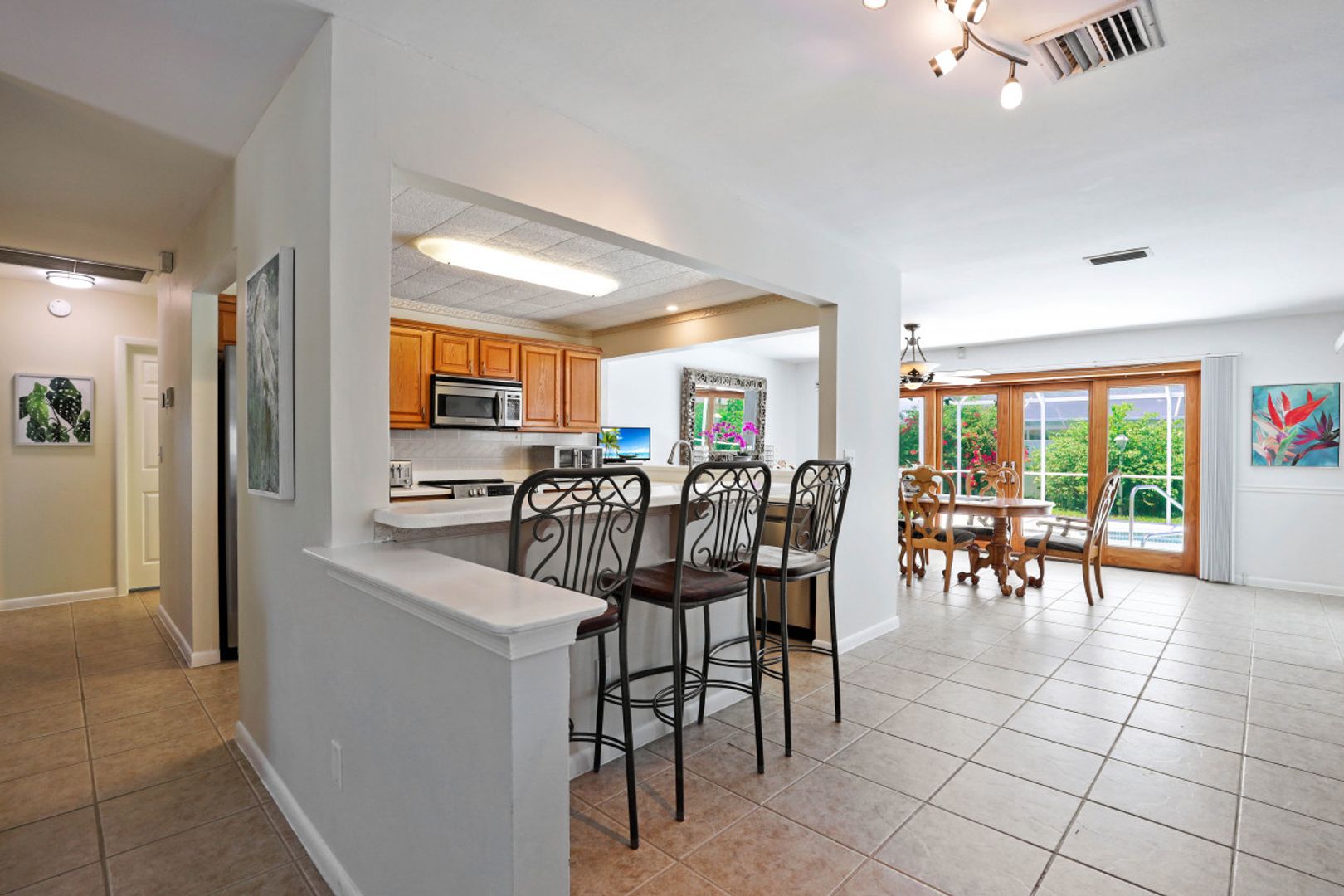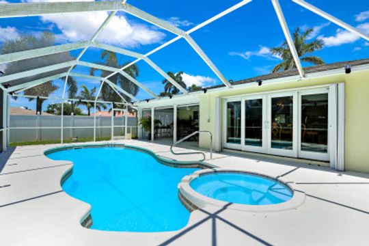 Looking for no hassle-ready to go home? Put this on the list! Perfect for full time, part time or instant income! Literally, just bring your toothbrush! WESTERN EXP POOL HOME-TURNKEY w/brand new furniture package! Nestled in the highly sought after neighborhood of Palaco Grande on an oversized corner lot. Features 3 BR, 2 BA, 2 car garage w/over 1,700 Sq Ft of LA. Flat roof replaced-2022, AC-2021, hot water heater-2017, electric panel-2016, plumbing repipe-2015. The kitchen includes plenty of cabinet and counter space, wood cabinets, newer SS appliances & two breakfast bars. The owner's suite has a walk-in closet w/subway tiled shower & new seamless shower door. Enjoy the large outdoor living area that caters to the Florida lifestyle w/heated pool & spa & private covered patio. The outdoor area is completely fenced w/6 ft white privacy fence to keep your furry friends safe! Palaco Grande is a mature beautifully maintained neighborhood located close to Downtown Cape Coral, Jaycee Park, the Yacht Club, Shopping, Dining, RSW & Punta Gorda Airports! You deserve to enjoy everything that SW FL has to offer-white sandy beaches & world class fishing at your fingertips! Agents see comments.