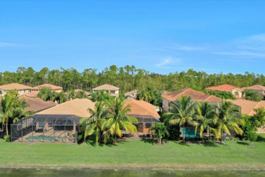 A rare opportunity to purchase an impeccable, barely lived-in home that has been tastefully appointed with luxury upgrades & finishes so you can move right in & start living the Naples lifestyle you have been dreaming of. Enter the front door and be welcomed by a sparkling southern lake view. The outdoor space is perfect for entertaining or relaxing with an expansive screened lanai, ample covered seating & summer kitchen. The Storm Smart electric hurricane screens on lanai provide protection & privacy. This Chandon floor plan is very open featuring a custom kitchen with Quartzite countertops, upgraded appliances, glass backsplash, wainscoting & lighting. Stunning dining room features a dry bar with glass shelves lighted by multicolor lighting by Vippy & framed mirrors. Den converted to 4th bedroom with built-in closets & desk. Crown molding, all closet built-ins by Naples Closet, new carpet, upgraded paint, frameless shower doors, curtains, designer lighting & fans. Riverstone offers a social, vacation-inspired lifestyle with with a full-time activities' director. Also includes fitness, social hall, resort & lap pools, spa, 5 tennis courts, basketball & pickleball court & tot lot.