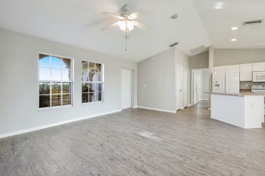 NEW LISTING – LOWEST PRICED 3-2-2 HOME IN ZIP CODE 33909 – ACT NOW! Perfect for investment, starter home, or 2nd home. This 3 Bedroom, 2 Bath, 2 Car Garage home with Southern Exposure is Move-in Ready. Features include a NEW ROOF, NEW AC, NEW WATER HEATER, Fresh Interior Paint, an Open Floor Plan, Vinyl Plank Flooring, Split Bedrooms, Walk-in Closets in All Bedrooms, Kitchen Island, Pantry, Laundry Room, Screened Lanai, Hurricane Shutters, and a Big Backyard with Room for a Pool. NOT IN A FLOOD ZONE. The only damage from Ian was some lanai screens and they have been replaced. Convenient Northeast Cape Coral location with easy access to Fort Myers, Southwest Florida International Airport, Punta Gorda Airport, and all of Cape Coral. Close to dining, shopping, entertainment, and schools. PRICED TO SELL - make an offer today!
