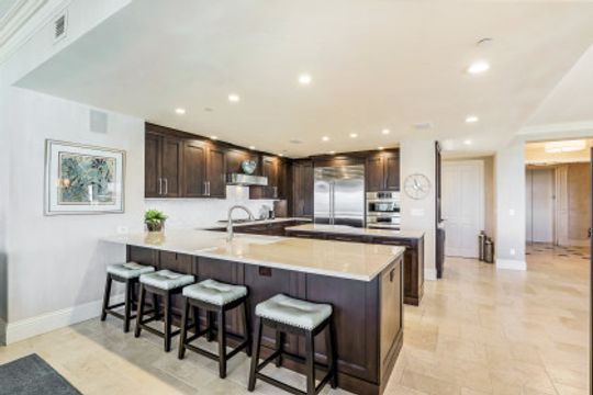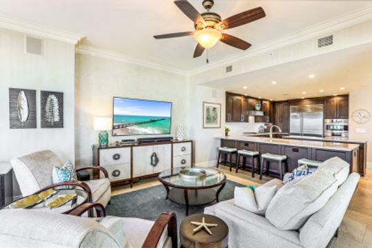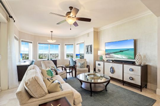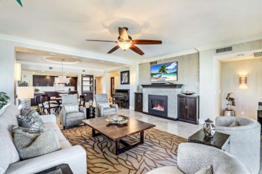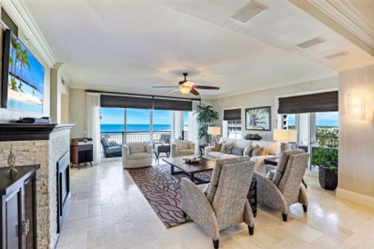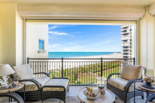 Stunning state-of-the art condominium right on the beach where luxurious comfort and coastal sophistication blend in a harmonious way. This gorgeous residence at the exclusive Madeira, the newest building on Marco Island, features superb architectural custom details and impeccable craftsmanship throughout. The exquisitely designed open floor plan flows smoothly integrating the spacious family, dining and living room areas showcasing a warm fireplace and gourmet kitchen. Rich cabinetry with top-of-the-line appliances and many traits to enhance your culinary experience. Enjoy breathtaking views of the beach and the captivating vistas of the island. En-suite bedrooms for maximum functionality and three beautifully staged balconies to entertain and/or relax while watching either sunrises or sunsets. Private elevator and high impact windows. Exquisitely appointed and professionally decorated. Offered fully furnished, turnkey, ready to move in. Enjoy the top-notch amenities available daily in this private gated community including theater, pool, social and exercise rooms, tennis, pickleball and more. Privileged location and walking distance to the phenomenal JW Marriott. This is truly paradise living at its finest.