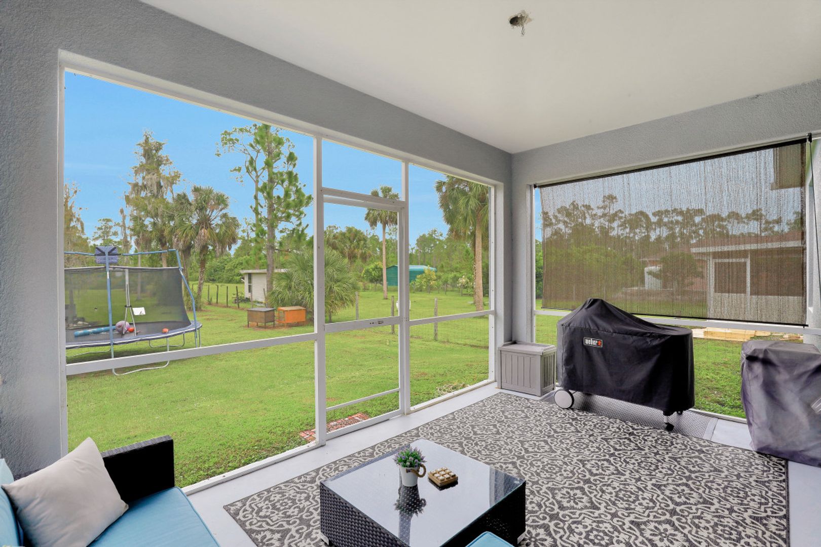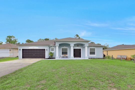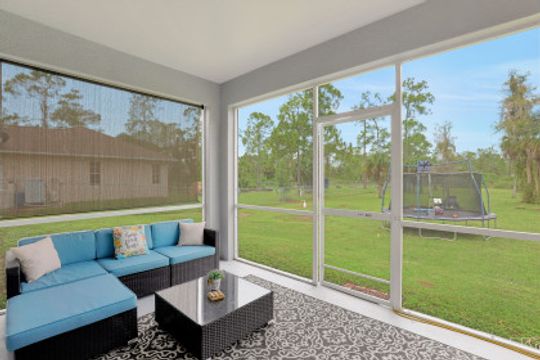 With NO HOA fees, rules, or restrictions- you’ll love this charming, 2040 sqft home in Golden Gate Estates! This 3 bedroom plus den, 2 bathroom home features a 2 car attached garage, open floor plan, NEW roof, a 50 amp RV hookup, NEWER water system (2017) and fresh interior and exterior paint! The spacious living area boasts direct lanai access, along with beautiful laminate flooring and is open to the eat-in kitchen featuring white cabinets, stainless steel appliances and a breakfast bar. The light and airy master bedroom sits away from the other bedrooms and provides a private ensuite complete with a walk-in shower and soaking tub. Two more bedrooms and another full bath on the opposite side of the house complete this gorgeous home. The screened in lanai is perfect for hosting or relaxing looking out at the beautiful land the property sits on. This cleared, 1.14 acre lot provides endless opportunities!
