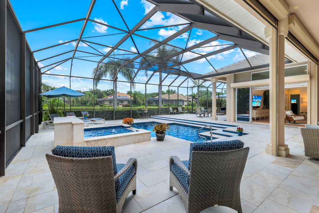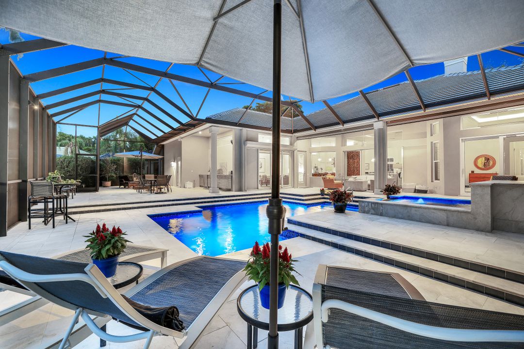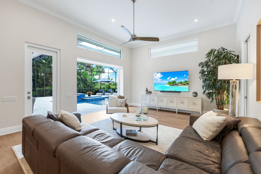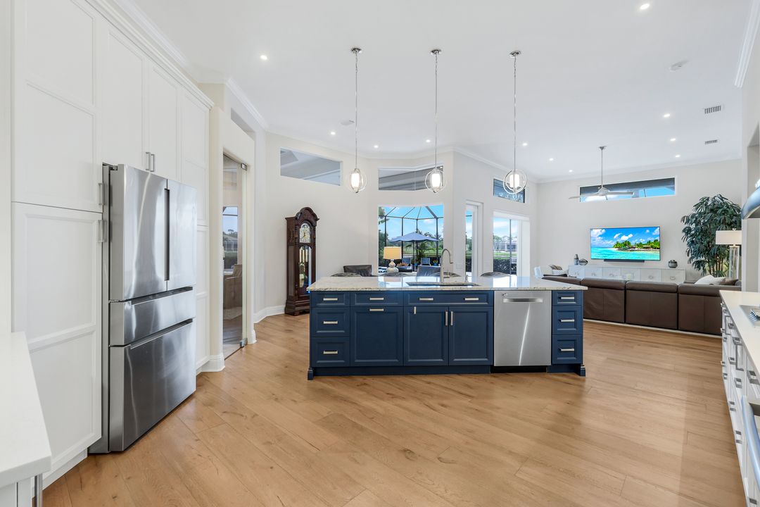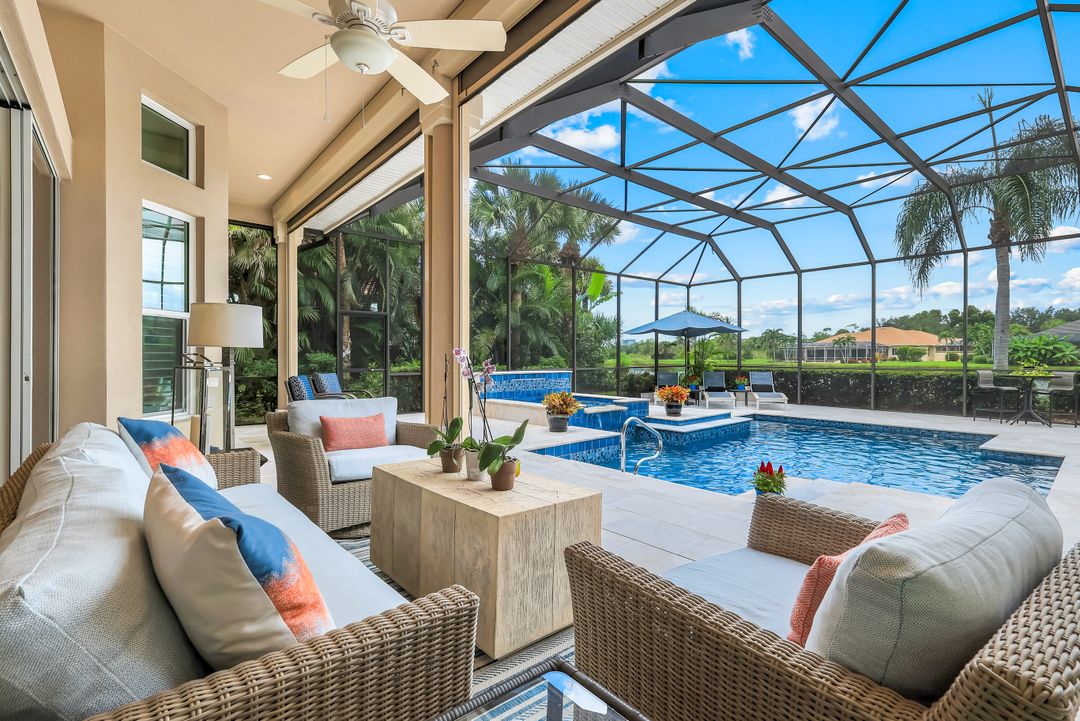 Experience panoramic lake and preserve views with dramatic sunset backdrops from this Arthur Rutenberg custom-designed residence featuring the renowned St. Augustine II floor plan. Positioned on a west-facing homesite within Pelican Landing, offering a sunlit lanai that perfectly frames Florida’s natural beauty. Meticulously renovated interiors include a fully reimagined kitchen, modernized baths and wide-plank hardwood flooring throughout. Directed by Vogue Interior Design, the residence blends contemporary finishes with an elevated Florida lifestyle. A rare three-car garage further enhances the home’s appeal. The chef’s kitchen has been fully reconfigured with custom cabinetry, premium appliances and two separate wine coolers—one with capacity for 40 bottles, and the other integrated into a beverage center with café-style storage and wine refrigerator. Living and family rooms provide unobstructed views of the lake and preserve, creating a seamless connection between indoor and outdoor spaces. Resort-style outdoor living was thoughtfully updated in 2025, offering a refinished pool, full outdoor kitchen, covered lounge space and expansive deck. Whether hosting a small gathering or a large celebration, this versatile setting accommodates every occasion against a backdrop of water and sunset views. Additional enhancements include impact-resistant windows and roll-down shutters for sliding doors. A full list of features and updates is available upon request. Pelican Landing residents enjoy exclusive amenities including private beach park access, tennis, fitness, pickleball and a 34-acre island beach park accessible by boat shuttle.