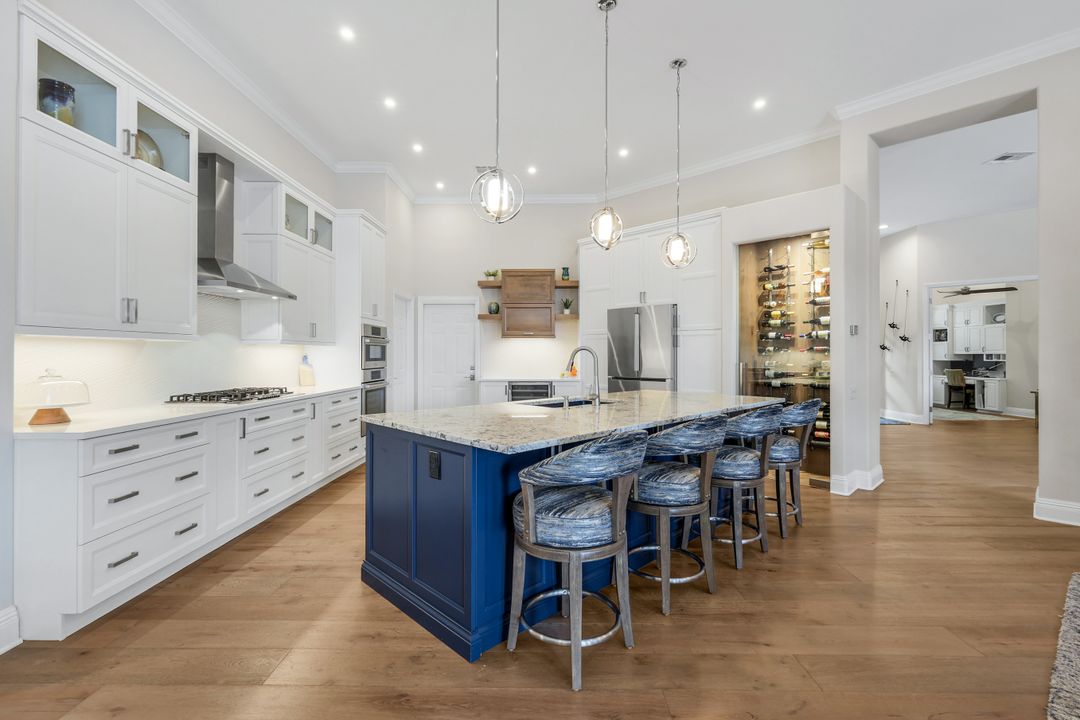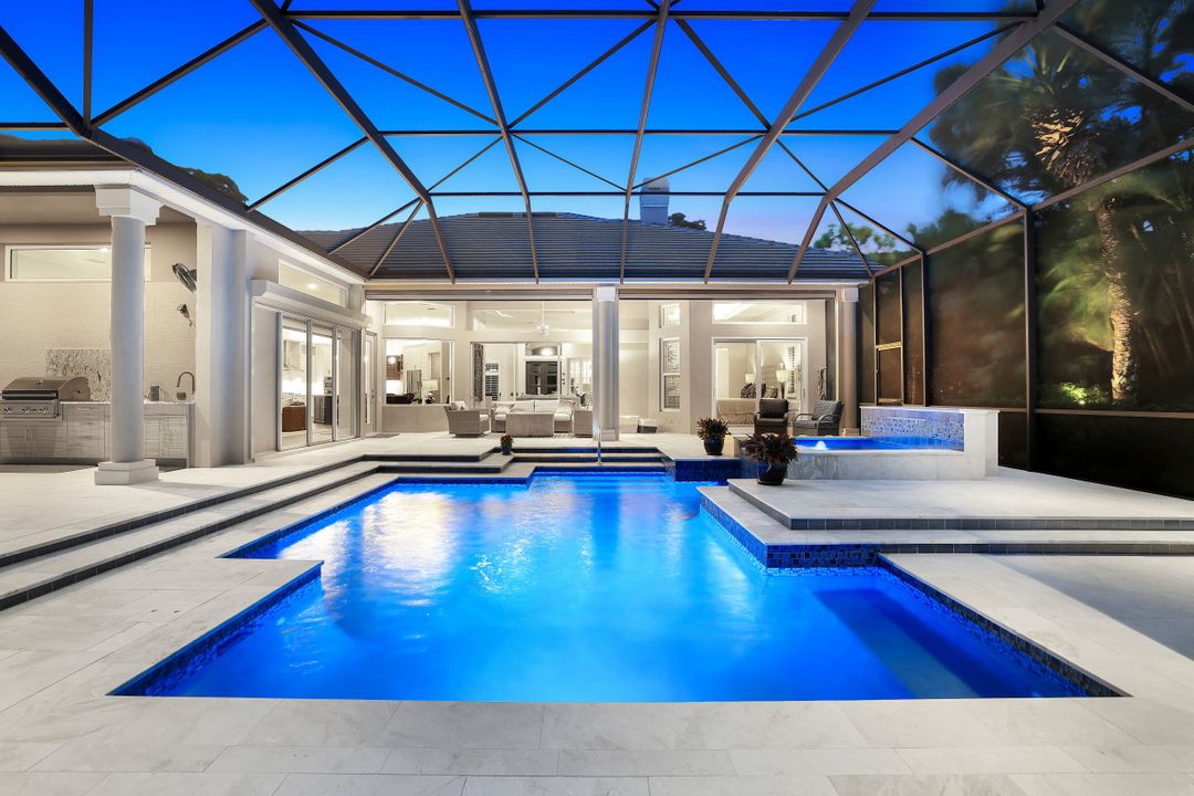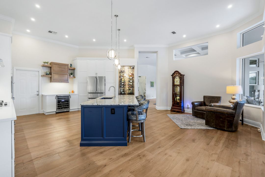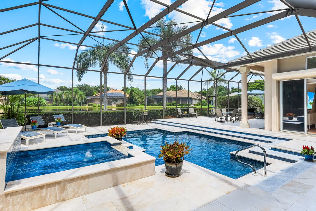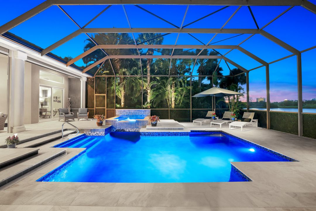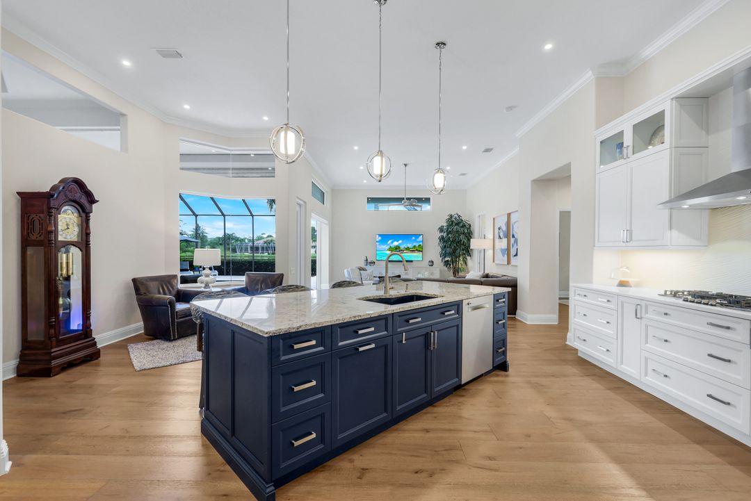 Experience panoramic lake and preserve views with dramatic sunset backdrops from this Arthur Rutenberg custom-designed residence featuring the renowned St. Augustine II floor plan. Positioned on a west-facing homesite within Pelican Landing, offering a sunlit lanai that perfectly frames Florida’s natural beauty. Meticulously renovated interiors include a fully reimagined kitchen, modernized baths and wide-plank hardwood flooring throughout. Directed by Vogue Interior Design, the residence blends contemporary finishes with an elevated Florida lifestyle. A rare three-car garage further enhances the home’s appeal. The chef’s kitchen has been fully reconfigured with custom cabinetry, premium appliances and two separate wine coolers—one with capacity for 40 bottles, and the other integrated into a beverage center with café-style storage and wine refrigerator. Living and family rooms provide unobstructed views of the lake and preserve, creating a seamless connection between indoor and outdoor spaces. Resort-style outdoor living was thoughtfully updated in 2025, offering a refinished pool, full outdoor kitchen, covered lounge space and expansive deck. Whether hosting a small gathering or a large celebration, this versatile setting accommodates every occasion against a backdrop of water and sunset views. Additional enhancements include impact-resistant windows and roll-down shutters for sliding doors. A full list of features and updates is available upon request. Pelican Landing residents enjoy exclusive amenities including private beach park access, tennis, fitness, pickleball and a 34-acre island beach park accessible by boat shuttle.
