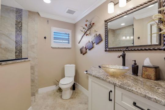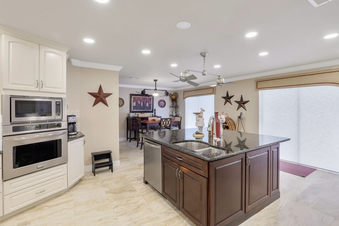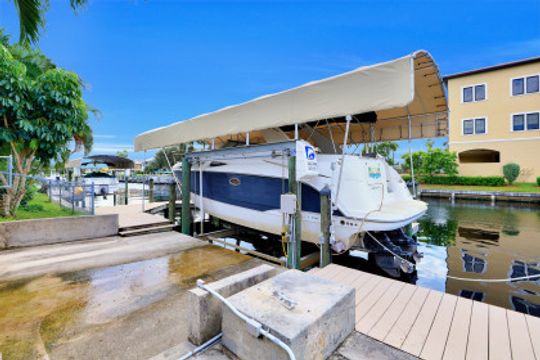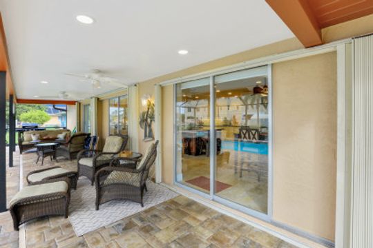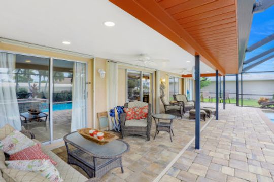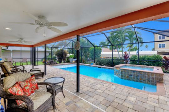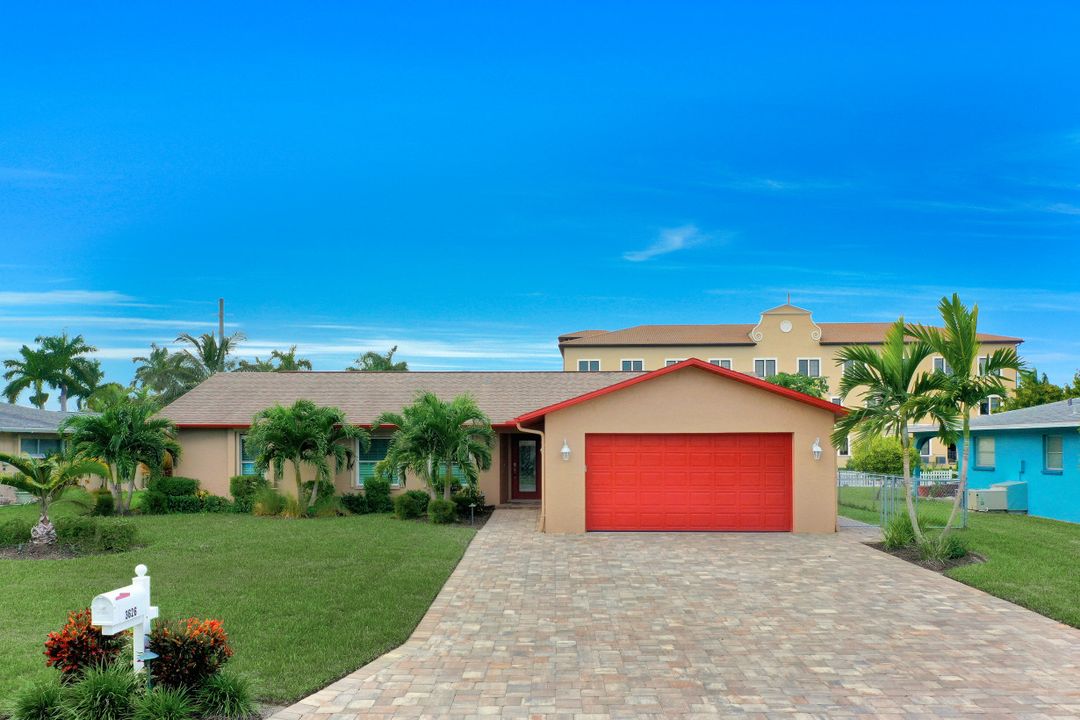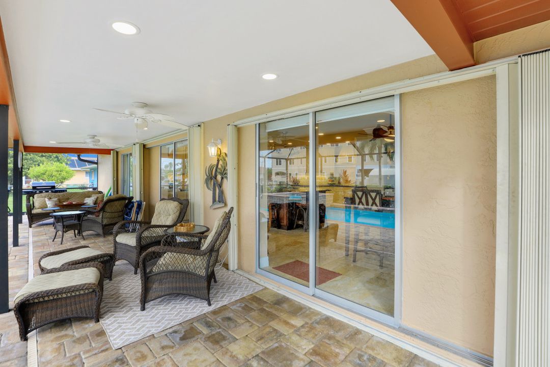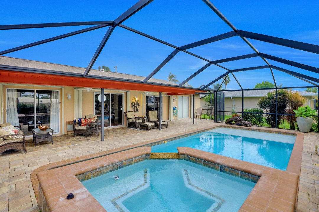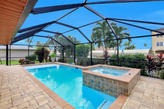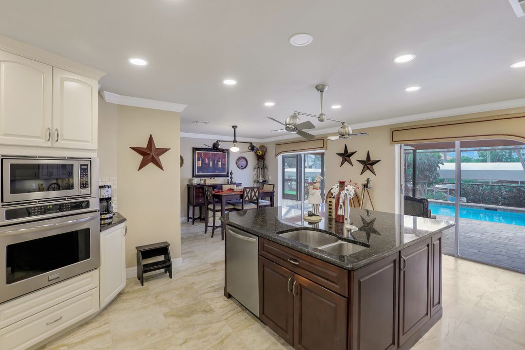 Completely Remodeled inside and out – This Direct Access waterfront pool home has been gutted and is now virtually a new home. 1,858 SF and 3 beds 2 baths centered around the private living room with ceramic wood tile floors and open kitchen overlooking the pool and water. Everything is new, starting with the kitchen featuring travertine floors, stylish cabinetry, granite counters, stainless appliances, and dry bar all complimented by a massive single slab granite island. Waterfront master suite with large walk-in closet and stunning bath with dual vanities and walk-in shower. Generously appointed spare bedrooms with closets, new doors, and new closet doors. Completely remodeled guest bath with updated shower & vanity. The FL lifestyle starts with a completely re-done Heated Pool with sun shelf and Hot Tub! Waterfront oasis with paver patio, lanai, new lighting & fans, and wireless integrated Pentair pool system for swimming, sunbathing, and relaxing in your private pool. Attention Boaters! Walk-around composite dock with 12.5K lift and canopy with direct boating access in 1 turn and a couple minutes out! NEW from the driveway to the dock. FULL UPDATE LIST ATTACHED TO THE MLS.