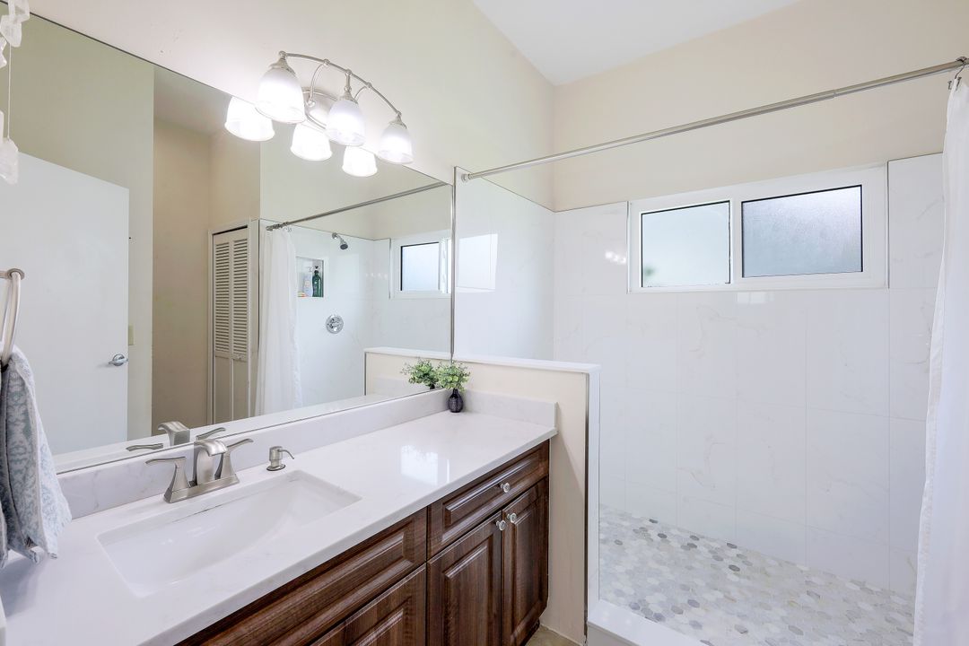 Welcome To Your Captivating Home In Beautiful Queens Park! This 3-bedroom, 2-Bath Pool Home Offers Luxurious & Spacious Living & Entertaining Areas With A Split Floor Plan. Imagine Relaxing In The Open Living Room With Vaulted Ceilings, All Upgraded With Plush Carpet And Plantation Shutters. The Eat-in Kitchen Is Equipped With Stainless Appliances, Impeccable Counters, Custom Cabinets, And Two Pantries – Perfect For Hosting Dinner Parties. Beautiful French Doors Leading To The Master Bedroom With Its Large Walk-In Closet, And Its Remodeled Bathroom. You Can Enjoy Peaceful Mornings On The Patio Overlooking The Lake View Beyond. And Don’t Forget About Those Modern Conveniences: A Brand New Water Heater Installed in May 2020; A/C That Is Only Two Years Old; Impact Windows Throughout; Storm Shutters Along Three Patio Sliders Including The Front Door; As Well As Wiring For A Whole House Generator. You’ll Be Just Minutes From Shopping, Beaches, Downtown Naples, and Marco Island – Making It Easy To Get Out And Explore All This Area Has To Offer! Come Visit Us Today Before This Dreamy Property Slips Away!