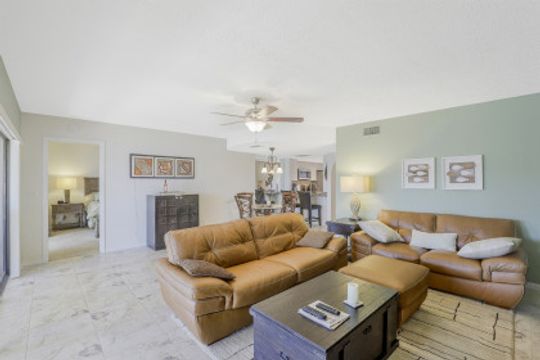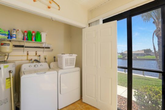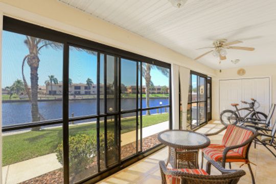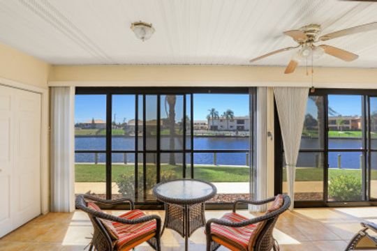 Located on The Rubican Canal this 2 bedroom 2 bath Condo in 55+ community of Royal Vista is just minutes from the Caloosahatchee River. Walk into this split bedroom floorplan unit and experience the sunny disposition. Tile throughout the living space, plantation shutters throughout, kitchen with stainless steel appliances and breakfast bar overlooks the dining/living area. Each bedroom has their own private bath. The owners suite features sliders onto the screened lanai, custom mirrored closet, dual sinks and step in shower in the bath. The enclosed screened lanai extends the length of the unit and features additional storage; providing plenty of room to sit back, relax and enjoy the Florida lifestyle. Royal Vista Condominiums is in a prime Cape Coral location, conveniently located to local restaurants, stores and parks and bridges into Ft Myers.