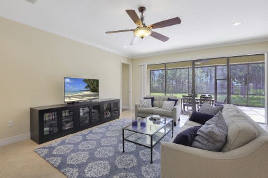 A grand 2-story foyer welcomes you into this desirable Mandalay with short walk to clubhouse and the privacy of a lovely, tranquil preserve view. Experience this dream floor plan with the space need to enjoy time together, yet room to retreat to your own private sanctuary. The open main living area flows perfectly for entertaining. Preferred 1st floor master suite is very spacious, with his & her walk-in closets & expansive spa-like bath. Additional 1st floor bed also makes a great den. Upstairs you will find a fantastic loft, laundry & 3 bedrooms, 2 of which are en-suite (no more fighting over the bathroom). Outside you will love the oversized screened lanai, lush landscaping & fully fenced backyard that has space for kids to play & dogs to run. Additional features include wood flooring in bedrooms, newer refrigerator, microwave & dishwasher, newer paint, crown molding, mudroom with built-in storage & 1-year warranty. Riverstone is located in North Naples, in an "A" rated school district & offers a social, vacation-inspired lifestyle for all ages. Including fitness facilities, social hall, resort & lap pools, spa, 5 Har-Tru tennis courts, basketball & pickleball court, & tot lot.