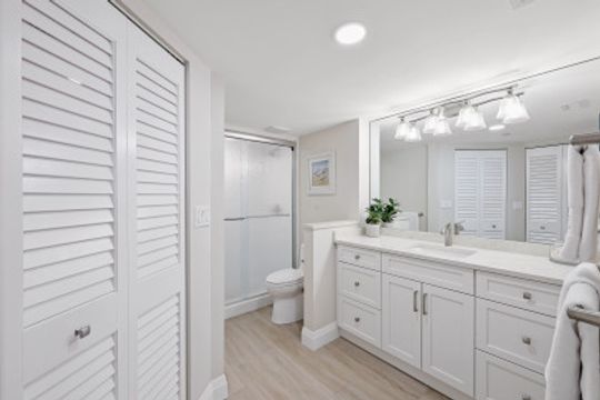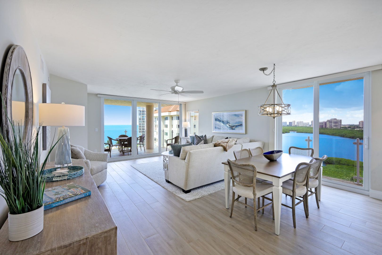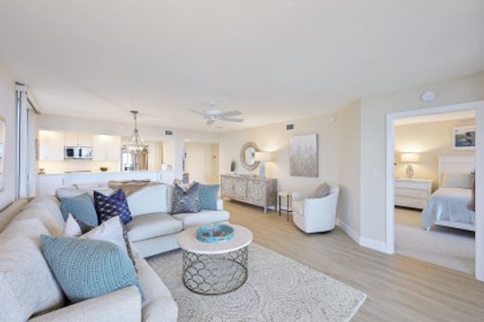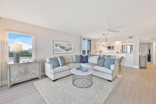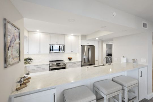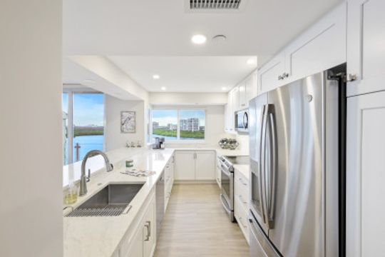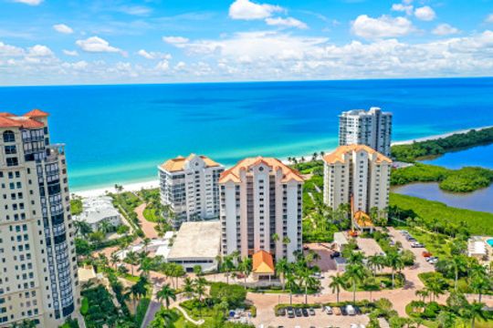 RECORD SF AND CLOSED SALE PRICE FOR THIS LUXURY BEACH CONDO in Club at Naples Cay! Just steps to the sand! RARELY AVAILABLE UPPER FLOOR 04 STACK, offers amazing Gulf, Clam Bay and Venetian Bay views. This 3 BR/2 BA condo was COMPLETELY REMODELED in the summer of 2021 ~ ALL NEW: kitchen, bathrooms, flooring, appliances, interior doors, lighting, ceiling fans, window blinds and plantation shutters, impact resistant sliders and windows, and glass railings on the west lanai. Newer A/C 2019. Nothing to do but move in and enjoy. Enjoy state-of-the-art fitness, large community pool, Har Tru tennis courts and private access to Seagate Beach. Nestled between Park Shore and Pelican Bay, Naples Cay is a private, guard gated, beachfront community that offers a unique level of privacy and tranquility, yet is within walking distance to fine dining, shopping and entertainment of Venetian Village, Waterside Shops, and Artis-Naples.