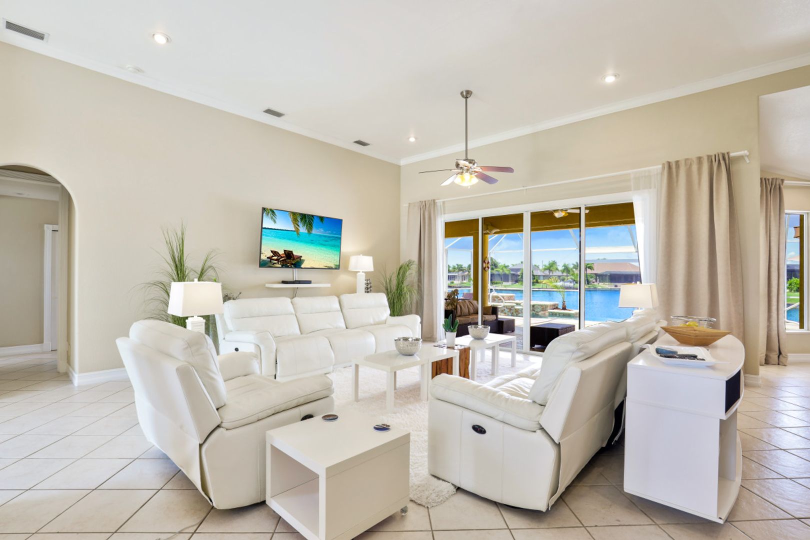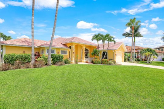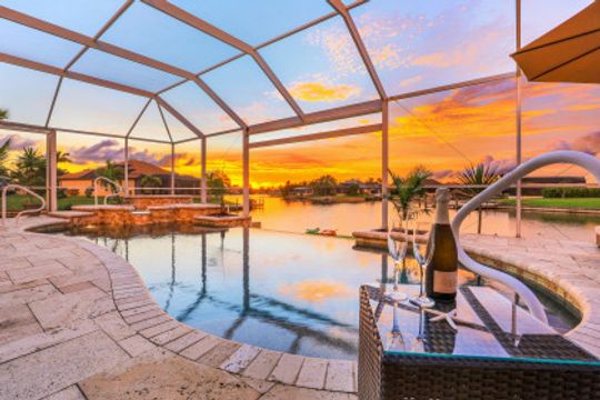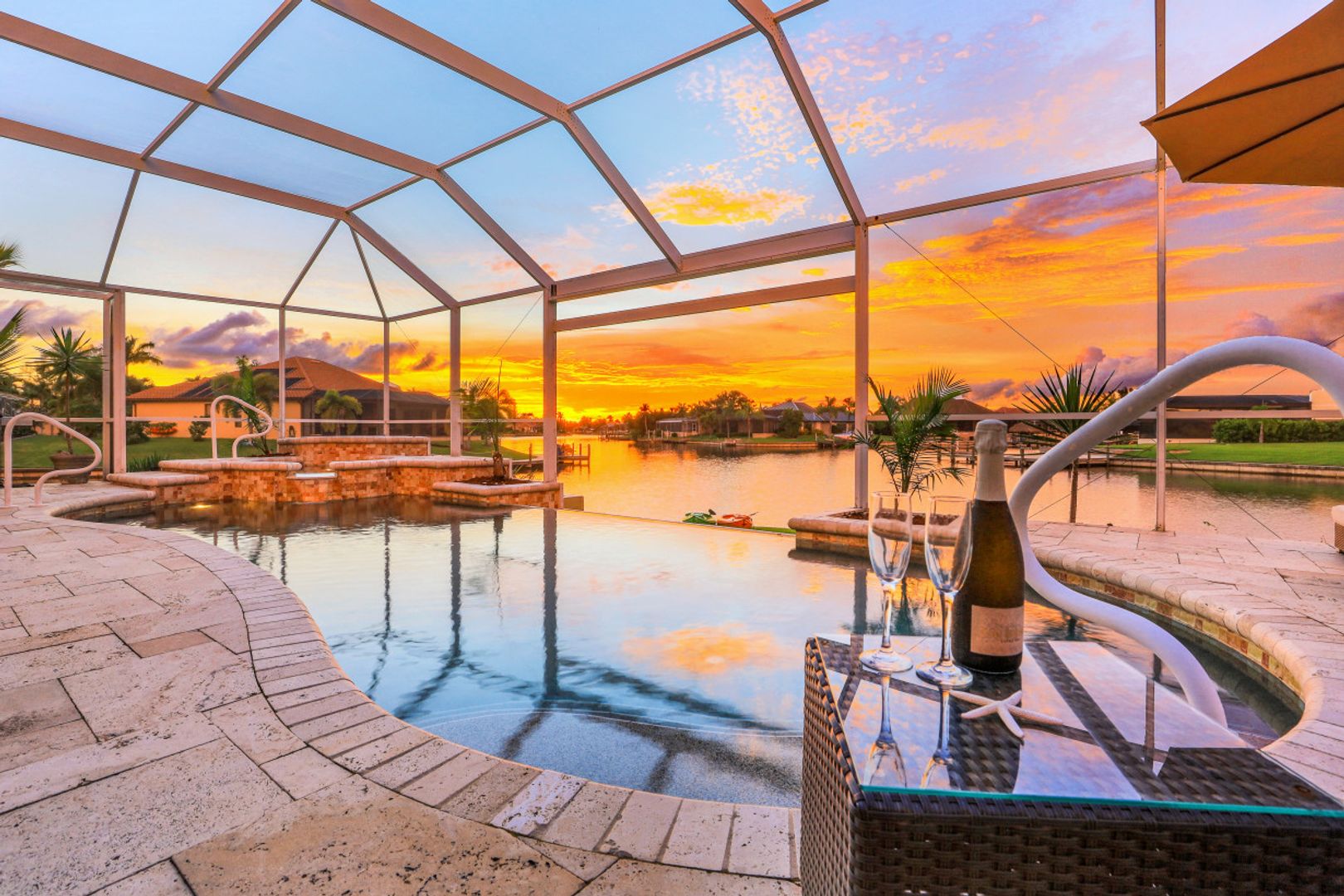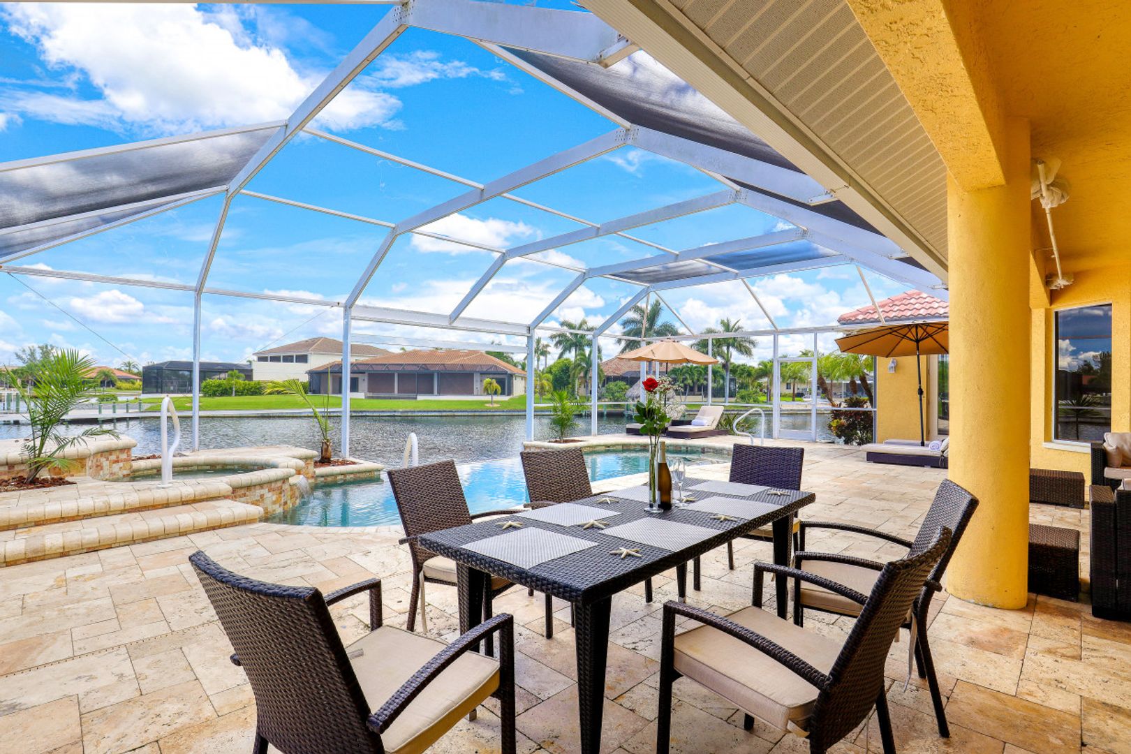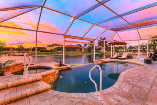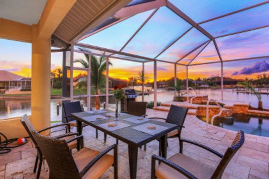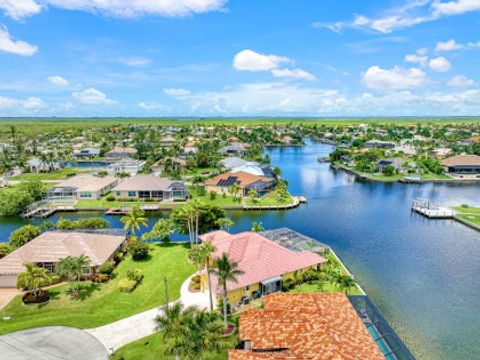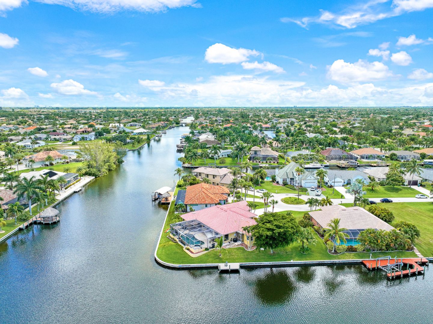 Absolutely stunning location in one of Cape Coral's most preferred neighborhoods with amazing views on three intersecting canals - the wide Rose Canal and Bella Vista Canal to the north and Antilla Canal to the west - hard to top these spectacular views from almost every room of this custom built gulf access home. More than 200' long concrete seawall. Enjoy gorgeous sunsets from your large lanai with newly installed travertine and your pool with infinity edge. Open floorplan, bright and light, gourmet kitchen with granite countertops. This beautiful 4 bedroom ( large master suite), 3 (2+1/2) bath, 2 garage home is offered TURNKEY - tastefully and fully furnished. Tiles throughout the house, covered with carpet in the bedrooms. All assessments (city water, sewer, irrigation) are in and paid in full! There are many more exciting details we should mention, but you have to see this true Florida gem. Call us for a private showing.