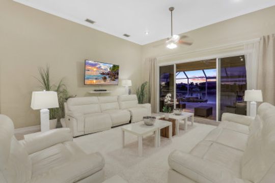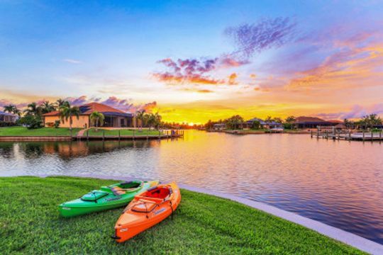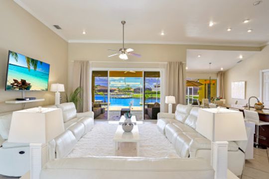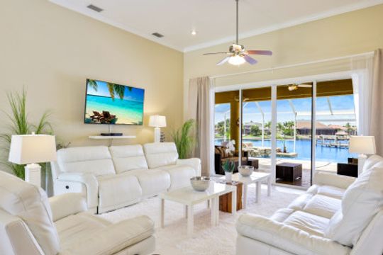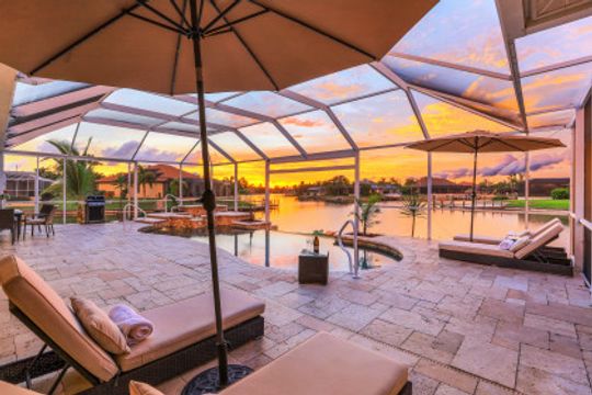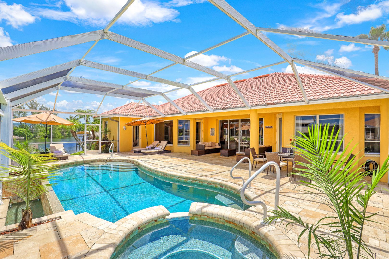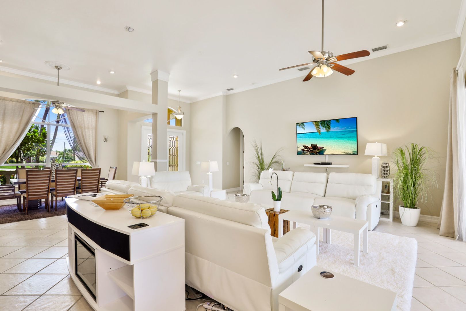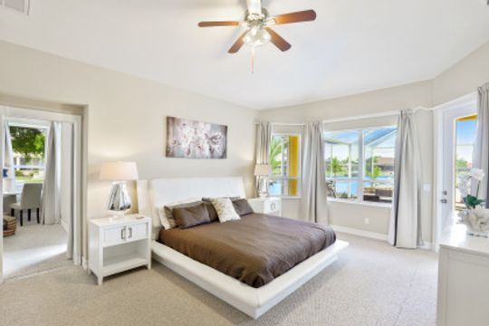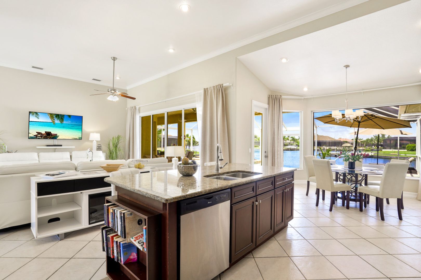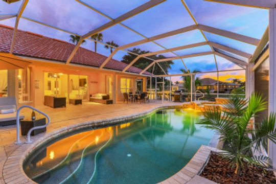 Absolutely stunning location in one of Cape Coral's most preferred neighborhoods with amazing views on three intersecting canals - the wide Rose Canal and Bella Vista Canal to the north and Antilla Canal to the west - hard to top these spectacular views from almost every room of this custom built gulf access home. More than 200' long concrete seawall. Enjoy gorgeous sunsets from your large lanai with newly installed travertine and your pool with infinity edge. Open floorplan, bright and light, gourmet kitchen with granite countertops. This beautiful 4 bedroom ( large master suite), 3 (2+1/2) bath, 2 garage home is offered TURNKEY - tastefully and fully furnished. Tiles throughout the house, covered with carpet in the bedrooms. All assessments (city water, sewer, irrigation) are in and paid in full! There are many more exciting details we should mention, but you have to see this true Florida gem. Call us for a private showing.
