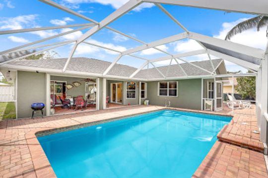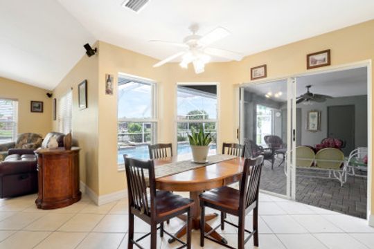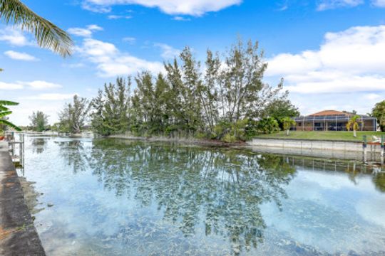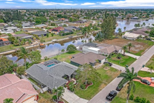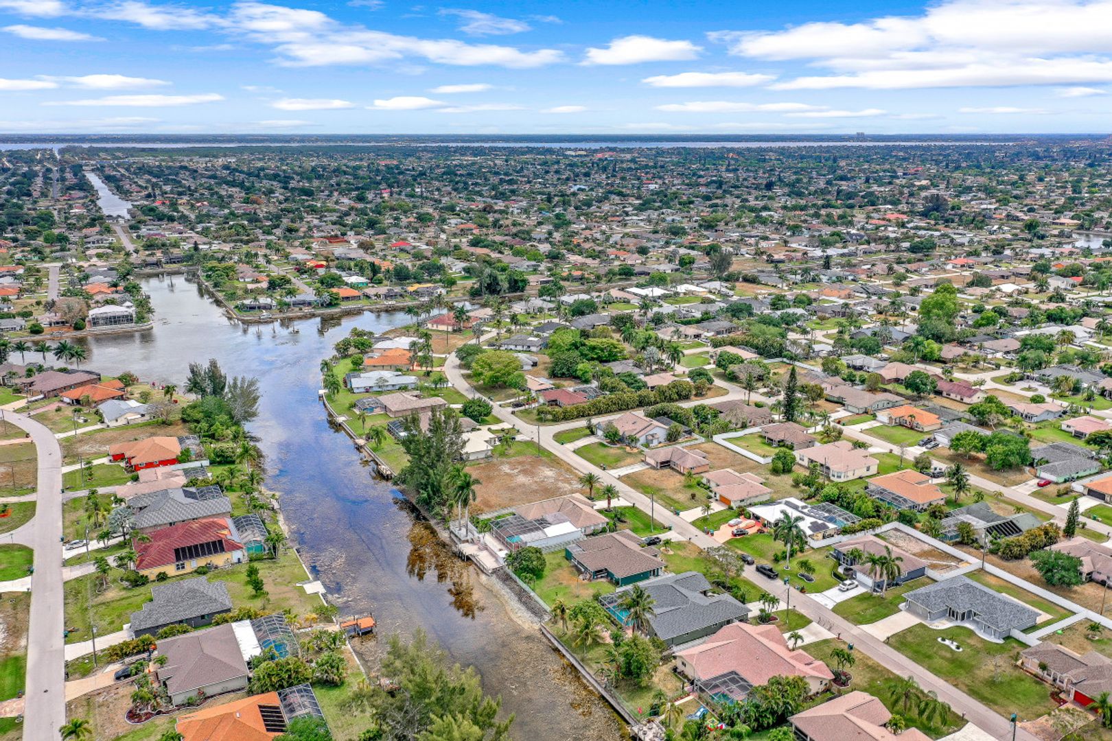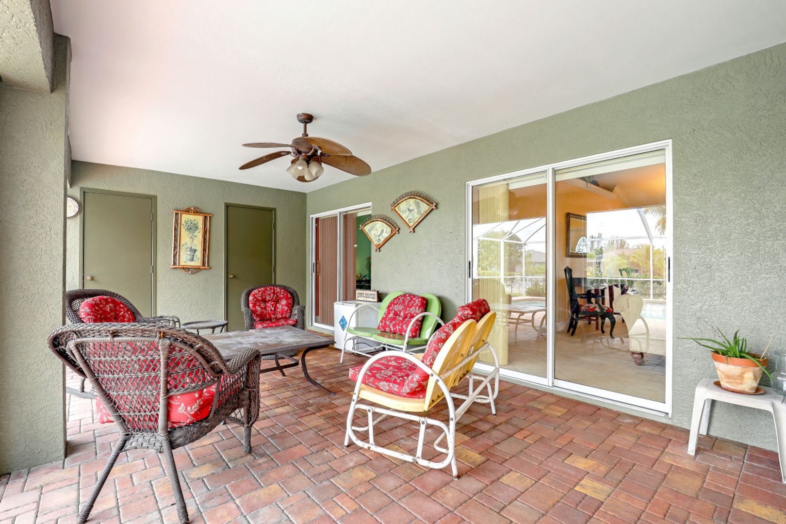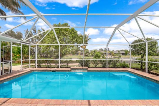 WATERFRONT POOL HOME! As you arrive you are greeted by beautiful lush landscaping, lava rocks & mature a gorgeous grand poinsettia tree! Ideal for large or growing family w/open floor plan featuring just under 2500 sq ft of living space, 4BR, 2BA & 2 Car Garage, split bedrooms & so many upgrades! Upgrades include: 2021 new AC & fresh paint on the exterior, 2020 new hot water heater, 2018 new roof & gutters! The kitchen features granite counters, SS appliances, refinished cabinets, breakfast bar & built-in desk. The owners suite has his/her closets, plantation shutters & updated bathroom w/dual sinks, jacuzzi tub & separate shower,. Outdoor living features large pool w/cascading waterfall feature, patio & screened lanai. The back yard has additional pavered patio & is completely fenced in for your furry friends not to mention four mango trees, banana, coconut & lychee trees too! Feel safe in your new home w/an indoor & outdoor camera security system & accordion storm shutters. Enjoy everything that SW FL has to offer-boat, sail, kayak, SUP, jet ski, fish or simply take a dip in your private oasis! White sandy beaches & world class fishing can be at your fingertips!