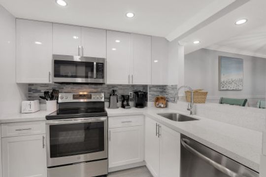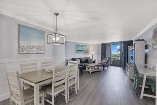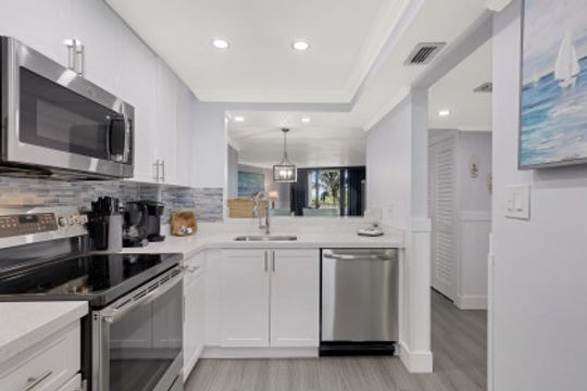 Gorgeous two-bedroom, two-bath, completely renovated beachfront unit being offered turnkey-furnished. From the moment you enter into this residence, you realize that no expense has been spared. The kitchen comes equipped with a breakfast bar, new stainless steel appliances, cabinets, countertops and lighting. Tastefully decorated with all new furniture and window treatments. Both baths have been completed redone with new modern vanities and tile that includes a handicap shower with a seat in the master bath. Beautiful wood-like vinyl flooring throughout. The main living area has wainscoting on the walls, and all rooms have been freshly painted. New high-impact storm doors and windows. Ready for you to come and enjoy all that Marco Island has to offer. Great investment property with excellent rental history. One of the few luxury beachfront condominiums that allow weekly rentals. Assessment has been paid in full. This gated community includes outstanding amenities with a resort-style swimming pool, tennis courts, pickleball courts, exercise room, BBQ picnic area, boat slips for rent, extra storage, covered parking and private beach access.
