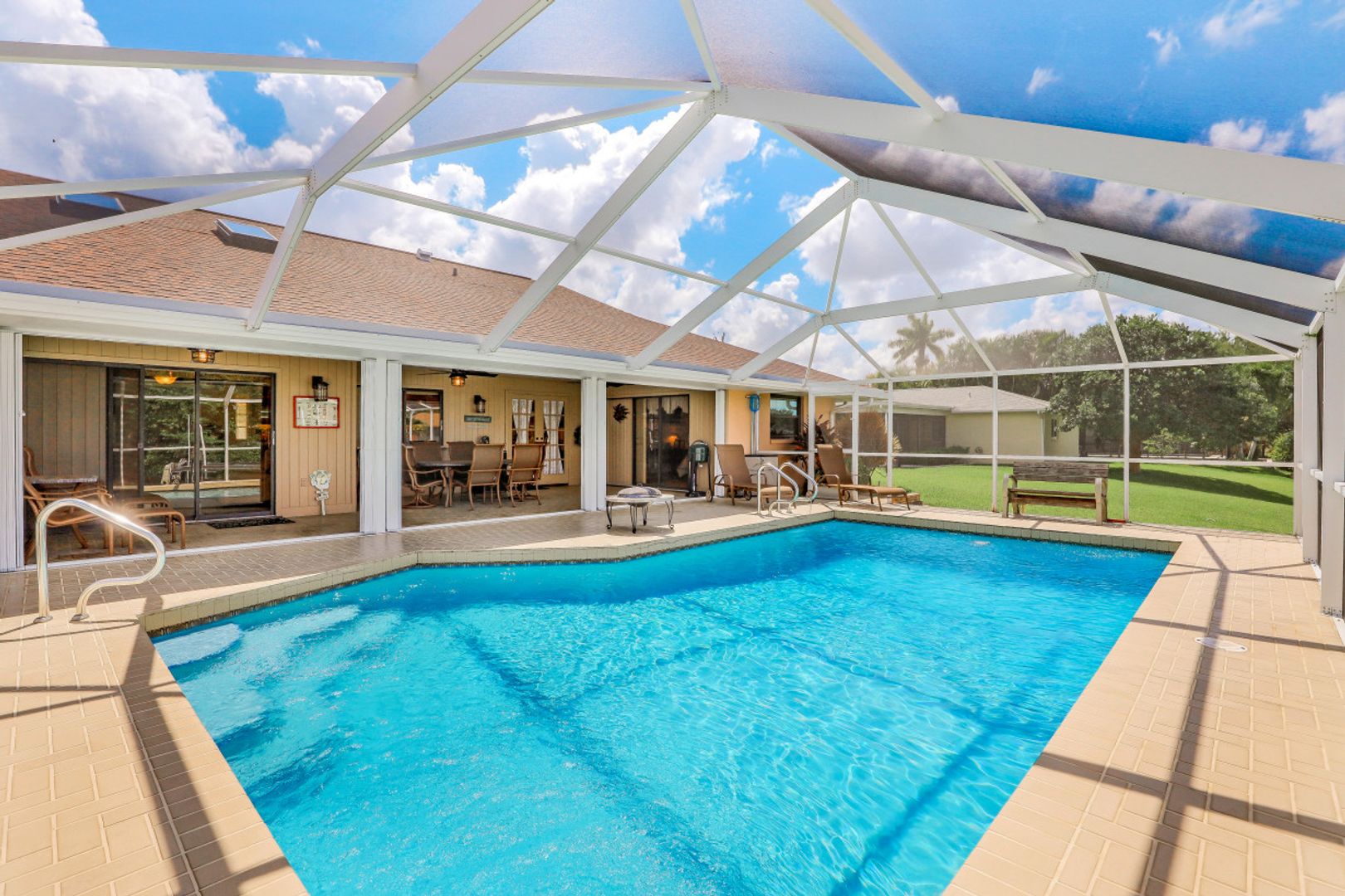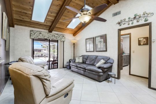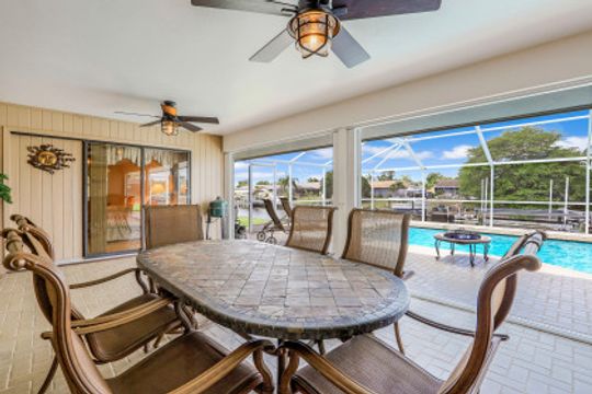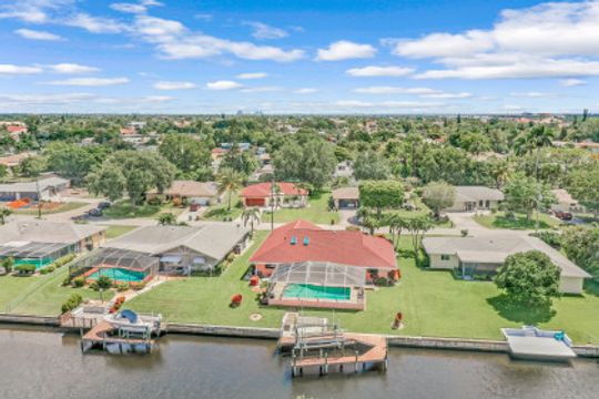Gulf Access w/SW Exposure in the heart of SE Cape Coral! Do you love FL weather but miss your home up north? Well here it is-custom built w/paver driveway, 2 single stall garage doors with redwood trim & matching brick exterior. Built to last with 2x6 roof trusses and CBS construction. Split floorplan features formal living & dining rooms, family room, 3 BR, 2BA & 24x21 2 car garage w/large storage area in attic. Lots of upgrades: 2021-remodeled guest BA, new refrigerator; 2020-BRAND NEW AC SYSTEM, remodeled owner BA, new IMPACT windows throughout, new impact rated garage doors, accordion shutters for back lanai; 2018-new hot water heater; 2017-BRAND NEW ROOF, new pool cage; 2014-new kitchen w/kitchen aid appliances, whole house re-piped, electrical panel replaced. Home features diagonal laid porcelain tile throughout (excluding 3rd BR), granite in kitchen & baths, vaulted ceiling in family room. All the hard stuff is done! Just a couple of personal touches will make this home ALL yours! Outdoor living is what SWFL is all about & this one will impress w/large covered screened lanai & crystal blue chlorine pool. Don’t forget your boat as this gem comes complete w/low maintenance composite dock & captain's walk w/wrapped pilings & 10k boat lift. Just 20 minutes to open water where world class fishing & white sandy beaches await! Live, work & play in paradise today!