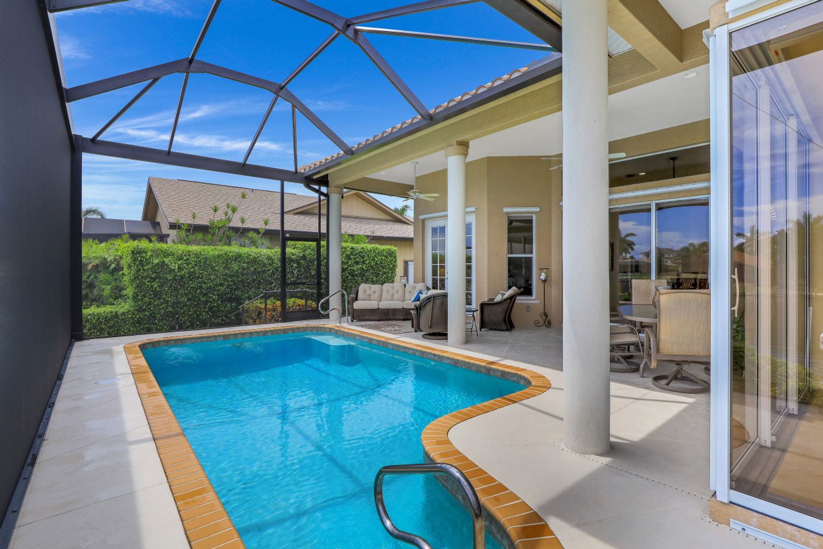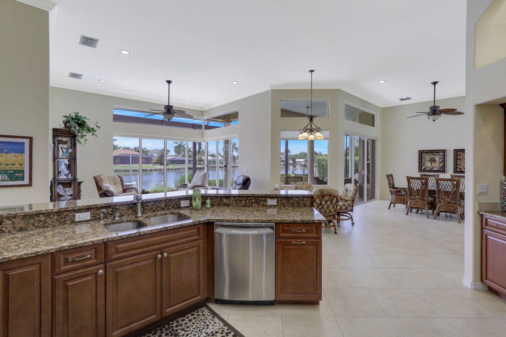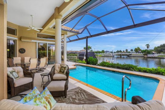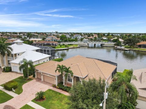 This meticulously maintained custom waterfront Divco home features 3 bedrooms, 3 bathrooms and over 100 feet of bay front views. The epoxied oversized garage is large enough for 3 cars plus a workshop area. The home was fully updated in 2010 and features tile floors throughout with volume ceilings. Quick access to the Gulf of Mexico is easy via your 16,000 lbs boat lift and composite dock with additional jetski lift. These features along with the great location just a chip shot away from the popular Island Country Club will surely impress boaters and golfers alike. Sit back and enjoy the great bay views with manatees and dolphins given the close proximity to the Marco River. The home has full hurricane protection, new 5 ton A/C in 2018, a new tile roof in 2018, new picture frame screen enclosure in 2019 and a nice wide paver walkway to the dock in late 2019.