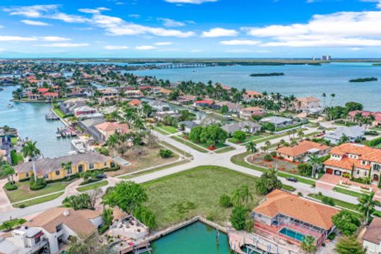 Great over-sized corner lot with southeast exposure. Desirable location with quick direct access to Marco River. This lot is the perfect opportunity to build your custom dream home with three car garage.