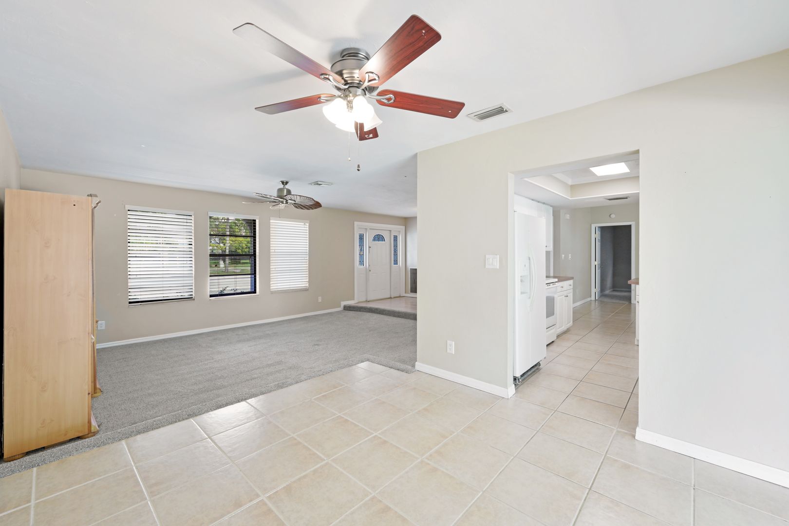NEW LISTING…Perfect Investment Property, or make it your home. This home has 3 Bedrooms, 2 Baths, 1573 sq ft of living area, a New Roof, New Water Heater, New Dishwasher, New Disposal, Newer Carpet, and an 8 X 10 Shed in the Backyard. You will love the huge tiled lanai with over 470 sq ft and a pass-through window, perfect for entertaining. There is a 200 sq ft Bonus room with exterior only access and a window AC unit that would make a great office, workshop, fitness room, craft room, or simply use it for storage. The primary bedroom features a walk-in closet with custom shelving. The Kitchen has a Breakfast Bar and Pantry. The Living room, Family room, Dining room, all Bedrooms, and the Lanai are equipped with Ceiling Fans. ALL UTILITY ASSESSMENTS ARE PAID IN FULL! Ideal Location close to Schools, Dining, Shopping, Beaches and easy access to Fort Myers, and RSW International Airport.