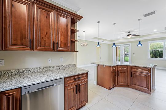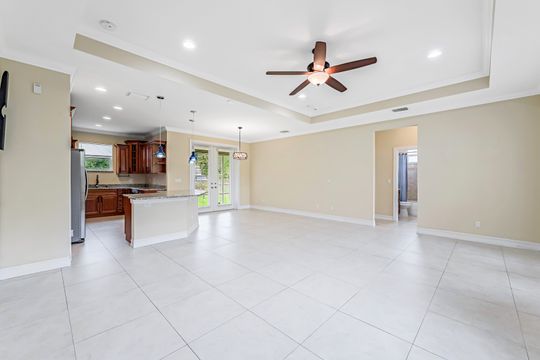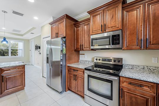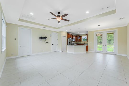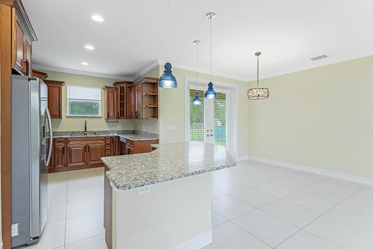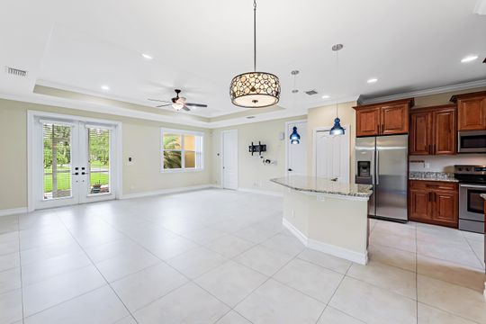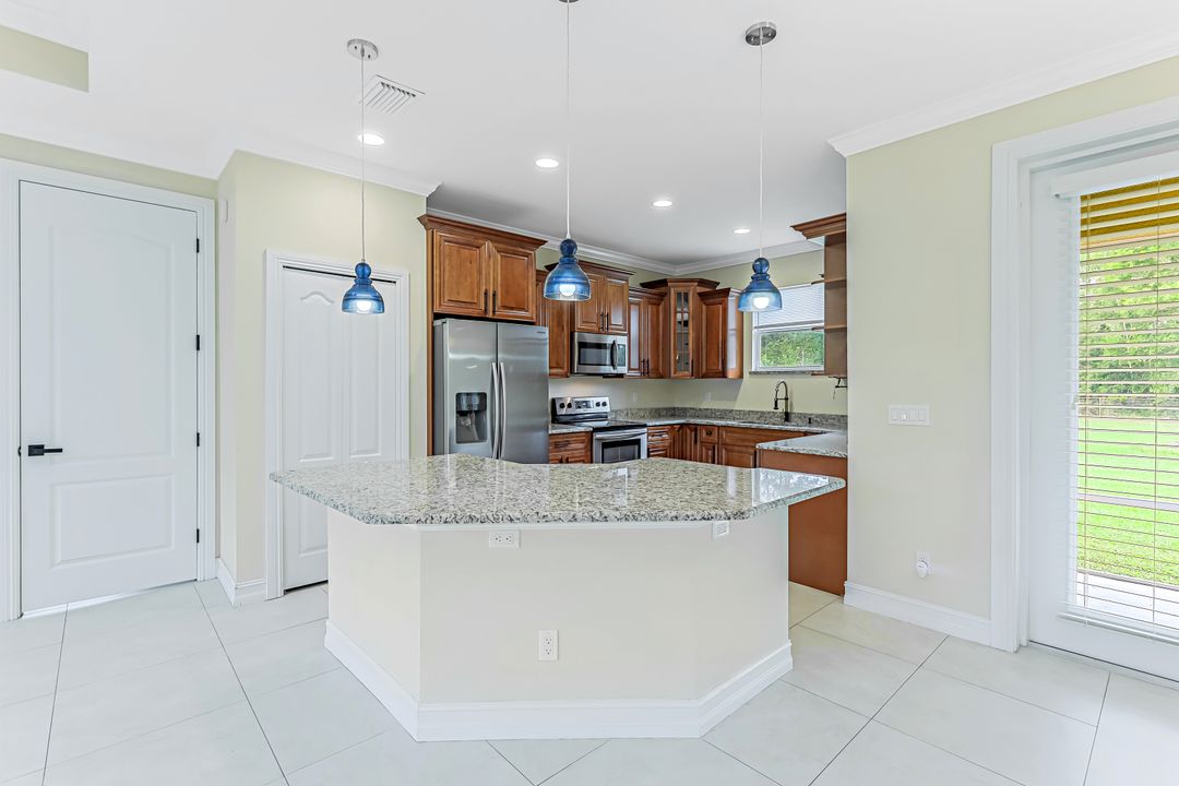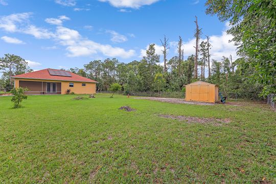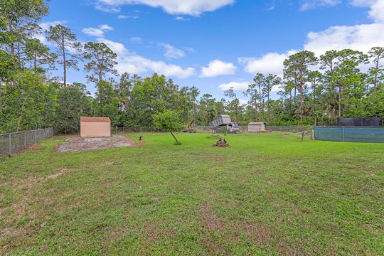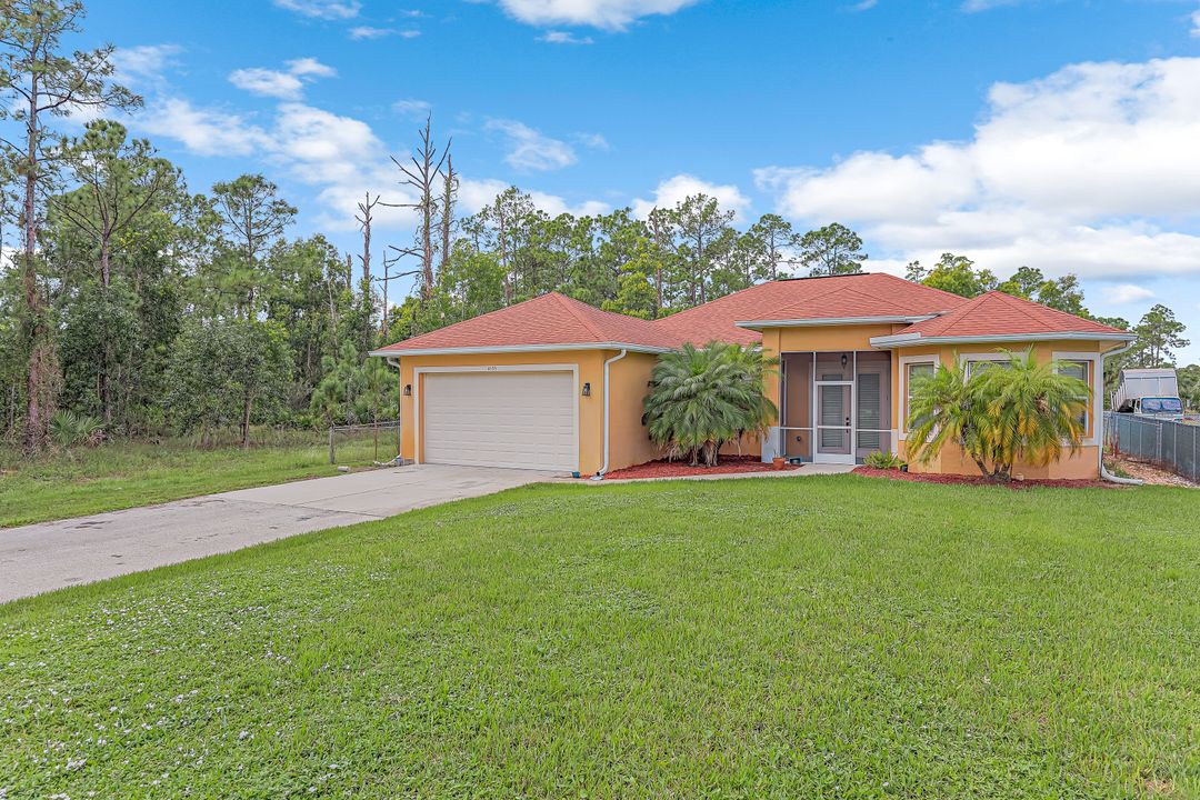 Looking for the perfect blend of comfort, style & privacy? Look no further! Nestled on a sprawling 1.14 acre lot, this 3BR, 2BA residence has features & finishes that will make you feel right at home. Upon entering you'll be immediately impressed by the tasteful interior featuring recessed lighting casting its warm glow, wall to wall tile flooring, crown molding & high trey ceilings. Kitchen features granite counters, stainless steel appliances & captivating views of the lush surroundings. Owner's suite is a sanctuary of comfort w/a spacious walk-in closet, ensuite bathroom complete w/large glass shower, dual sinks, upgraded fixtures & wall-to-ceiling tile in the shower for a beautiful and practical touch. A true highlight awaits in the form of a generously sized screened-in lanai, perfect for relaxing evenings & entertaining guests. With ample space for a pool, this area offers endless possibilities for outdoor enjoyment. The back yard is surrounded by a fenced yard & includes a secure storage shed, a serene wooded view & a tranquil backdrop for those looking to unwind in the embrace of nature - privacy is paramount here. Schedule today!