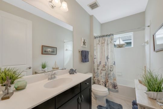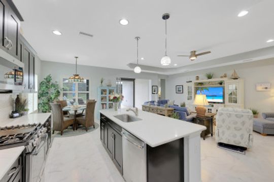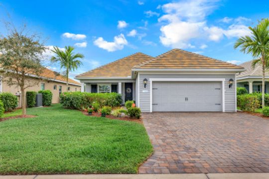 his upgraded and tastefully decorated, very well-kept pool home is ready for move-in. The open concept floor plan features three bedrooms and an office, two full baths and a two-car garage. This lovely home boasts upscale finishes and touches like tray ceiling, upgraded light fixtures and fans, plantation shutters, impact-resistant windows, porcelain tile in the main living area, kitchen with quartz countertops, a huge kitchen island and stainless steel appliances. The spacious primary bedroom suite with a pool view offers dual closets and a master bath with dual vanities and a walk-in shower. Pocket lanai sliding door opens to a beautiful saltwater pool and spa area, perfect for entertainment and relaxation. This home has a termite integrated system and it is located in the Watermark community with amenities that include a resort-style pool and spa, tennis courts, fitness center, fire pit, basketball, pickleball, kid's playground and a dog park. A natural gas community, and it is only minutes to some of the best beaches, shopping centers and entertainment in Southwest Florida.