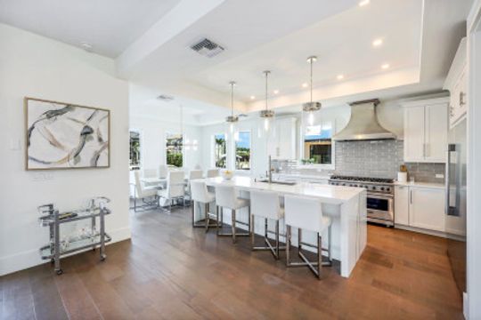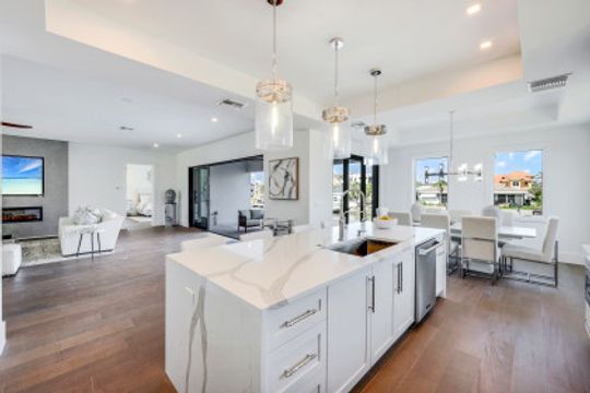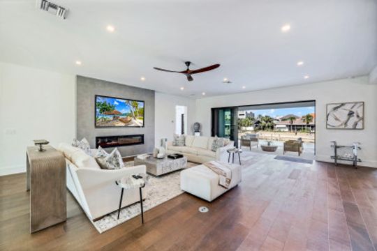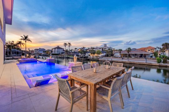 Waterfront Luxury! Minutes to the Gulf with a new seawall in place! This gorgeous residence is an entertainer’s dream, featuring a gourmet kitchen, huge island with gorgeous quartz countertops, and gas stove. Enjoy a resort-style infinity pool just off your lanai, complete with 2 waterfalls, an integrated spill-over spa, and sun shelf with built-in lounge chairs. No details were overlooked when building this beautiful home, with an open floor plan that flows seamlessly from the interior to exterior living spaces. The master wing affords luxury and privacy on the main living level. The second story features en-suite bedrooms, loft family room, lanai overlooking the canal, and a 2nd laundry room. All of this and centrally located close to everything Naples has to offer!