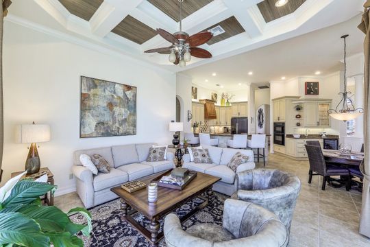 Stunning residence where luxurious comfort and classic coastal sophistication blend in a harmonious way. This gorgeous two story, 4-bedroom, 3 full bath plus den home built by Divco features superb architectural custom details and impeccable craftsmanship throughout. Hurricane protected, soaring ceilings, exquisitely appointed, and professionally decorated. Breathtaking views from every room. Exquisite attention to detail. The formal dining and living room are followed by a spacious family room, casual dining area, large kitchen and dry bar. Rich cabinetry and new appliances to enhance your culinary experience. The master bedroom offers a gorgeous double tray ceiling with recess lighting and top-notch master bathroom. Second floor offers a convenient wet bar to prepare coffee or drinks, and a balcony to sit down and be mesmerized by the magnificent vistas of the island.
