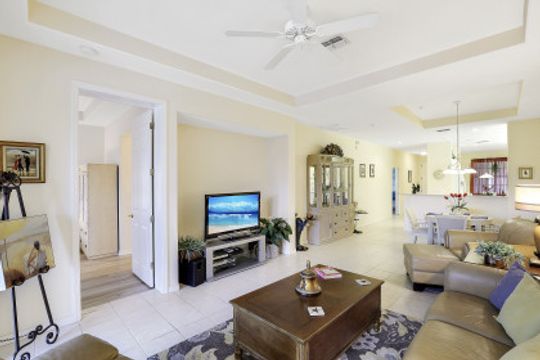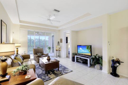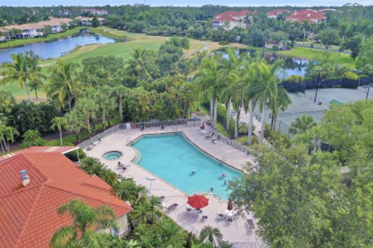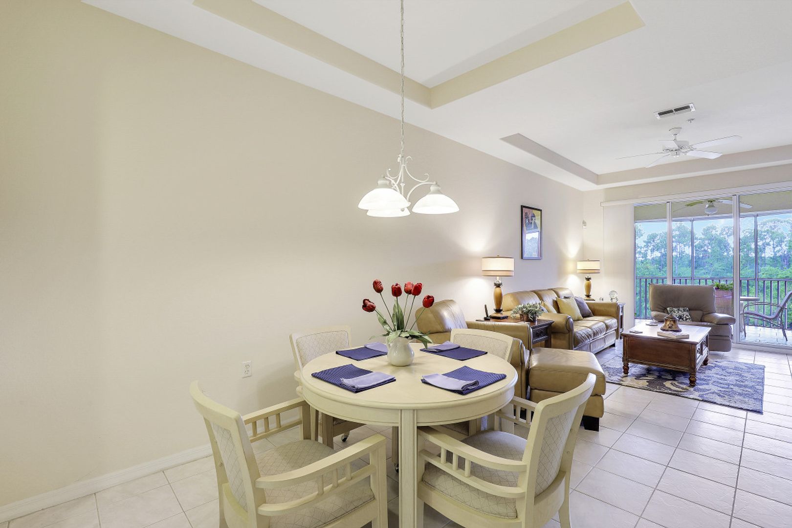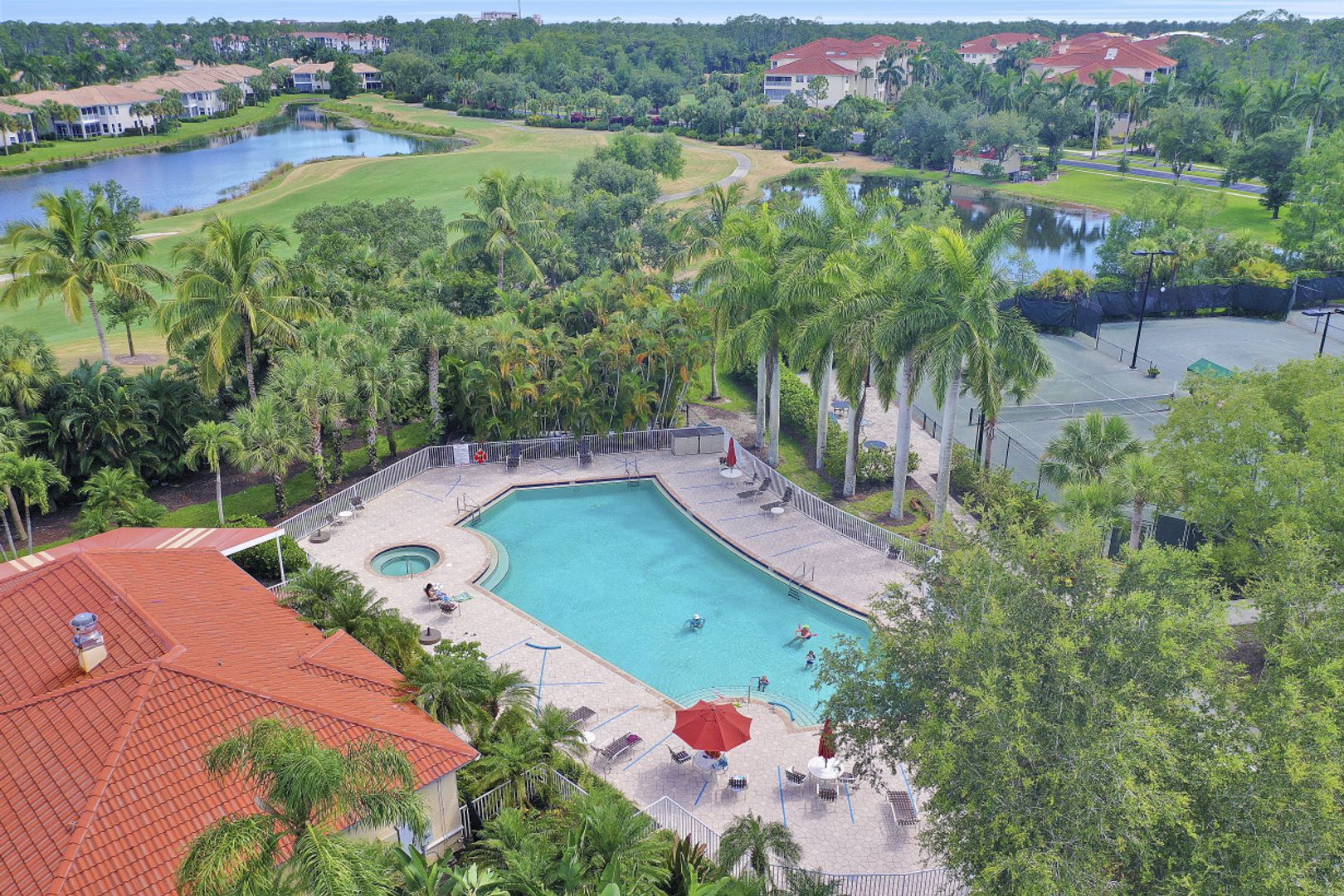 Enjoy stunning views from this nicely appointed, penthouse condominium with sunny SW rear exposure, panoramic views of the 16th & 17th holes, year-round sunsets, and turnkey furnished. Move into this pristine condominium that showcases newer appliances, new luxury flooring in bedrooms, open floor plan, and views. The private garage is located under building with quick access to the elevator and unit. The building is located next to the community pool and a short stroll to the prestigious clubhouse for Naples Lakes which boasts luxury amenities - member-owned golf course, an 18-hole Arnold Palmer Signature Golf Course, country club community, with award-winning golf shop, state-of-the-art fitness center, aqua golf range, tennis courts, and dining facilities. Don't miss your change to own this stunning condominium in this luxury community.