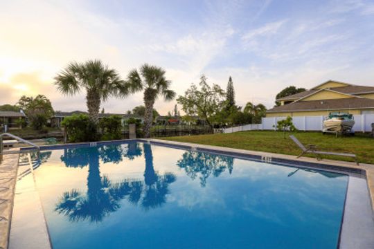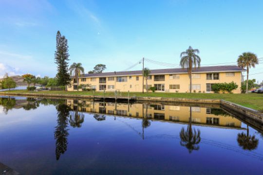 Affordable Gulf Access Condo in downtown Cape Coral. This 1st floor corner unit has 2 bedrooms, 1 bath and a large screened lanai. The community amenities include a pool, common laundry facility and Gulf access dockage on a first come first serve basis. This unit is walking distance to Sweet Bay and an abundance of restaurants & nightlife. Plus quick boating access to the Caloosahatchee River and beyond.