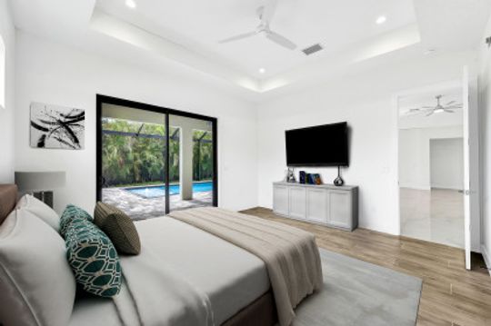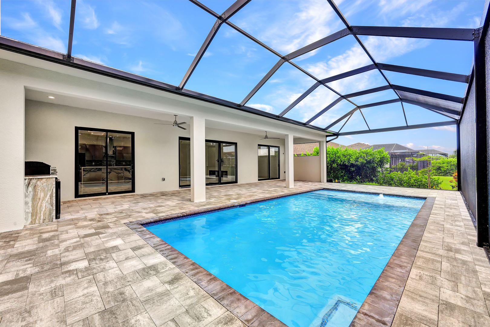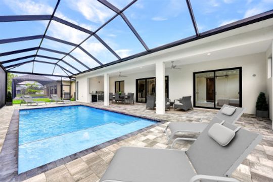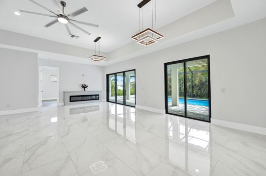 The Address is 4926 Agualinda Blvd. ( 4930 is sold). New ConstructionThis 4 bed, 4.5 bath gorgeous home,offers a serene & peaceful setting in the highly sought-after community of Cape Coral, FL. Spacious floor plan flows seamlessly from room to room. A stylish Metal Roof, 24 x 48 Porcelain Ceramic tiles. 50 Gal. HW heater, Quartz Countertops throughout, Impact doors & windows, AVI Cabinets, wireless AC control, Epoxy 3 car garage flooring. Large underroof screened lanai. Perfect for enjoying Florida's beautiful weather while entertaining guests on your expansive pool deck, with your summer kitchen and saltwater pool. In the living area enjoy a large electric fireplace that creates a warm & inviting atmosphere. The kitchen is well-appointed w/ quartz counter tops & wine cooler making it perfect for entertainment. With 4 generously sized bedrooms, 3 en-suites, full hall bath & separate pool bath offers plenty of privacy for family members and/or guests. This home is just minutes from shopping, dining & entertainment options, as well as some of the best beaches in the world. Beautiful neighborhood! Love your in-laws but don't want to live with them?