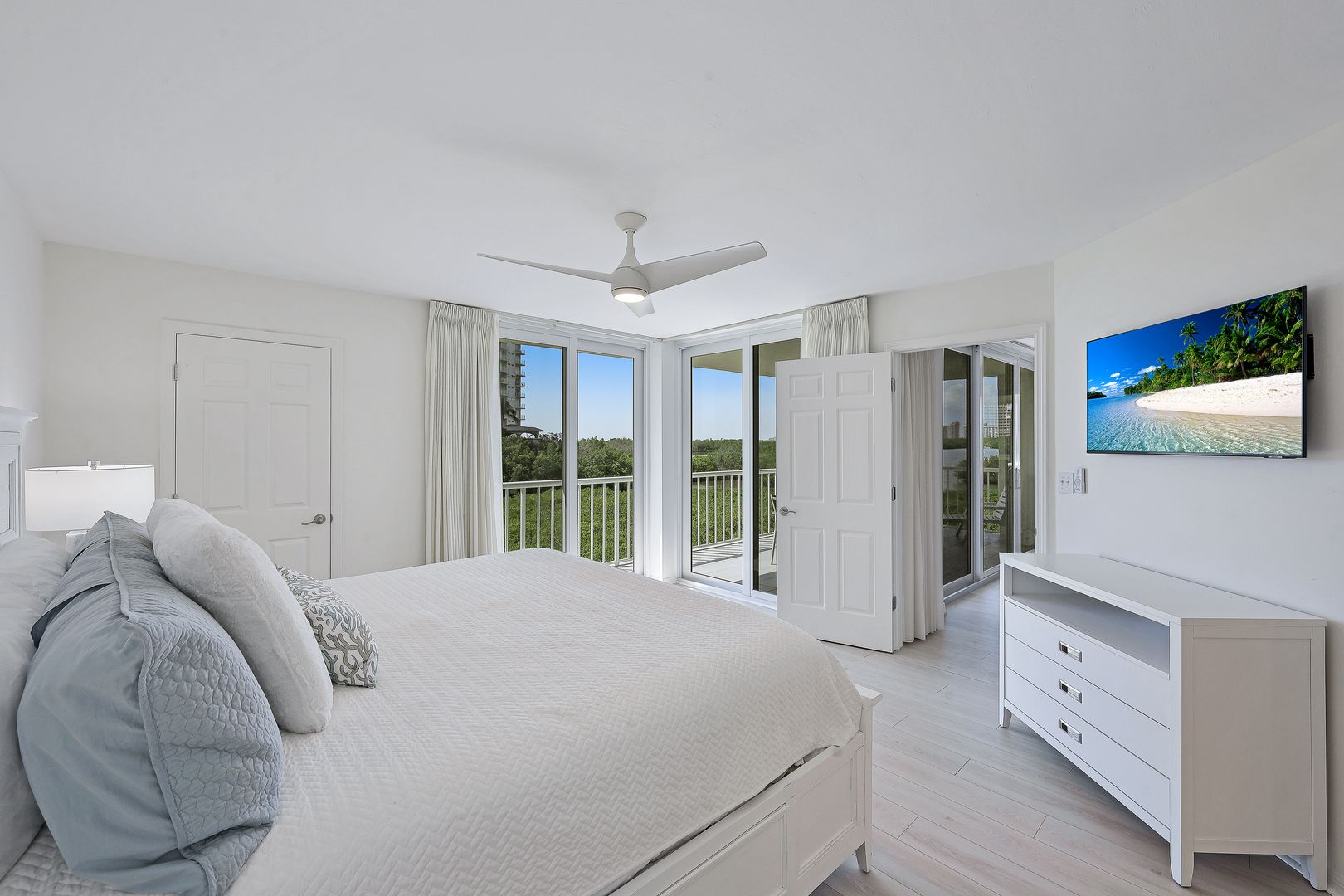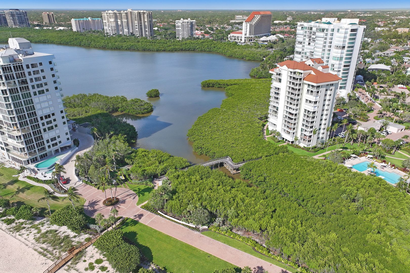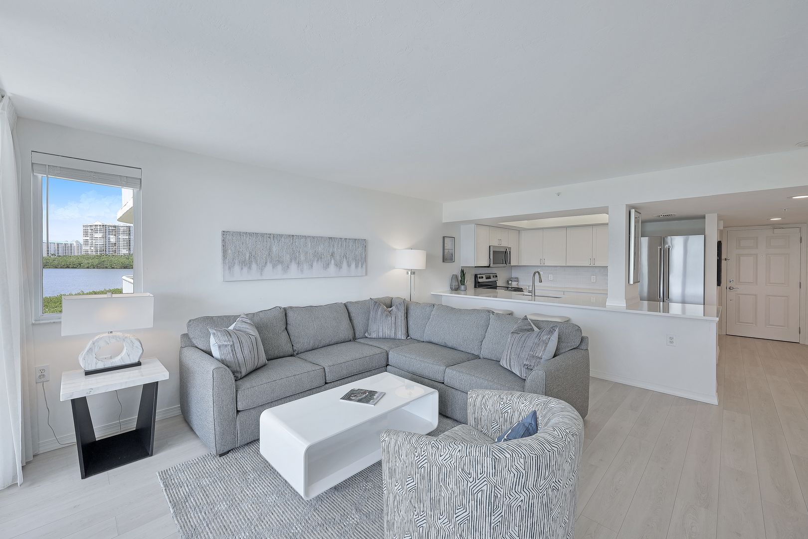Listed for $1,495,000 and SOLD for $1,507,500. NAPLES CAY LUXURY BEACH CONDO ~ JUST STEPS TO THE SAND! Stylishly and NEWLY UPDATED condo in Westshore at Naples Cay. NEW Luxury Vinyl Plank flooring throughout. NEW kitchen cabinets, NEW quartz countertops, NEW stainless appliances, NEW stackable washer/dryer. Updates to master and guest baths. GREAT RENTAL OPPORTUNITY! Enjoy beautiful sunsets and views of the Gulf, Clam Bay and the Pelican Bay skyline from your nearly 225 sq ft lanai. State of the art fitness center, large resort style pool and spa, Har-Tru tennis courts, kayak launch and 850 feet of sandy beachfront. Naples Cay is a private, guard gated, luxury beachfront community that offers a unique level of privacy and tranquility, yet is within walking distance to fine dining, shopping and entertainment of Venetian Village, Waterside Shops and Artis Naples.