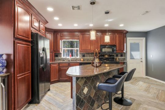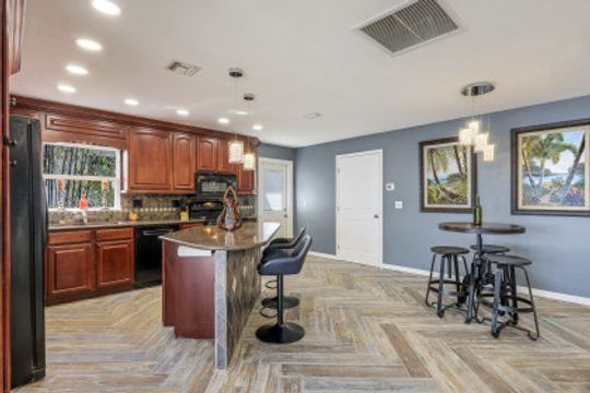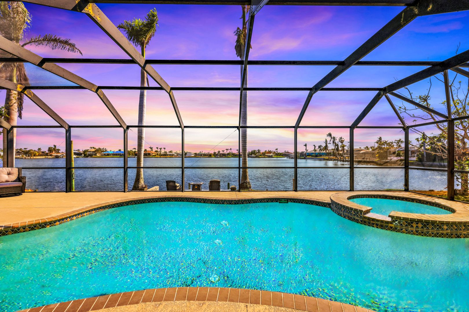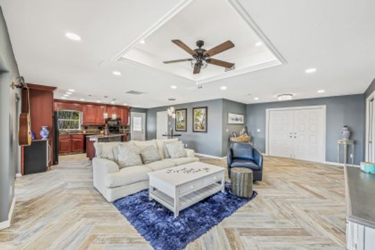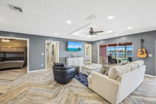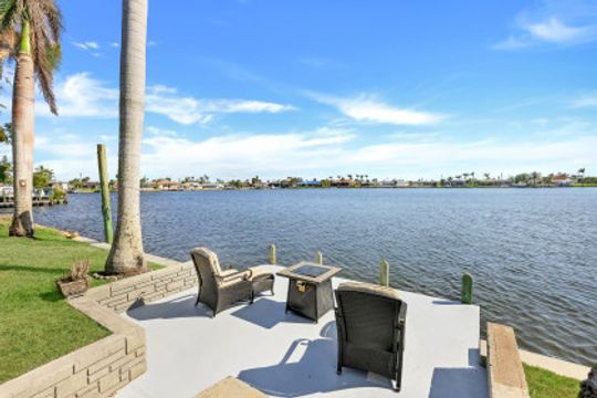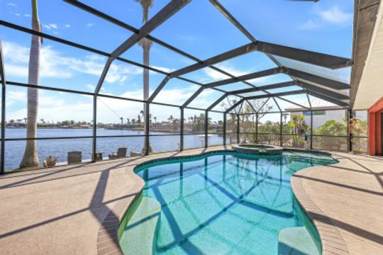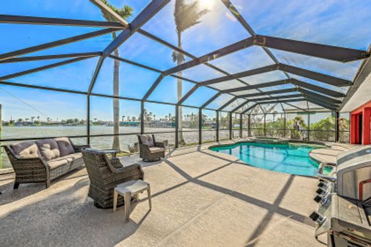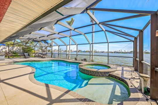 As soon as you pull into the circle drive and are greeted by the formal, double door entry to this inviting, open floor plan, gulf access, waterfront located on Thunderbird Lake in the prestigious 8 Lakes Neighborhood you'll know this is the right place to call "home". Envision enjoying your morning coffee poolside in this 4 bedroom 2 bath, top to-the bottom renovated house with its expansive view of the tranquil lake along with inviting heated, salt water pool and freshly landscaped irrigated green space. You'll appreciate the possibilities available here. It could be a great vacation rental with its split floor plan and close proximity to downtown, airports, and beaches. It could make a great snowbird retreat with its location close to shopping, city parks, and the Tarpon Point area. It could even be a fantastic full-time residence with its fresh renovation featuring everything needed to keep you resting comfortably right down to the mini split air conditioning in the newly epoxied two-car garage and the large primary suite with generously sized walk-in closet along with the availability of the brand new furniture. The new roof and great attention to detail in the renovation make this home a must-see!