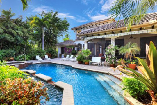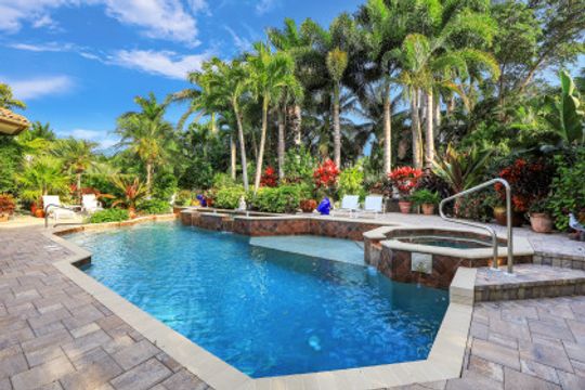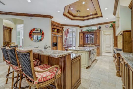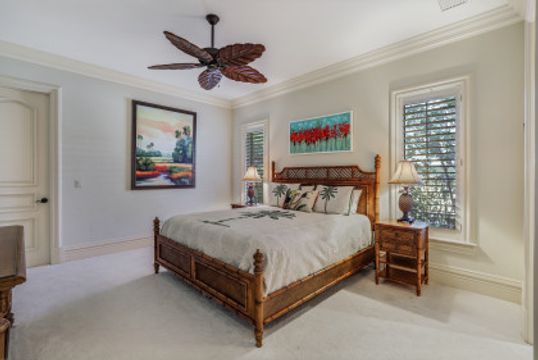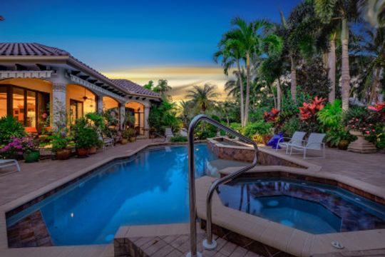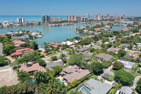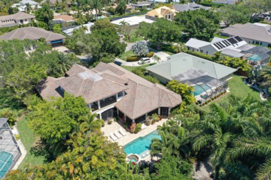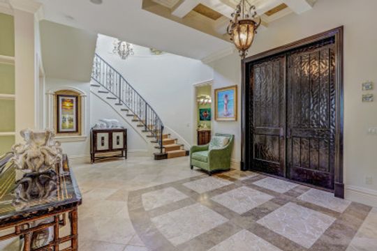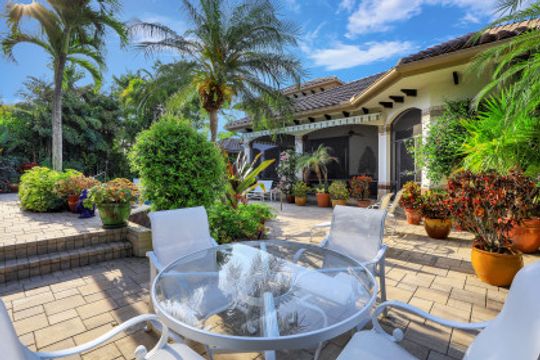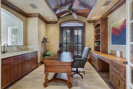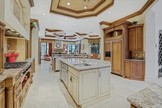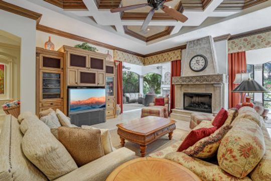 Stunning four bedroom, four and half bath home located in the heart of Moorings with many tastefully appointed and lavish details throughout. Beautifully designed living room and separate dining area with walk-in wine cooler. The gourmet open kitchen boasts granite counter-tops, large island with prep sink, breakfast bar, pantry, gas stove, double oven, warming tray and built-in desk. Tray and coffered ceilings accentuated by travertine flooring highlights the striking craftsmanship of this home. Expansive family room with fireplace is perfect for relaxing or entertaining. All en-suite bedrooms with two master-suites on the first floor. Master bath comes with dual sinks, jetted tub, separate shower, and private water closet with bidet. Large den /study with extensive built-ins, wet bar, and private covered baloney. The outdoor sweeping veranda is a tropical getaway all itself with screened and open lanais, fireplace, pool, spa, and summer kitchen surrounded by exquisite plush landscaping for complete privacy. Impact resistant glass throughout. Whole house generator and four car garage. Private beach access, and membership eligibility to the exclusive Moorings Golf & Country Club.