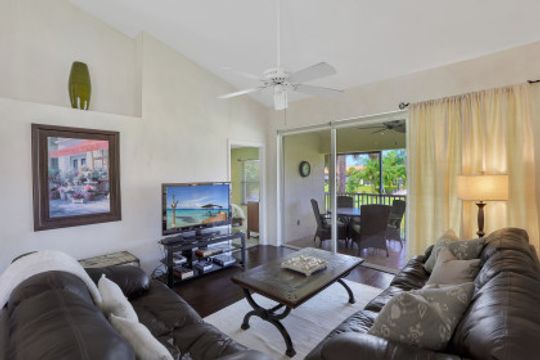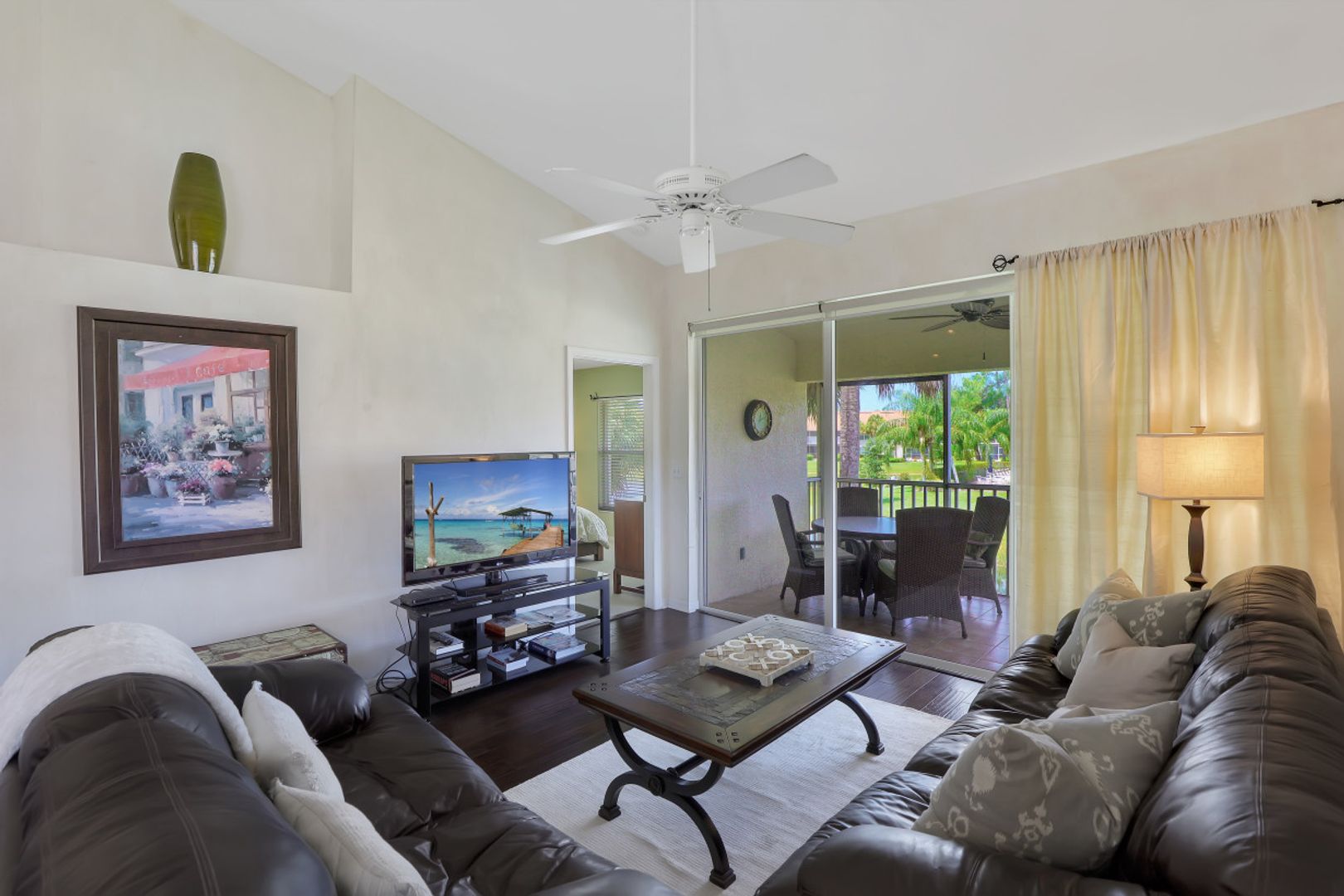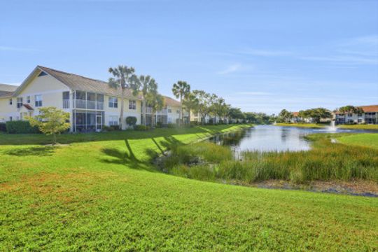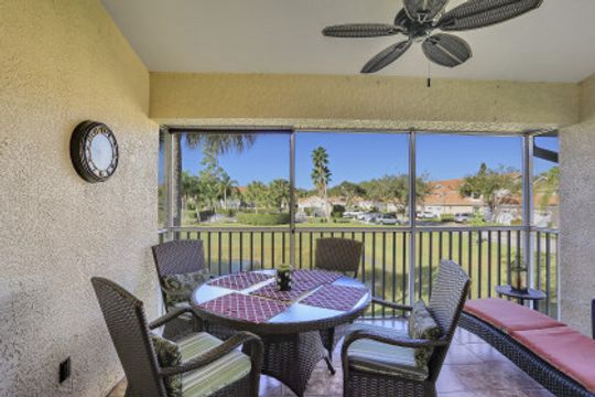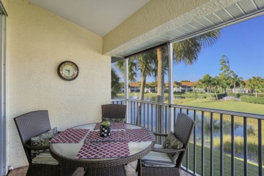 Desirable location for this 2nd floor unit with lake & fountain views located in the North Naples development of Carlton Lakes. Enjoy a spacious & private end unit that features 2 full bedrooms plus an additional den space to be used as an office, or additional living room. You'll appreciate the vaulted ceilings, open concept floor plan that is great for entertaining, as well as gorgeous wood flooring throughout the main living area and stairs & two balconies for your outdoor enjoyment. The unit's location only gets better being steps to the local pool, directly across from the gate access that leads to Publix & a short walk to the new Oaks Farms grocery store that also offers a coffee bar, wine bars, various food & dining options and live music on weekends. Carlton Lakes features walking & jogging paths, bocce & tennis courts, a master club house with a 60 ft lap pool, hot tub and a fishing pier. Take advantage of multiple beach options with a short trip to Vanderbilt Beach, Delnor Wiggins State Park or Barefoot Beach. This furnished unit (some exclusions) is also sold with 1 year home warranty at closing. Bring your suitcase & start enjoying the Naples lifestyle.