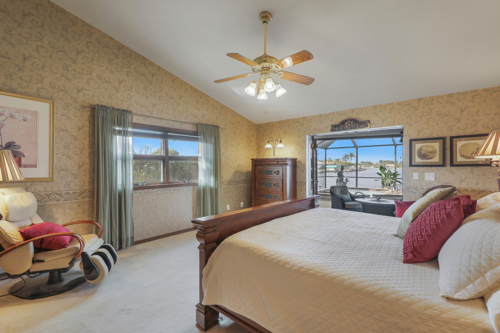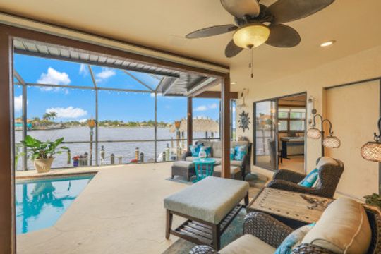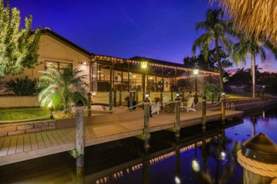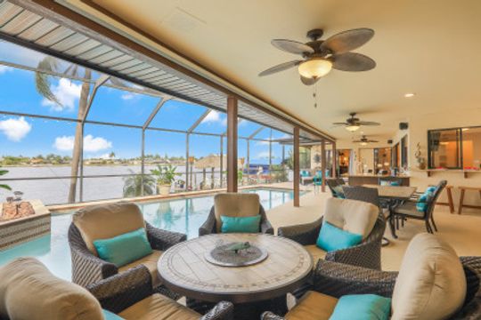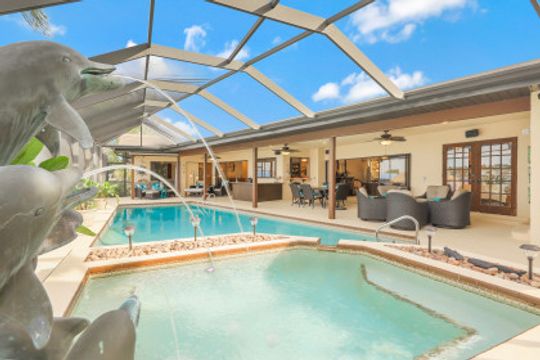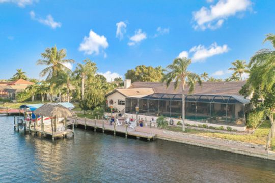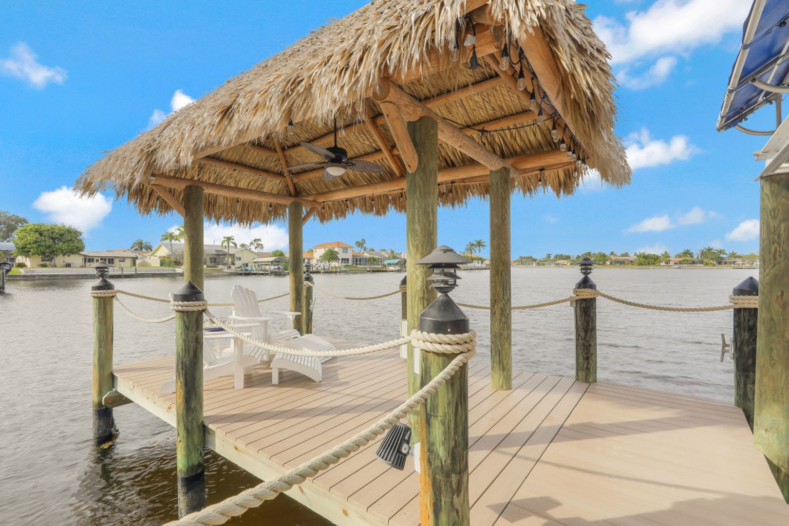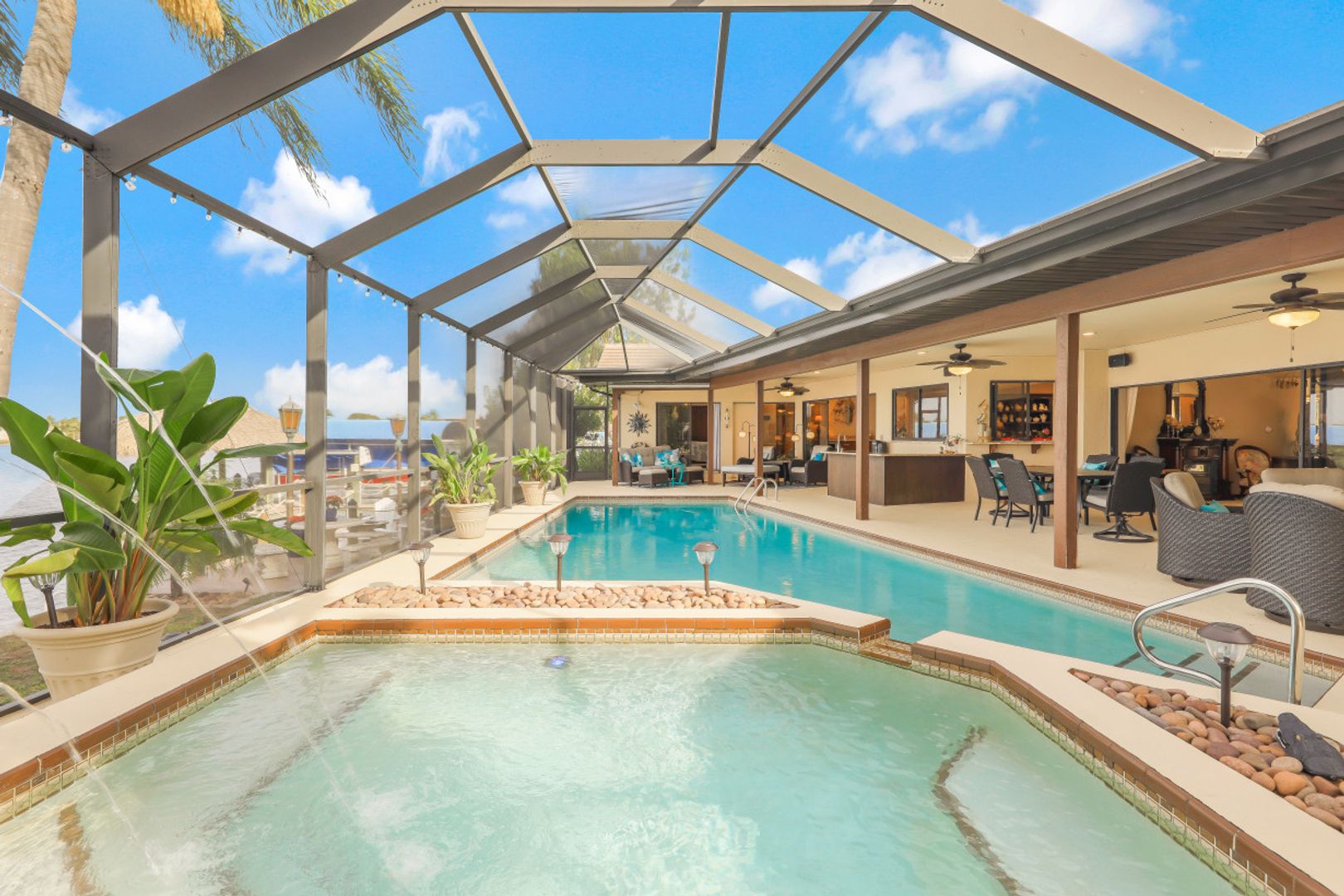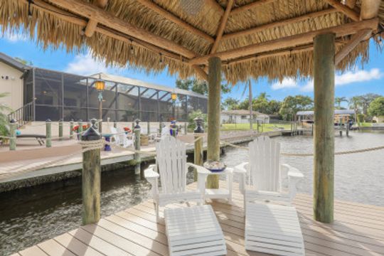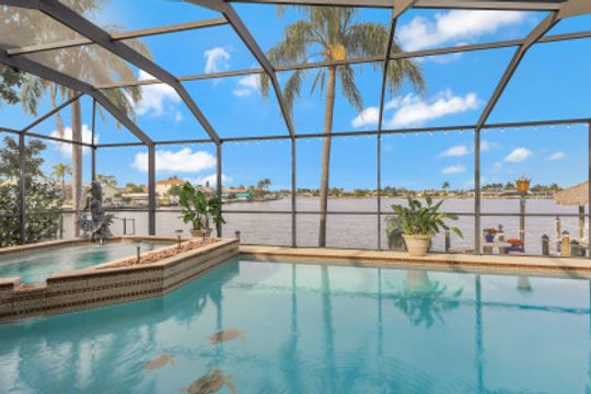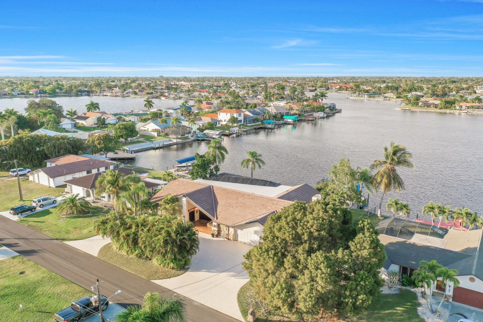 Magnificent Gulf Access Lakefront Pool Home in the prestigious Rose Garden/8 Lakes area of Cape Coral FL. w/120 ft of waterfront on Thunderbird Lake, this triple lot home provides almost 4000 sq ft of living area w/unparalleled wide water views & fast access to open water! The heart of this 5Br, 4.5BA, 3GAR home is a one-of-a-kind gourmet kitchen with a 10x6 granite center island, surrounded by solid walnut cabinets, ample storage, stainless appliances, walk in pantry & wall of windows with expansive lake views! The large tiki hut, enveloped by the peaceful lake, is a perfect place for a cocktail after a dip in the heated pool/spa. You’ll love entertaining poolside on the screened lanai w/granite-top wet-bar. The 10,000 lb boat lift, jet ski lift & kayak dock give you plenty of watersports options just minutes from the Gulf of Mexico. Enjoy avocado, citrus & macadamia fresh from your own trees or hot cocoa in front of the fireplace in the chilly months! This home truly encompasses the FL lifestyle just minutes from world class fishing & white sandy beaches! New roof ‘20, new plumbing ‘10, new electrical panels ‘15 & newer AC ‘15.