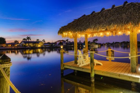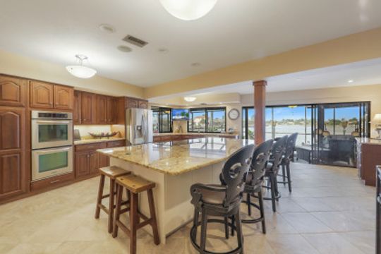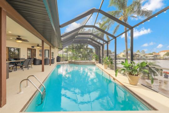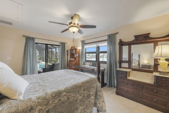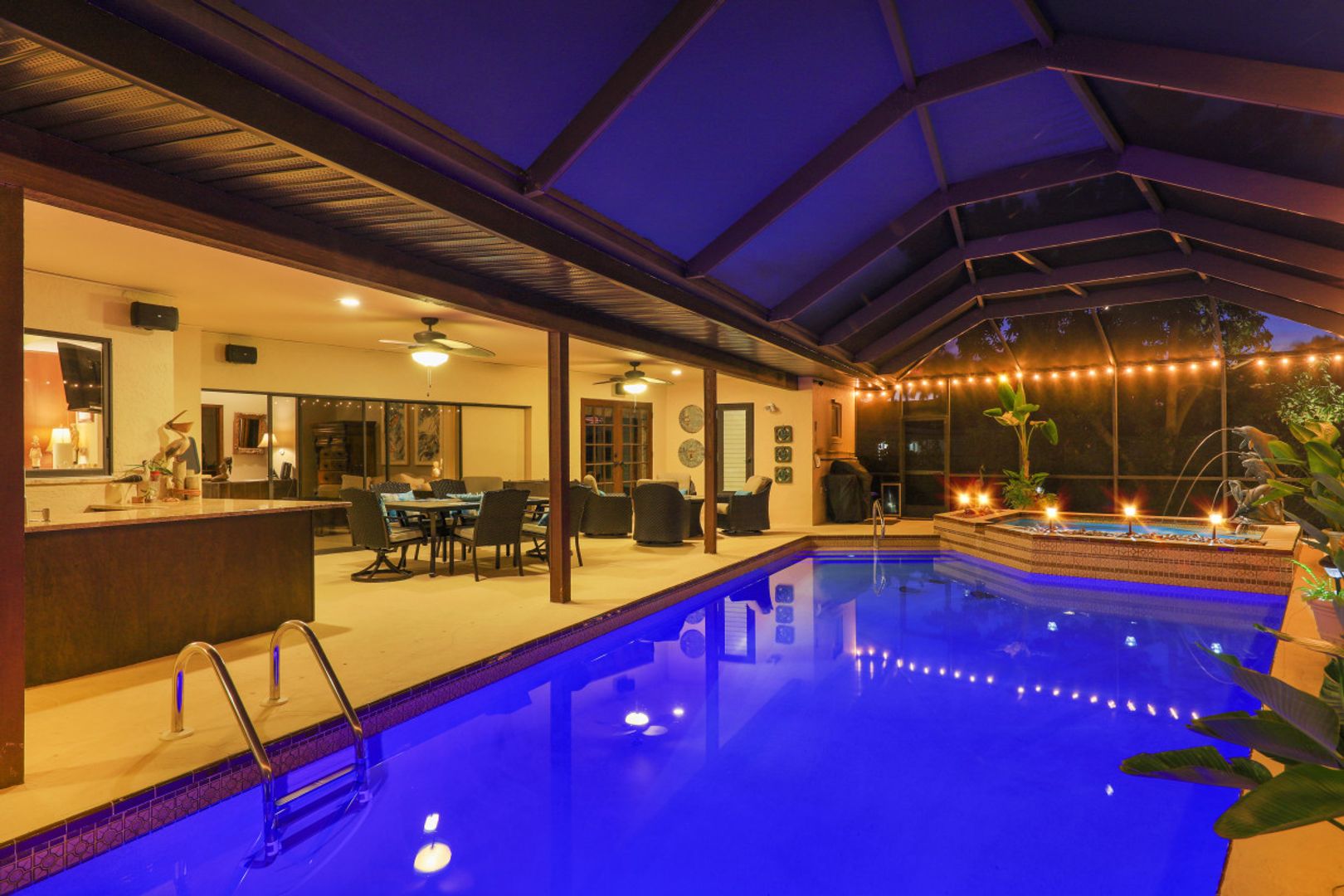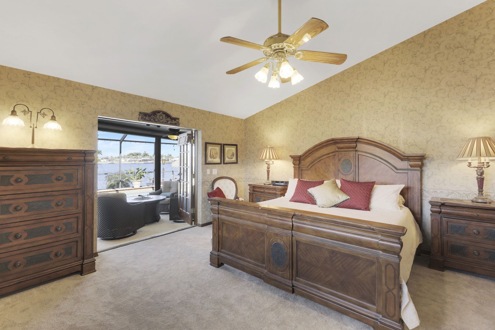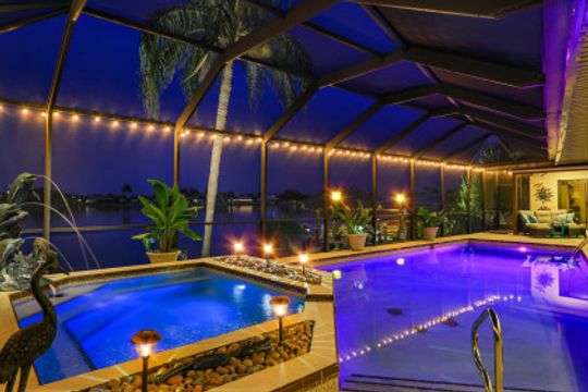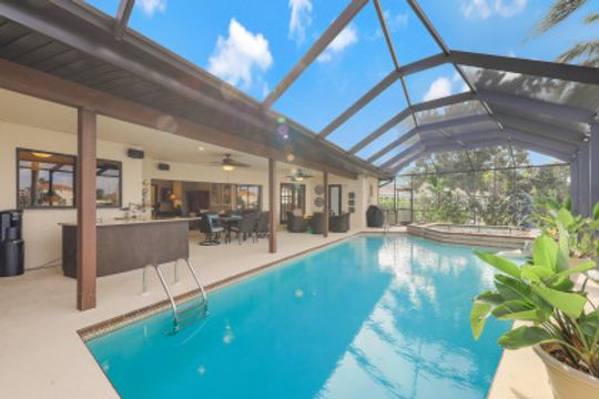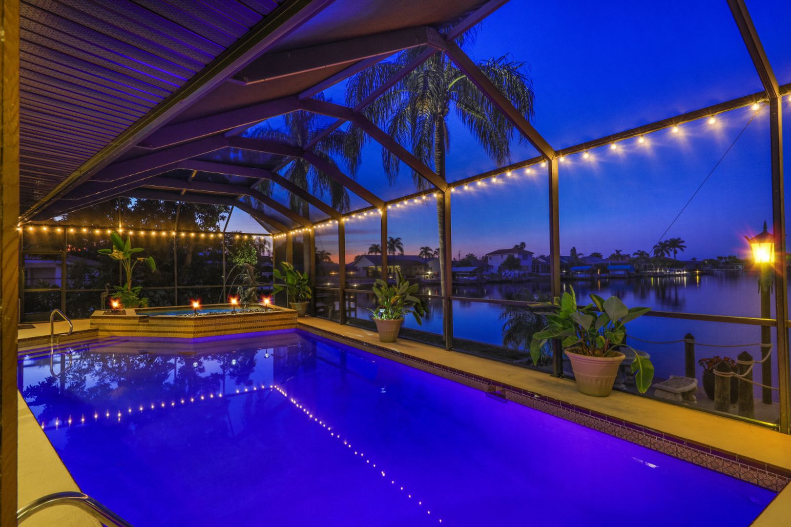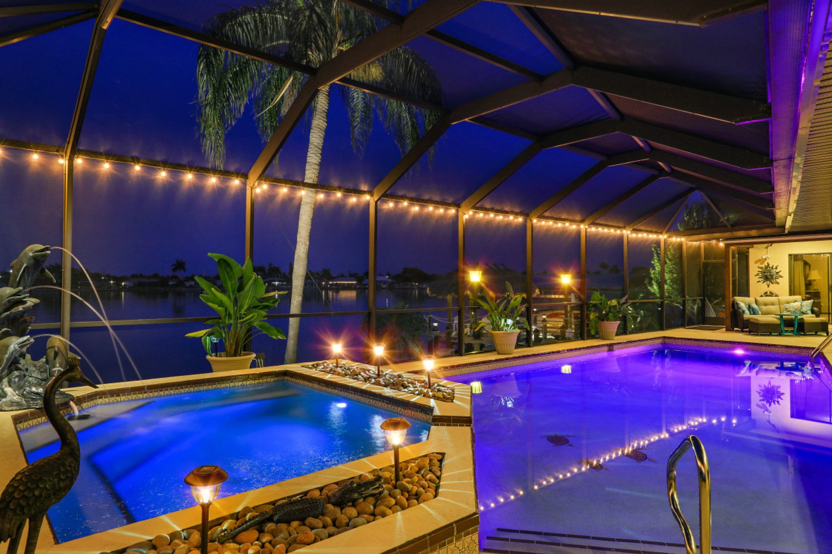 Magnificent Gulf Access Lakefront Pool Home in the prestigious Rose Garden/8 Lakes area of Cape Coral FL. w/120 ft of waterfront on Thunderbird Lake, this triple lot home provides almost 4000 sq ft of living area w/unparalleled wide water views & fast access to open water! The heart of this 5Br, 4.5BA, 3GAR home is a one-of-a-kind gourmet kitchen with a 10x6 granite center island, surrounded by solid walnut cabinets, ample storage, stainless appliances, walk in pantry & wall of windows with expansive lake views! The large tiki hut, enveloped by the peaceful lake, is a perfect place for a cocktail after a dip in the heated pool/spa. You’ll love entertaining poolside on the screened lanai w/granite-top wet-bar. The 10,000 lb boat lift, jet ski lift & kayak dock give you plenty of watersports options just minutes from the Gulf of Mexico. Enjoy avocado, citrus & macadamia fresh from your own trees or hot cocoa in front of the fireplace in the chilly months! This home truly encompasses the FL lifestyle just minutes from world class fishing & white sandy beaches! New roof ‘20, new plumbing ‘10, new electrical panels ‘15 & newer AC ‘15.