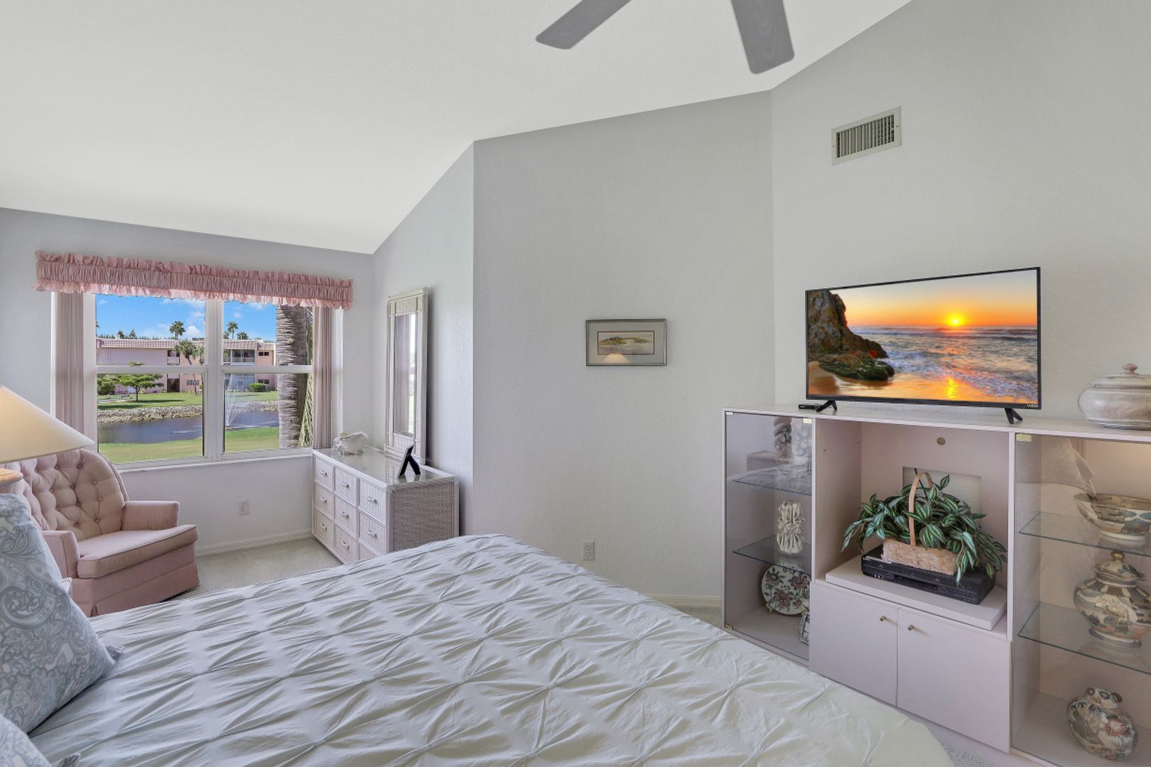 YOU CAN SEE FOR MILES & MILES & MILES! This 3 bedroom, 2 bath unit offers OUTSTANDING LAKE & GOLF COURSE VIEWS AND BEYOND! Entry to this 2nd floor residence is by way of your own private courtyard . Light fills the upstairs unit which features custom paint colors, carpeting and tile, spacious great room area for entertaining, dining and breakfast rooms, Master suite with sitting area and guest bedrooms and bath. Extra storage, laundry room and 1 car garage complete this home. Emerald Greens offers tons of community amenities including pool and public golfing at Quail Run golf course. This one has it all including it's central location to dining, shopping and only a short drive to the beach!