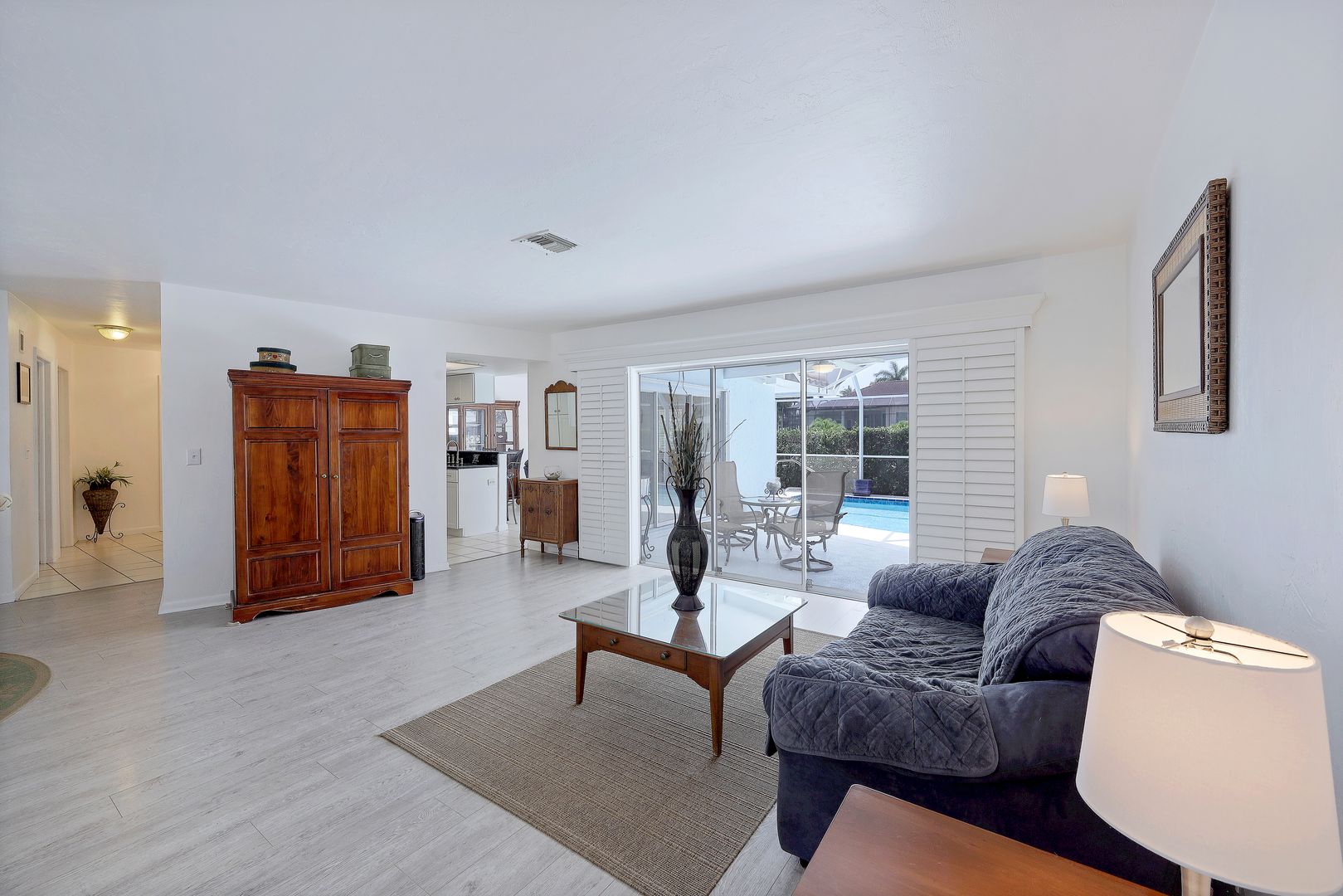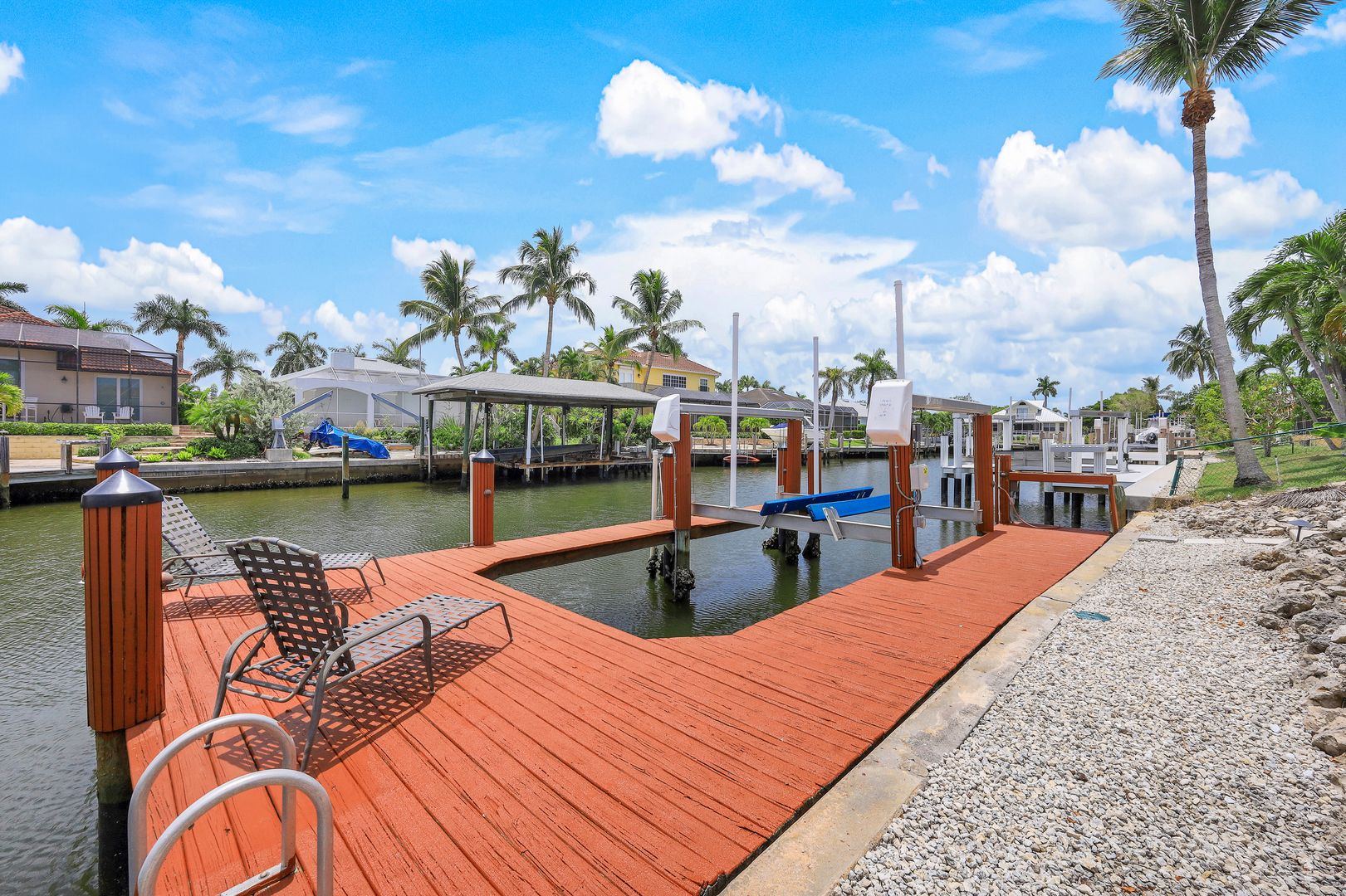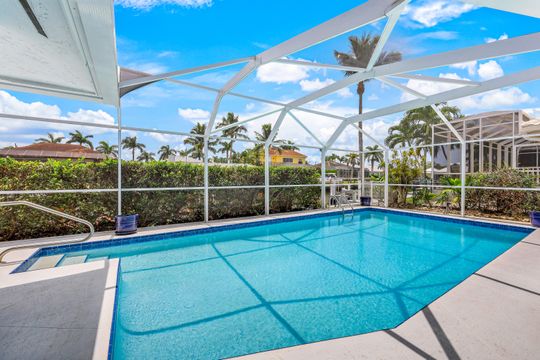 Don't miss one of the best values on Marco Island for a Gulf Access Pool Home on a Canal! This charming 3 Bedroom, 2 Bath ranch home has an open layout with 2 living areas, split bedrooms for great privacy, and an awesome outdoor space perfect for entertaining. Easy Indirect access to the Gulf of Mexico with South Eastern exposure. Owners resurfaced & retiled the pool in 2017, put in a new pool pump in 2022, & replaced the pool cage in 2019. New Roof in 2017, & Brand-New A/C & Water Heater in 2023. Fresh exterior paint & 2 car garage with new garage door and extended driveway. Store your boat on the lift with a new control panel, freshly painted dock with electricity & water, fish cleaning station, & newer pilings (2018). Pet-friendly with a fully fenced backyard and dog run. Plantation Shutters throughout. Remodeled Master suite with slider doors to the pool area, new carpet, walk-in closet, & nicely remodeled bath with walk-in shower with outdoor access. Sunbathe in your large screened lanai, and cool off in the pool after a long day on the water. Maintenance-free Xeroscape yard with beautiful plumeria trees and a mature avocado tree. Incredible investment home with a ton of potential to make this your own slice of paradise.