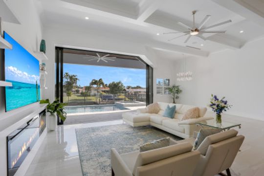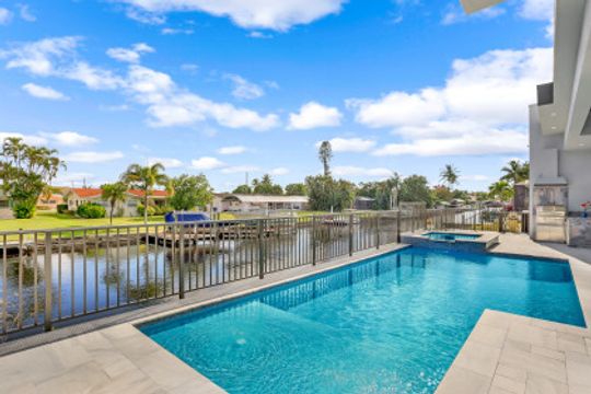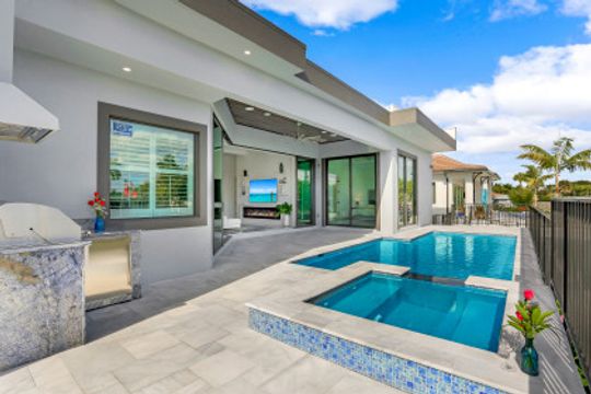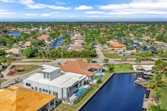 This Exquisite Contemporary Sailboat Access home sits on Cocoa Canal, 7 min to Caloosahatchee River & open waters. The sleek lines & modern European design offers the serene feeling of being on permanent vacation. Ah.. sea life. Boat to fabulous waterfront restaurants by day or cruise to Key West for the weekend from your back yard! Entertaining your guests is easy. Cook up the catch of the day in your brand-new outdoor kitchen, take a dip in your gorgeous pool & soak in your private jacuzzi while enjoying the leisure of your beautiful lanai. Share your spacious home with friends & family in this 6 bdrm,2 den,5 full baths and 2 half bath home. Some highlights: 3 Rheem AC’s units, Moen double shower heads in all bathrooms, 80 gallon commercial grade water heater, Kohler toiles, LED light mirrors in all bathrooms. All Wood, Soft Close Cabinets throughout. Quartz Calacatta Monticello counter tops, Outside shower, Porcelain flooring 24x48 in main areas, 3 car garage 9ft doors 14 feet ceiling. 1st Floor Ceilings are 12 Ft. 10 Feet PGT sliders.7th Edition building code. Reinforced Tie Beam 8X16 16. Honeywell alarm system 4 MP built in Micro & 8 Cameras. Lanai & Entrance Pine Wood.