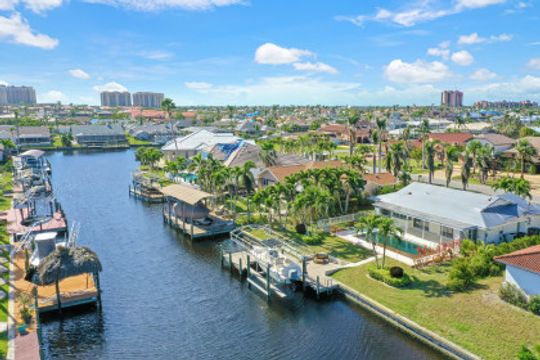 INVESTOR SPECIAL! SAILBOAT ACCESS POOL HOME! No bridges, no locks & no power lines- just MINUTES to open water! Home features 3 bedrooms, 2 bathrooms & a 2 Car Garage w/just under 1500 sqft of living space & a large open floor plan. The outdoor living was designed to entertain w/a large chlorine pool, window passthrough, covered patio & sundeck. This boaters paradise also features a composite dock & lift w/captains walk & canopy! This home was flooded by hurricane Ian and the drywall has already been removed. Perfect opportunity to remodel to your liking! Centrally located in a prime location on the Skyline fingers of SW Cape Coral & close to Cape Harbour, Tarpon Point Marina, Rotary Park, dining, restaurants & so much MORE! Just a short boat ride to the beautiful beaches, premium fishing & waterfront dining! Enjoy everything SW FL has to offer - beautiful weather year round, fishing, golfing, kayaking, paddle boarding, jet skiing & tubing! Call to schedule your showing today!