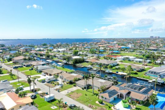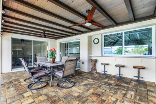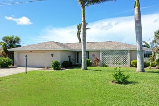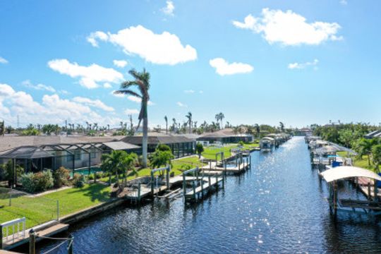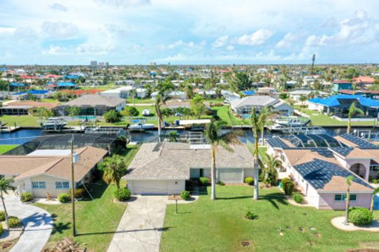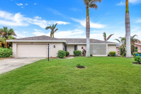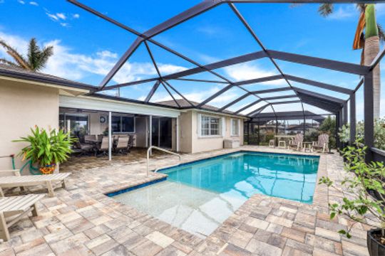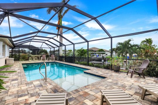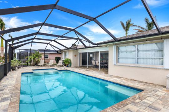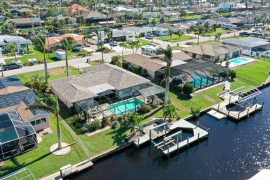 UNIQUE OPPORTUNITY FEATURING DIRECT SAILBOAT (no bridges) ACCESS 5 MINUTES TO THE CALOOSAHATCHEE RIVER AND THE GULF OF MEXICO LOCATED IN THE EXCLUSIVE YACHT CLUB NEIGHBORHOOD. This 2019 renovated three-bedroom, two-bath, two-car garage with Western exposure home has a 2019 heated pool featuring paver decking and a sun ledge along with a fully screened cage. Outside, you'll enjoy your 10,000# boat lift with Captain's walk and beautifully landscaped lawn. The backyard provides the perfect oasis to settle in to watch the Breathtaking Sunsets. To complete the active, outdoor lifestyle you'll enjoy that there are marked bike paths to the Yacht Club Park which includes tennis, pool, and the beach or you could take the bike trail to Downtown Cape Coral for shopping and dining in less than five minutes away. Once inside the home, you'll be greeted with luxury Terrazzo Floors, numerous high-end ceiling fans, large bedrooms, and an updated kitchen along with over 1900 square feet of living space. This home is a MUST-SEE opportunity to put your own personal touches on during some needed renovations.