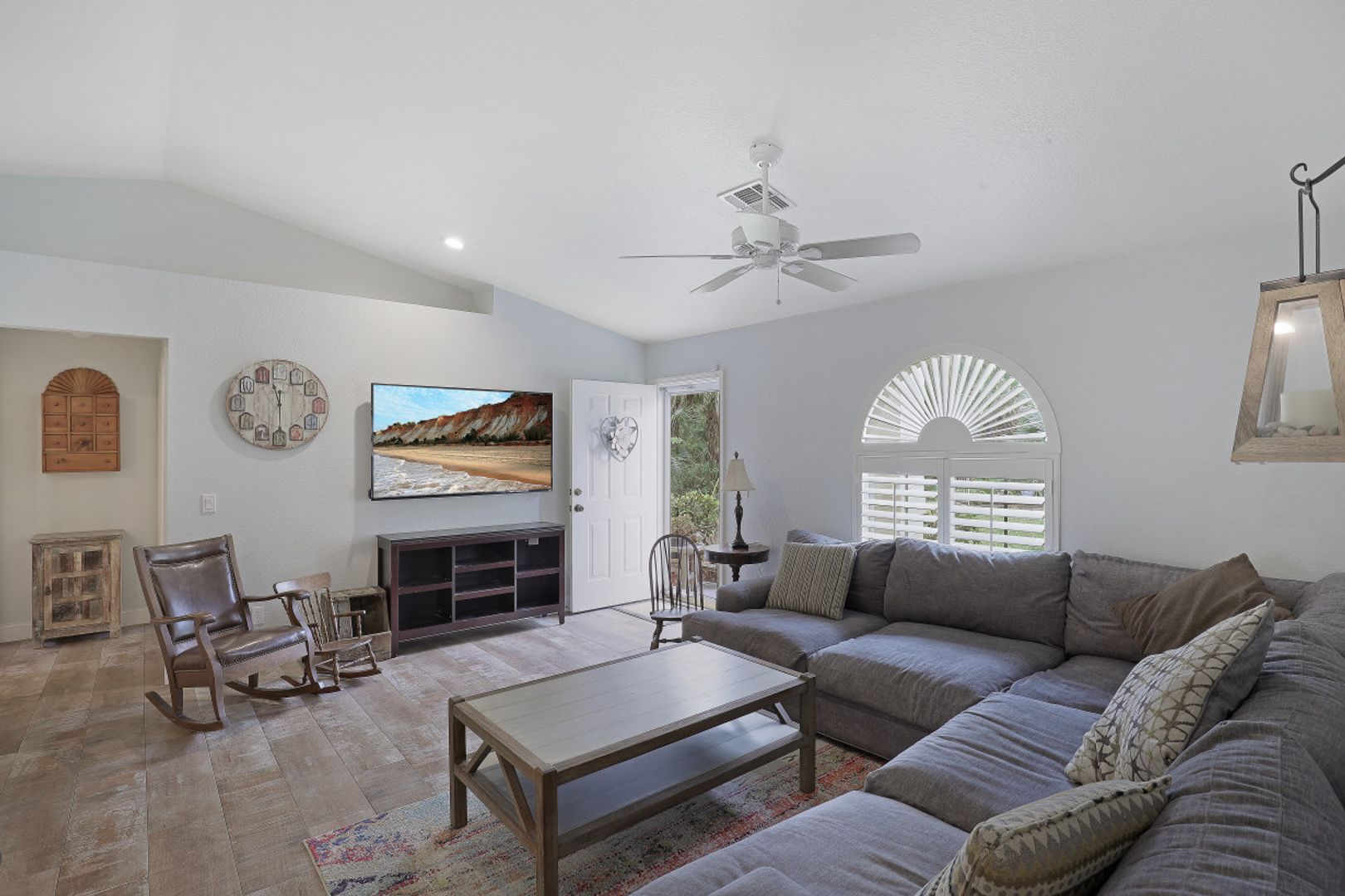 With NO HOA fees, rules, or restrictions- you’ll love this charming home in Golden Gate Estates! This 3 bedroom, 2 bathroom home features a BRAND NEW roof and air conditioner! Other features include a newer 40 gallon water heater (3 months old), fresh exterior paint, 2 car attached garage and updated LED lighting throughout the house. The living area boasts vaulted ceilings as well as beautiful wood-like tile and is open to the eat-in kitchen featuring white cabinets, a suite of appliances and ample counter and storage space. The light and bright master bedroom sits away from the other bedrooms and provides a private ensuite complete with a combination shower/tub. Two more bedrooms and another full bath on the opposite side of the house complete this gorgeous home. The screened in, tiled lanai is perfect for hosting guests or relaxing with a cup of coffee and leads out to the newly painted deck that overlooks the beautiful land the property sits on. This 1.14 acre lot provides endless opportunities and gives you your own private oasis!