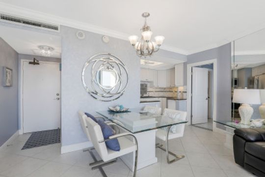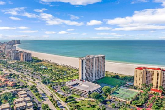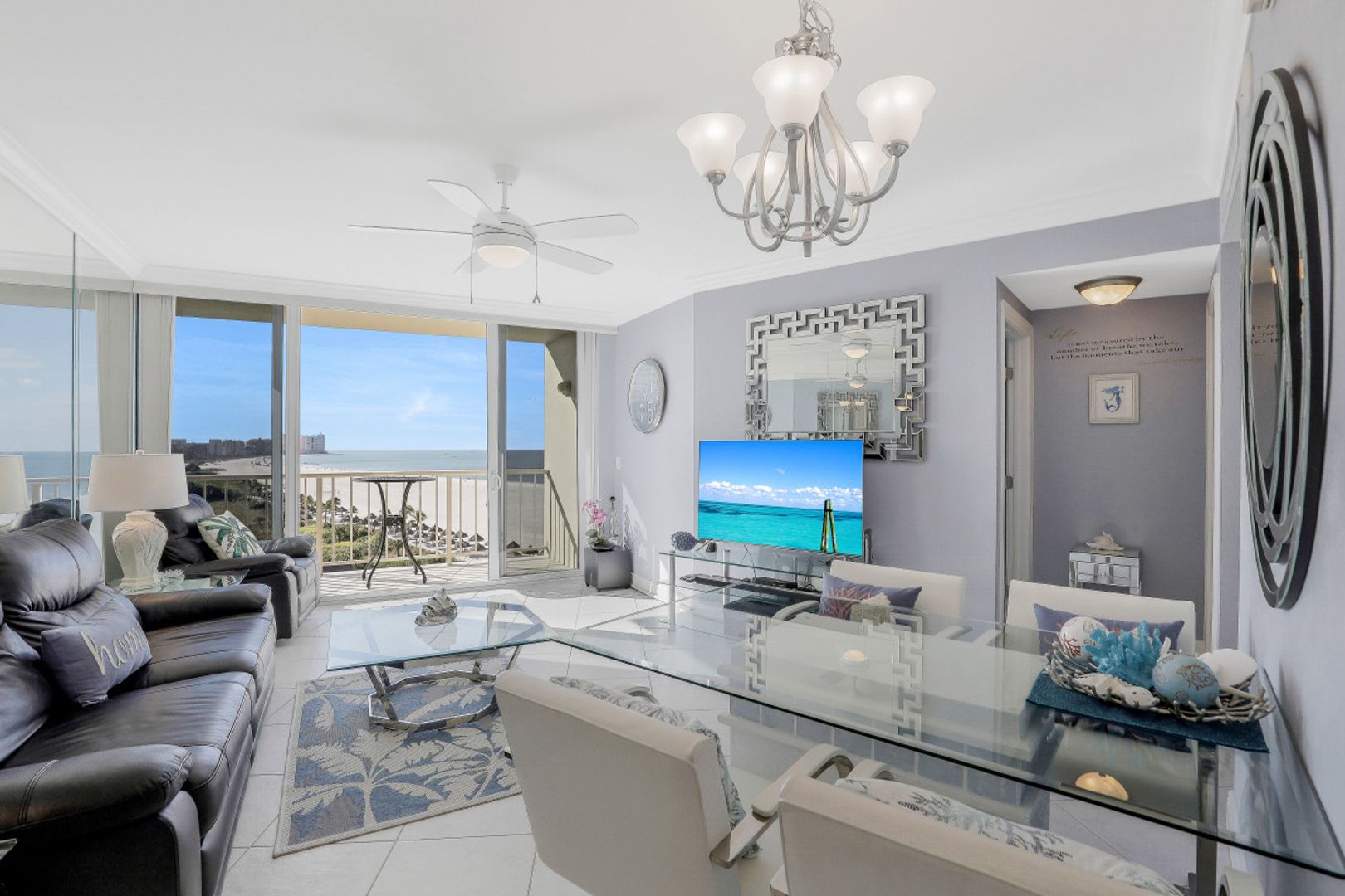 South facing two bedroom beachfront condo in Gulfview with spectacular high end renovation. Incredible views of the beach and skyline all the way to Cape Marco. Great attention to detail.. High end furniture including custom designed mirrors. Inviting kitchen with wall removed, tray ceiling, high end stainless appliances, granite, marble back-splash, quiet close cabinets, water filtration system. Full crown, baseboard, doors, tray ceilings. Fabulous shower in master bath with dual electronic controls. Extra built in storage in master bath and front entry. The inside of the impact windows and sliders were custom painted white in the factory. All popcorn ceilings removed. Extra storage on lower level has beach chairs, umbrellas, and newer bicycles. Convenient access to laundry room and elevator. Newer AC and Hot water. Gulfview has a five story parking garage attached to the building with direct covered access into building.