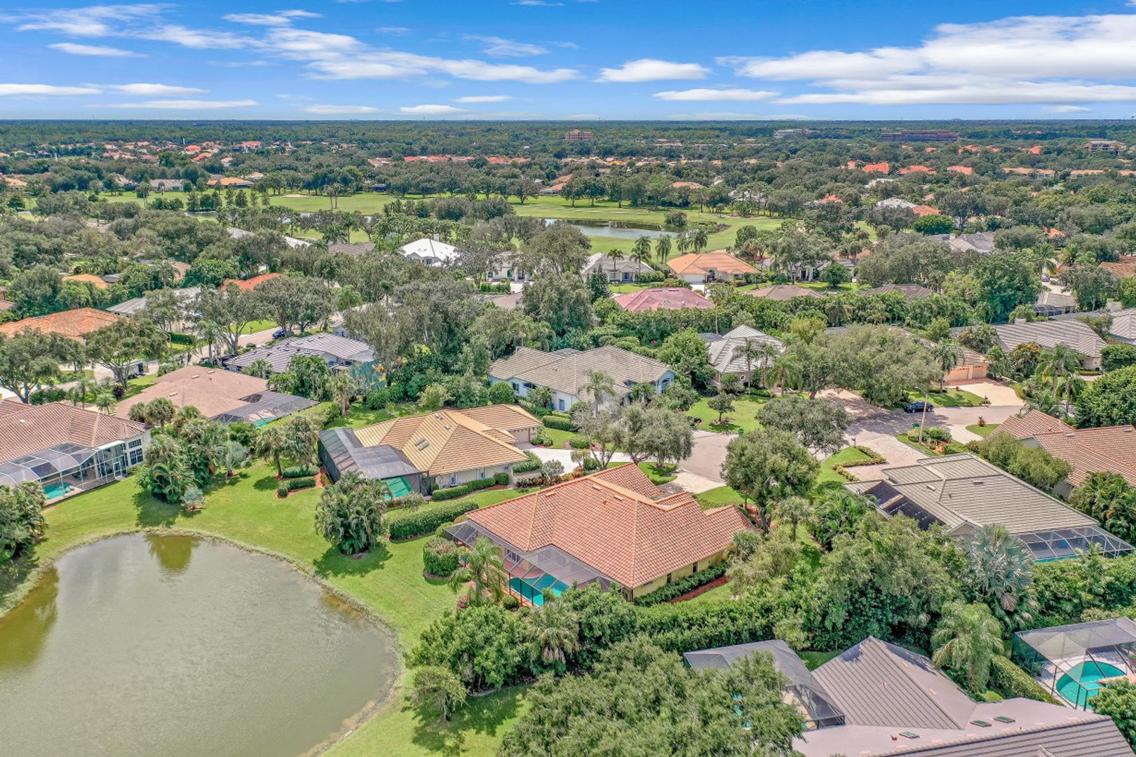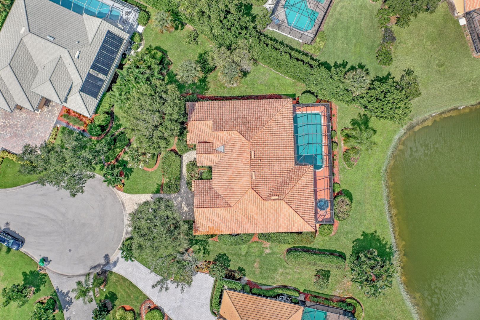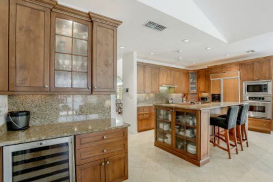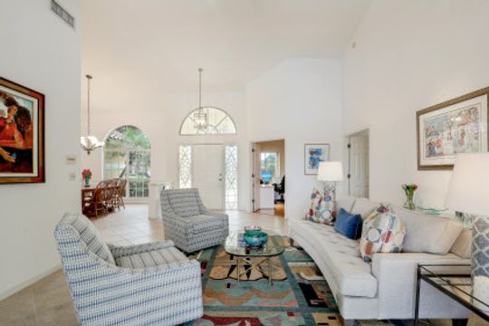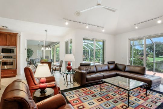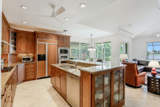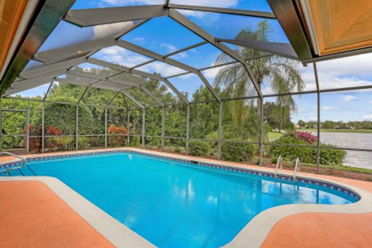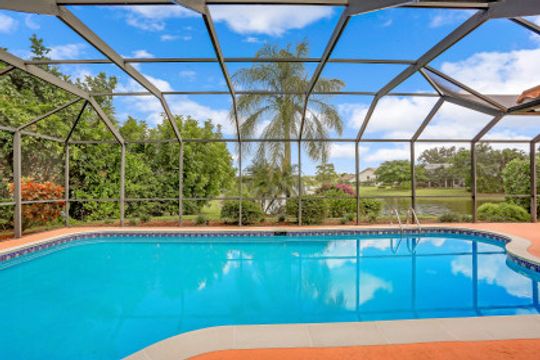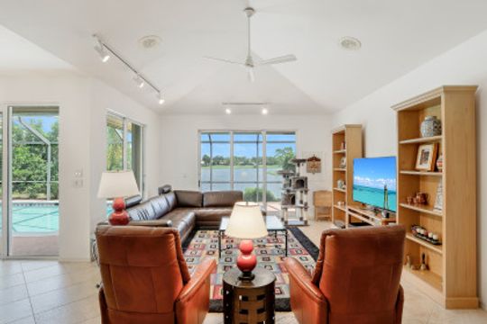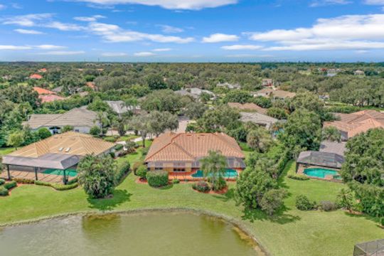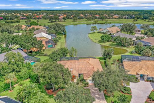 This 3 bedroom, den 3 1/2 bath home sits on the end of a cul-de-sac with a beautiful long lake view. As you enter, the spacious living room overlooks the lanai and lake. the master bedroom has a door to the den as well as freanch doors that lead out to the foyer. The dining room is adjacent to the living room and leads to the large open kitchen. There is plenty of cabinetry, granit countertops, breakfast bar, stainless steel appliances and dry bar with win cooler, as well as a large space for kitchen table. The family room has high ceilings and is light and bright with sliding glass doors. the other 2 bedrooms have their own bath. there is also a half bath for guests as well as a large utility room with a window. The lanai features a large covered space, pool and separate spa as well as a full bath. The home is also protected with electric shutters, accordion shutters and manual shutters for peace of mind. The community of Valley Oak is situated close to the south gate where there is shopping, dining and medical center. Vineyards is centrally located and has easy access to the freeway as well. Vineyards features a beautiful country club, with golf, tennis, pickleball and spa, but it is not mandatory to be a member. There are also great walking paths and a community park to walk or bike in.