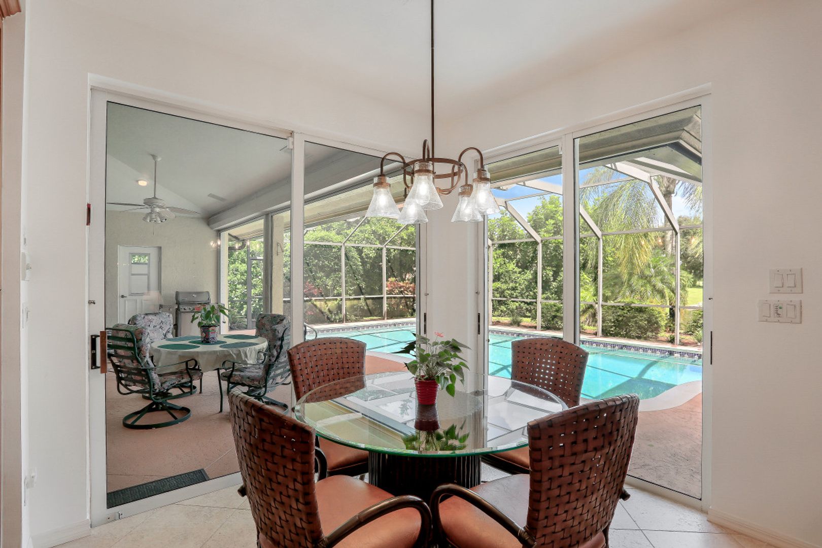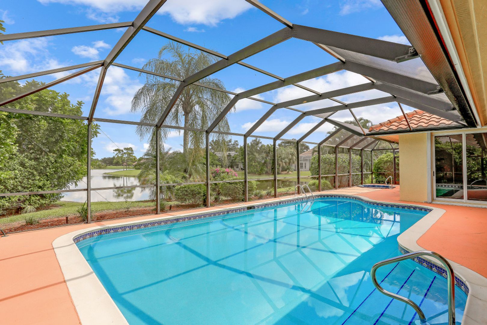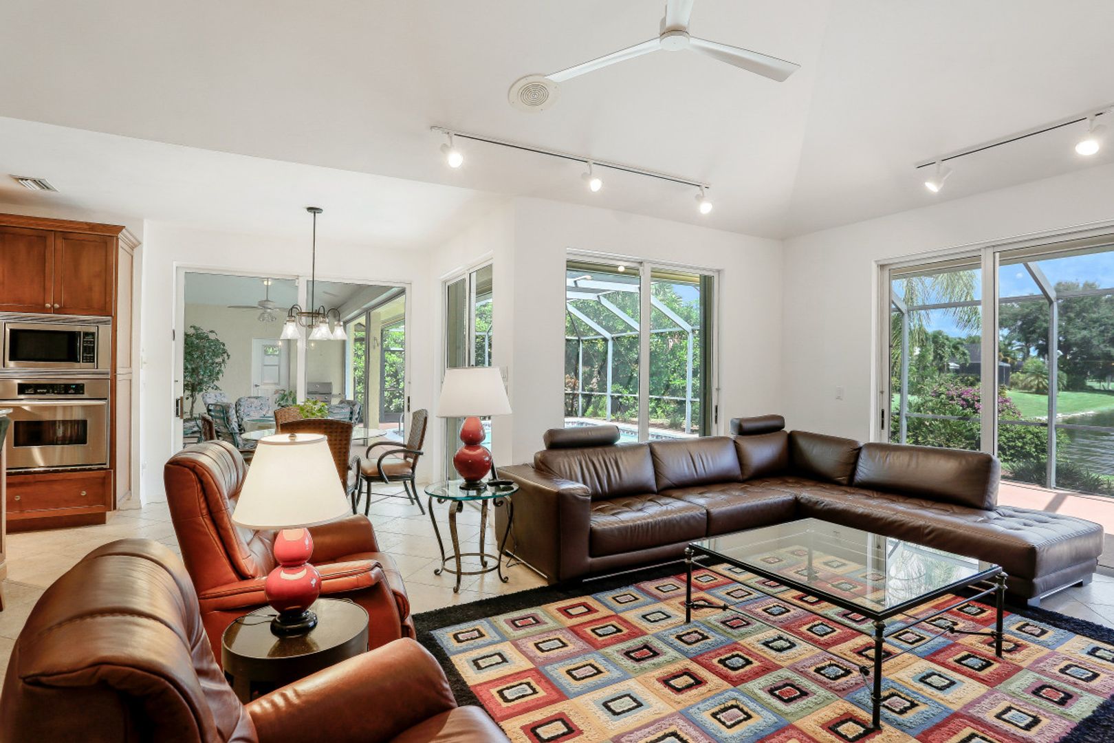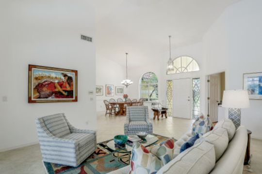 This 3 bedroom, den 3 1/2 bath home sits on the end of a cul-de-sac with a beautiful long lake view. As you enter, the spacious living room overlooks the lanai and lake. the master bedroom has a door to the den as well as freanch doors that lead out to the foyer. The dining room is adjacent to the living room and leads to the large open kitchen. There is plenty of cabinetry, granit countertops, breakfast bar, stainless steel appliances and dry bar with win cooler, as well as a large space for kitchen table. The family room has high ceilings and is light and bright with sliding glass doors. the other 2 bedrooms have their own bath. there is also a half bath for guests as well as a large utility room with a window. The lanai features a large covered space, pool and separate spa as well as a full bath. The home is also protected with electric shutters, accordion shutters and manual shutters for peace of mind. The community of Valley Oak is situated close to the south gate where there is shopping, dining and medical center. Vineyards is centrally located and has easy access to the freeway as well. Vineyards features a beautiful country club, with golf, tennis, pickleball and spa, but it is not mandatory to be a member. There are also great walking paths and a community park to walk or bike in.