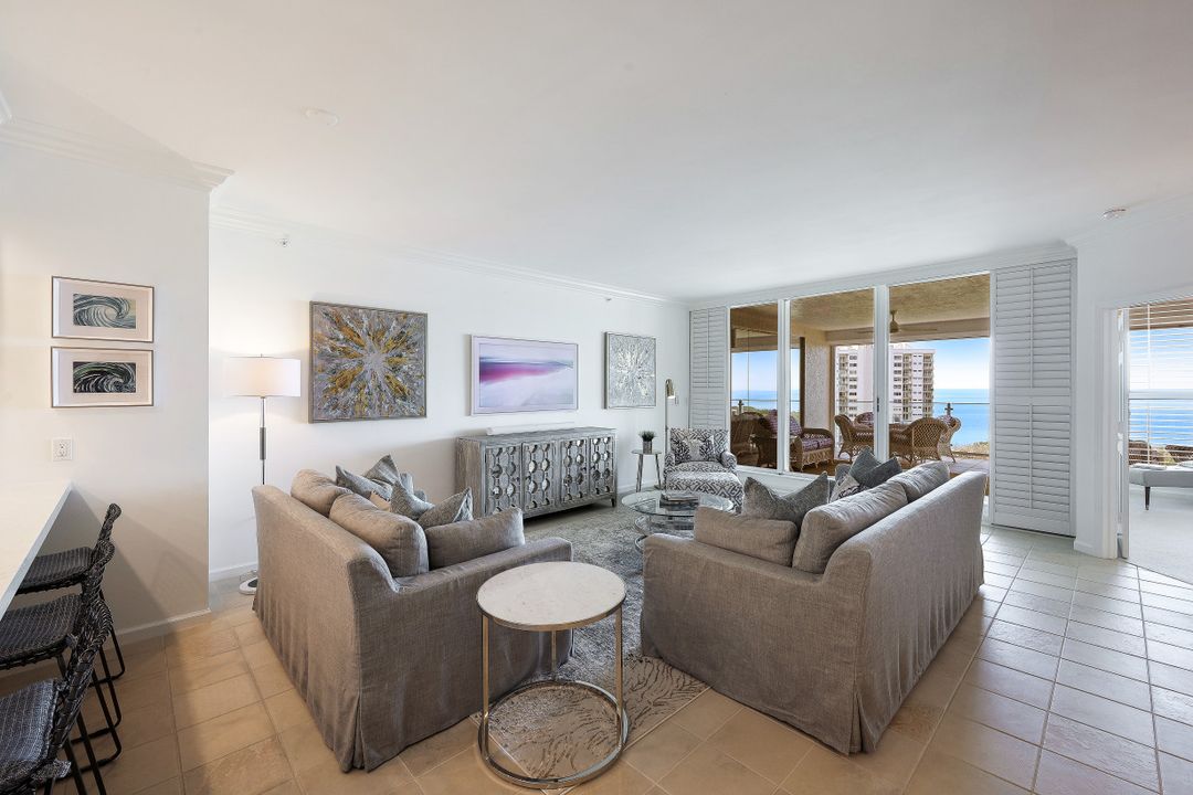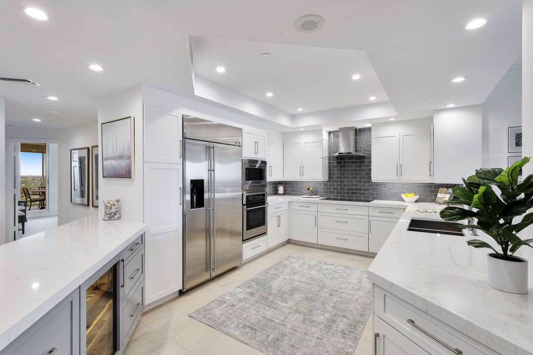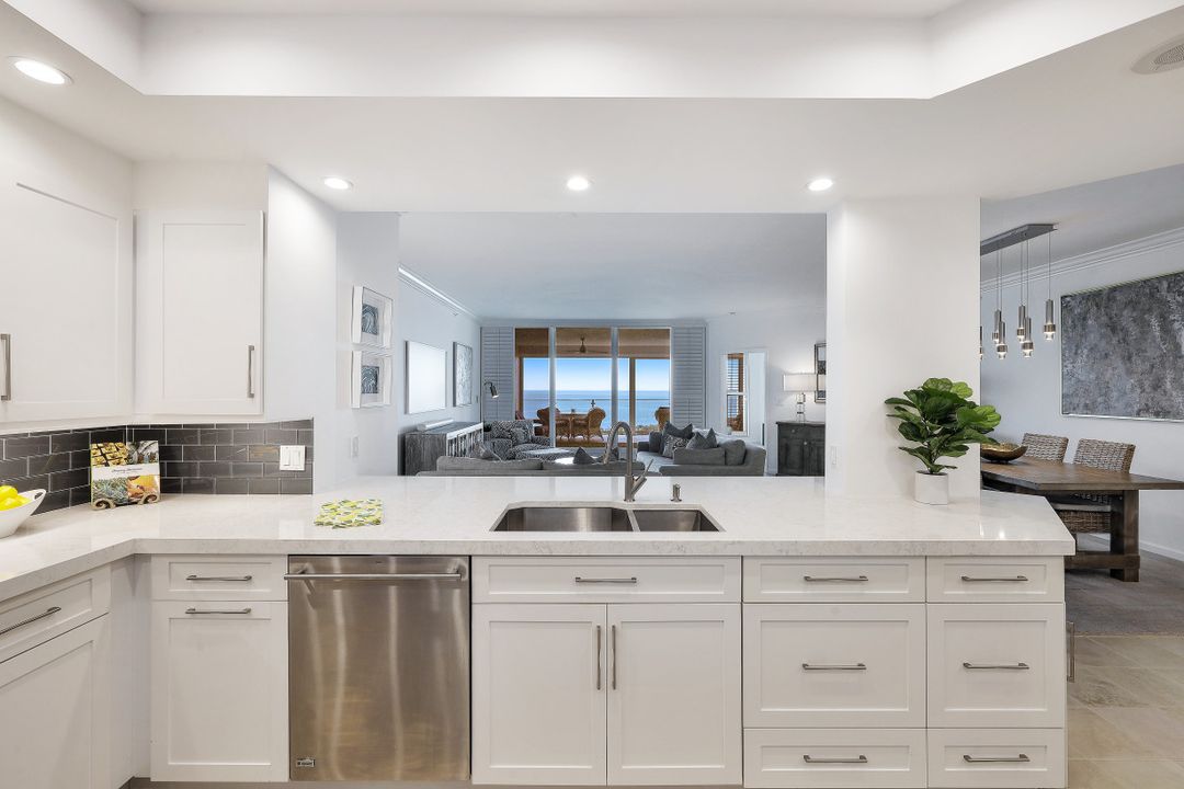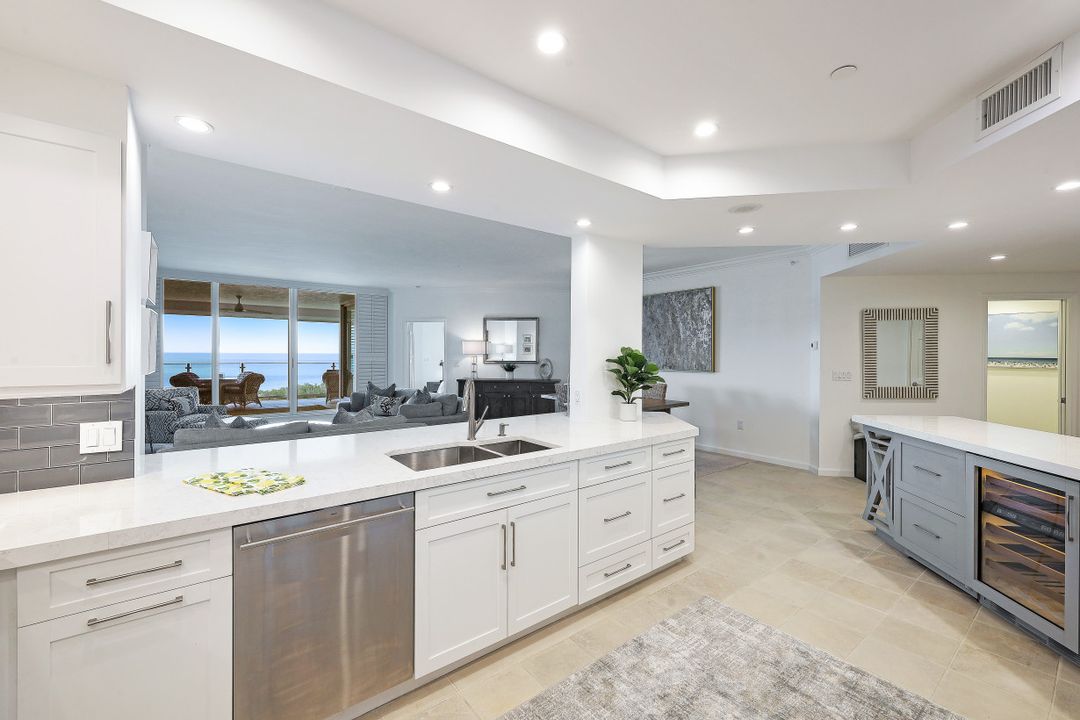 SOLD for $3,750,000. (MLS square foot record price for Baypointe). LUXURY BEACHFRONT CONDO ~ 3 BDRM/3 BATH stylishly updated condo in Baypointe at Naples Cay. This 12TH FLOOR CONDO offers spectacular views of the Gulf, Clam Bay & Venetian Bay. Just steps to the sand! NINE FOOT CEILINGS, NEW A/C Jan. 2023, NEW state of the art tv w/Sonos wifi sound bar in the living room, newer GE Monogram kitchen appliances, two dishwashers: Fisher & Paykel and GE, SubZero wine cooler. Freshly painted throughout. Two large lanai’s totaling nearly 600 SF ~ the west facing lanai offers Gulf and Clam Bay views, perfect for watching sunsets. The east lanai offers Venetian Bay and city views, perfect for watching sunrises. Baypointe is an amenity rich building renovated in 2018 ~ 3 guest suites, large sunset deck, social room with caterer's kitchen, state of the art fitness room, owner's lobbies with just 3 units per floor, kayak ramp and more. PET FRIENDLY building allows TWO PETS. Nestled between Park Shore and Pelican Bay, Naples Cay is a private, guard gated, beachfront community that offers a unique level of privacy and tranquility, yet is within walking distance to fine dining, shopping & entertainment of Venetian Village, Waterside Shops, and Artis-Naples.