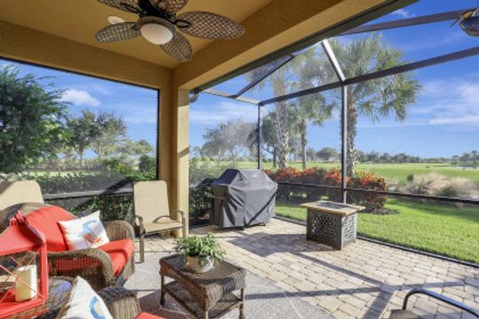 STUNNING DELL WEBB HOME WITH FULL GOLF MEMBERSHIP INCLUDED WITH PURCHASE! This immaculate home has 3 bedrooms, plus a DEN and BONUS room and is located on a beautiful lot with golf course, lake, and preserve views. Built in 2014 and features a chef’s kitchen, highlighted with stainless steel appliances, granite topped counters, walk-in pantry, center island & breakfast nook. Some of the designer appointments of this home include drapes, plantation window coverings, glass french doors in the den, tray ceilings, Sonos sound system, wireless security system, enlarged enclosed screened patio, and a newly insulated garage door. Looking to “Love life to the fullest?” Well then, wait no further! Welcome yourself to this home that is located in this picturesque master planned Del Webb community in Ave Maria. A 55+ active adult community with 18-holes of championship golf, and an on-site Lifestyle Director and resort style amenities. With so many ways to stay active, it's easy to see why neighbors become long-time friends. This home is immaculate and has recently been painted and has new carpet. This home is ready for you, come take a tour today!