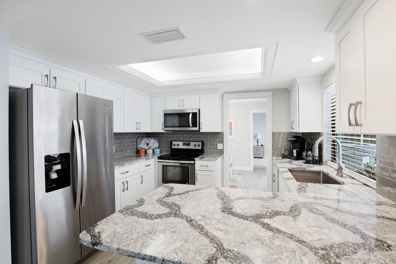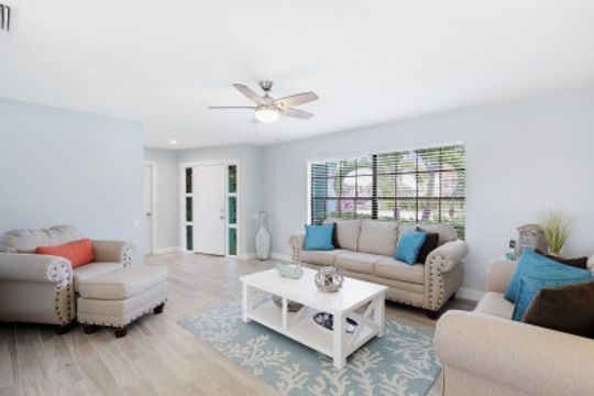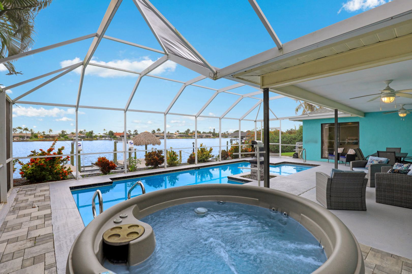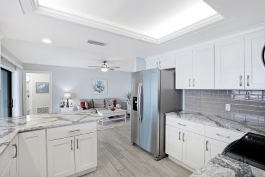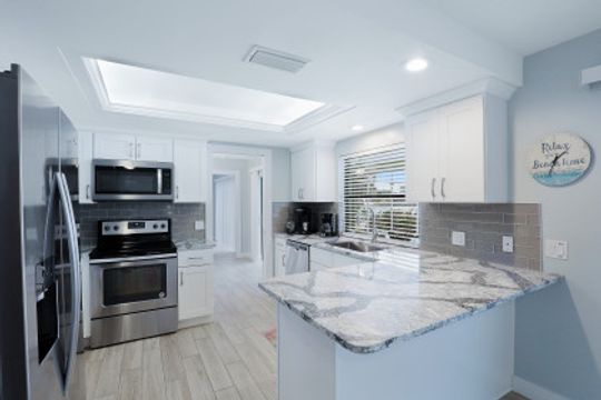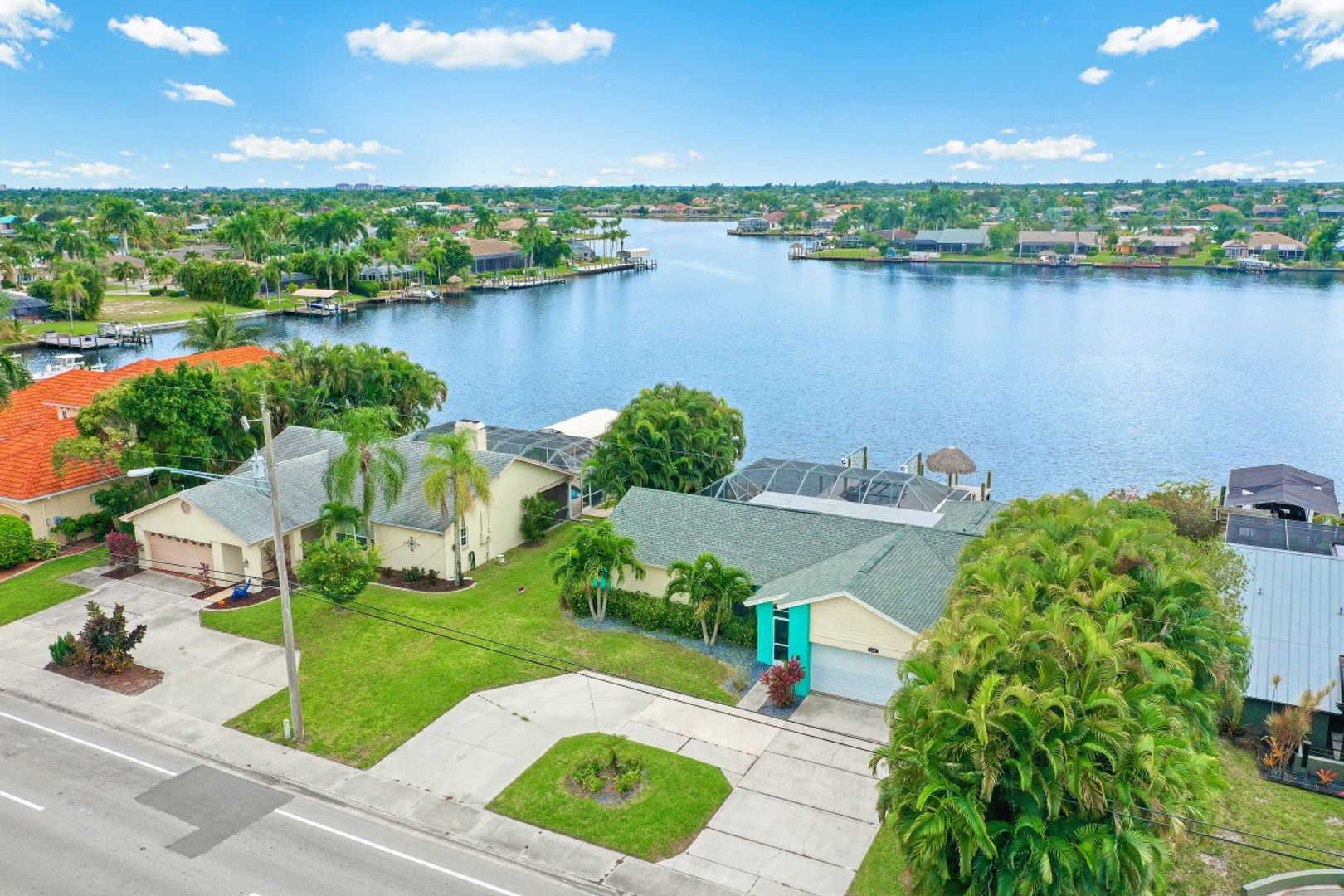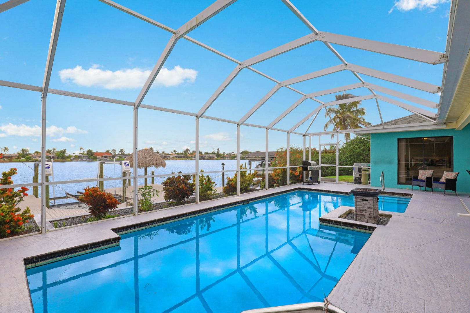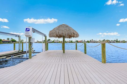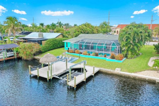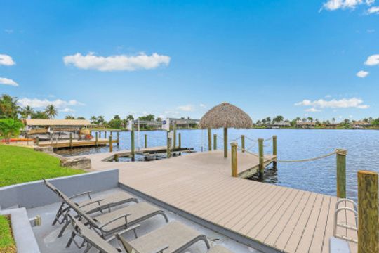 GULF ACCESS, LAKE FRONT, SOUTHERN EXPOSURE, POOL HOME - BEING SOLD TURNKEY! Completely remodeled from top to bottom, located on the coveted 8 lakes w/ENDLESS water views! 3BR, 2BA, 2 Car Garage updated kitchen, baths & more! Features include porcelain wood plank tile flooring throughout, new roof in 2017 & new 20k lb boat lift & low maintenance composite dock in 2017! The kitchen offers eye popping Cambria Quartz counters, new shaker cabinets, soft close technology, SS appliances, glass subway tile backsplash & window passthrough to the lanai, perfect for entertaining! The owners suite features sliding doors to the outdoor living space w/ENDLESS WIDE WATER VIEWS, LARGE walk-in closet w/built-ins, gorgeous bathroom w/beautiful quartz counters, stylish tiled shower & seamless shower door. The outdoor living was designed to entertain w/large pool, covered patio & hot-tub overlooking it all. Newer dock includes Tiki hut to enjoy cocktails & endless water views! Enjoy everything that SW FL has to offer-boat, sail, kayak, SUP, jet ski, fish or simply take a dip in your private oasis! White sandy beaches & world class fishing can be at your fingertips-Schedule your private showing today!