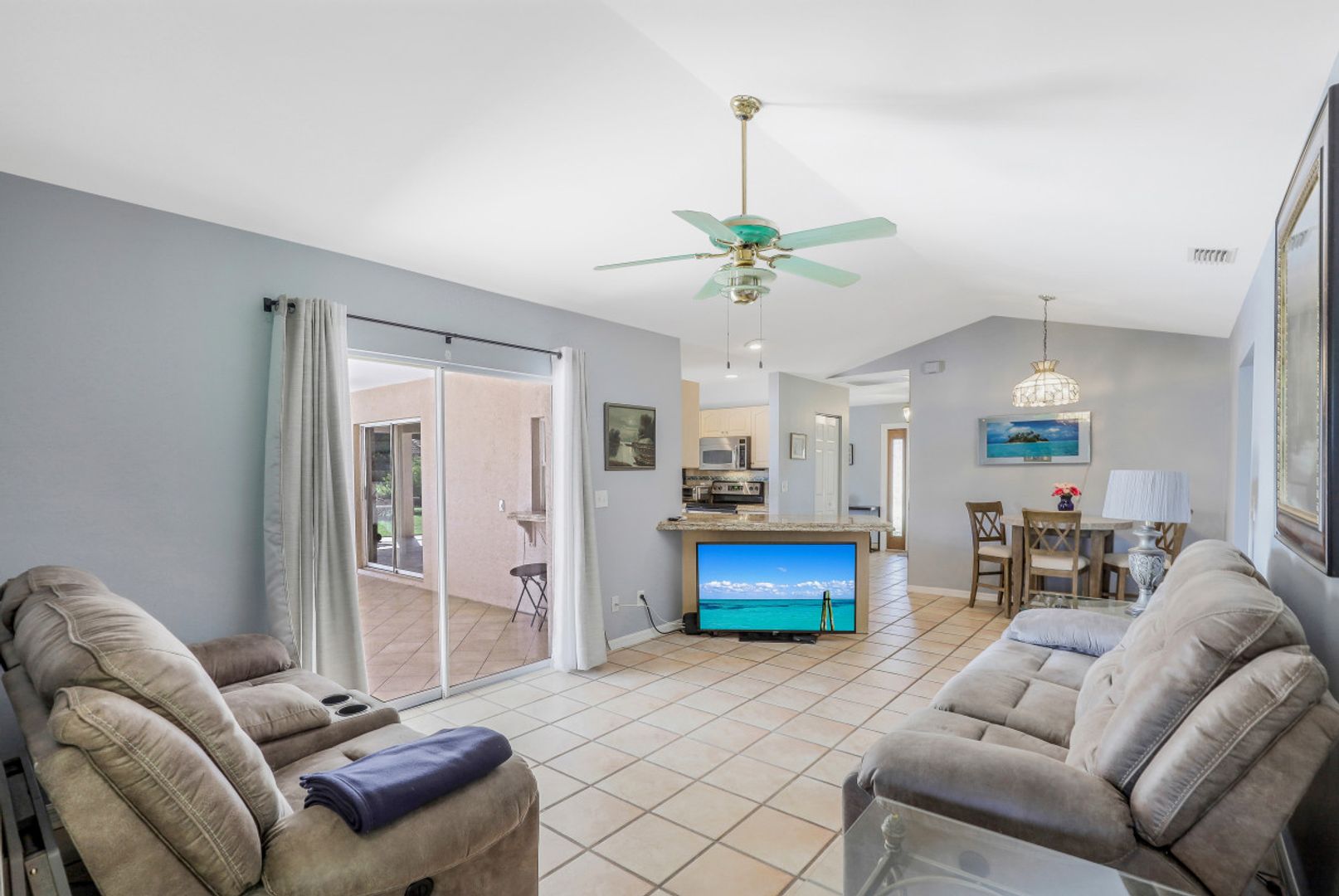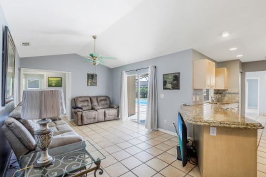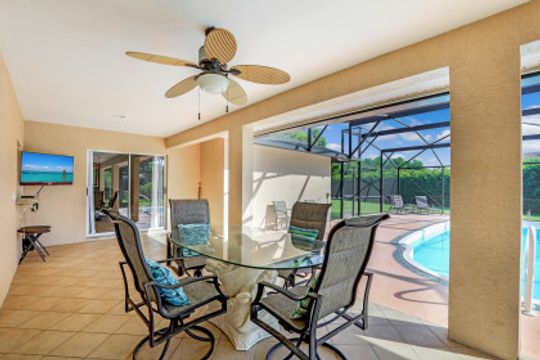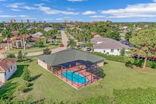 Custom built four-bedroom home situated on a large over-sized lot in a nice quiet neighborhood. Desirable split bedroom floor plan with spacious separate living / dining area and inviting family room with high vaulted ceilings. Kitchen includes granite counters, stainless appliances, pantry, breakfast nook and breakfast bar. Tile throughout for easy maintenance. Privacy door to guest bedrooms and bath. Expansive screened lanai with pool makes this the perfect place for relaxing and entertainment. Roof and screen enclosure replaced 2018. This residence is centrally located and close to local Schools, Mackle Park, YMCA, Library, and just a short distance to restaurants, shopping, Residents beach, and all that Marco Island has to offer.