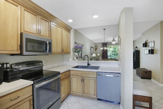 Ground floor, updated 3 bedroom home offered in a gated North Naples community. Features include tile flooring throughout main areas along with wood flooring in bedrooms, new AC and stainless steel appliances with a screened lanai that also provides an extra storage closet and private, landscaped views. Assigned to the unit is both a covered carport space and additional space both located close to your entrance. The Huntington Lakes amenities create a lifestyle that includes a spectacular clubhouse, pool & spa, fitness, tennis, bocce and much more.